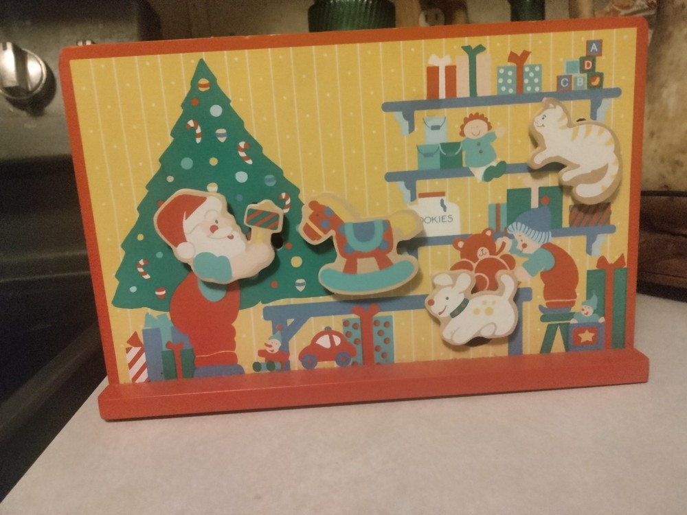 This adorable vintage Santa workshop toy is pure holiday magic! The cheerful "Toyland" melody plays as the wind-up mechanism brings the festive scene to life. The wooden construction and bright colors make it a charming display piece that instantly adds nostalgia to any Christmas setup. Perfect for collectors or anyone who loves classic holiday decor—it’s a delightful blast from the past that still sparks joy today!