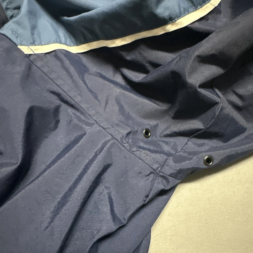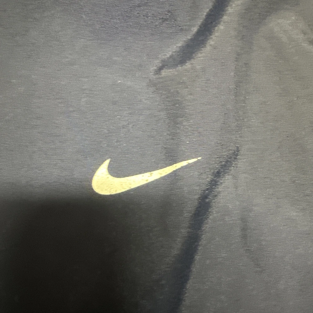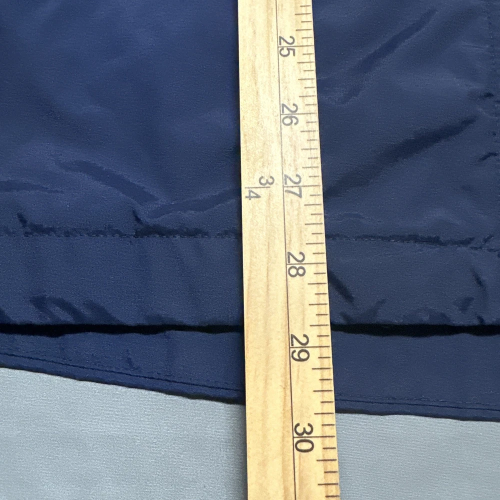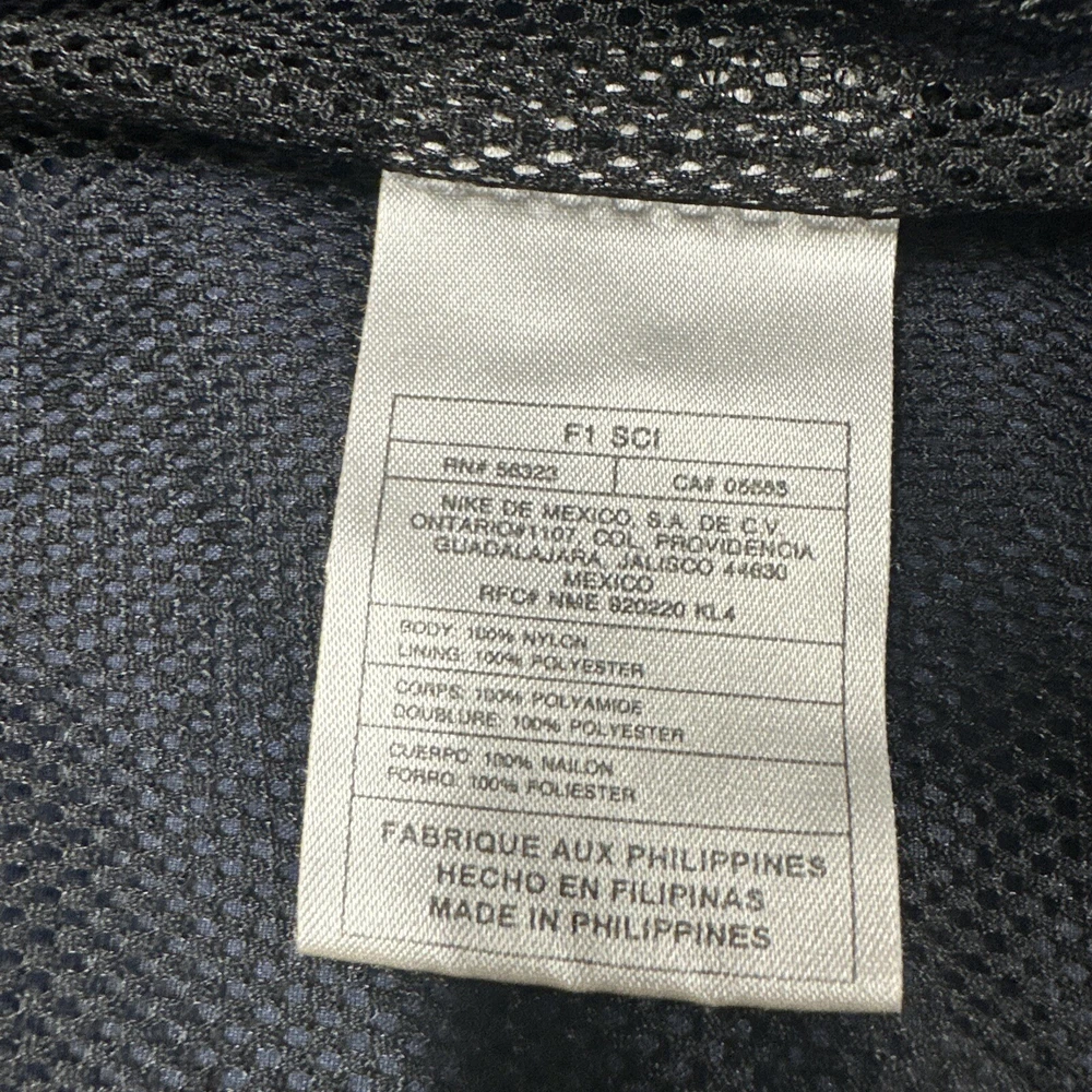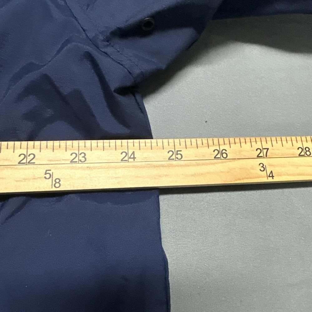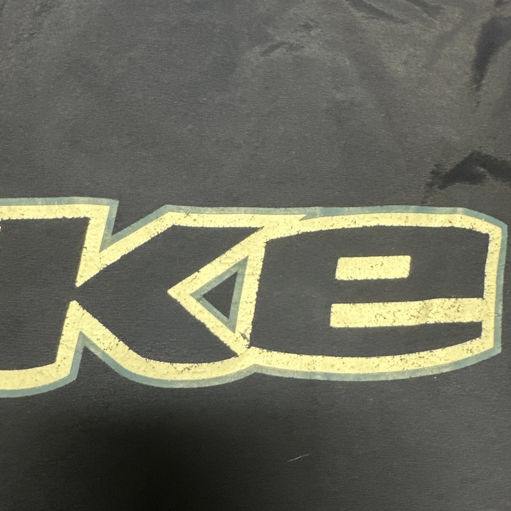 Jacket in great preowned condition See pics for accurate measurements and condition See zipper tab is missing I ship every day Item # 487 This is a vintage men's windbreaker jacket from Nike. It is made of lightweight and breathable blue nylon material with a polyester lining. The jacket features a full zip closure, a hood, and pockets. It is water-resistant and wind-resistant, making it suitable for all seasons. The jacket has a big spellout on the back and is vented for added comfort. It is a size large and has a regular fit. This jacket was made in the Philippines.