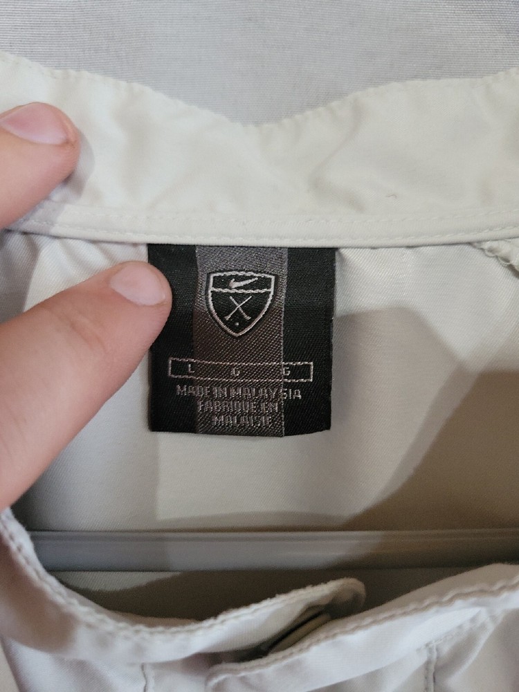 Vintage Nike Golf Windbreaker Mens L Beige Pullover Stretch Snap Button Pockets. Excellent condition. FedEx embroidery on right arm....