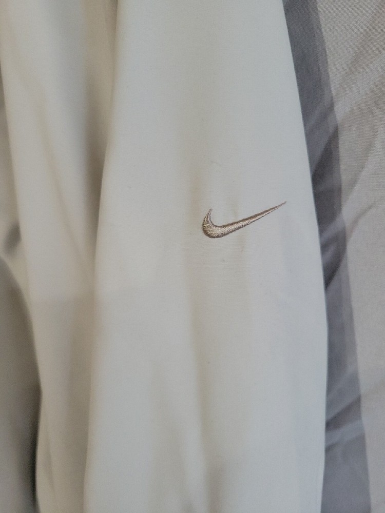 Just got this vintage Nike windbreaker and love it! The beige color is perfect, and the stretchy fabric makes it super comfortable for golf or casual wear. The snap buttons and pockets are a nice touch, and the FedEx embroidery adds cool retro vibes. Fits true to size, and it's in great condition—looks barely worn. Such a stylish throwback piece! Highly recommend for a classic, sporty look.