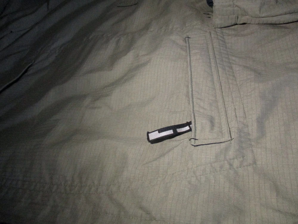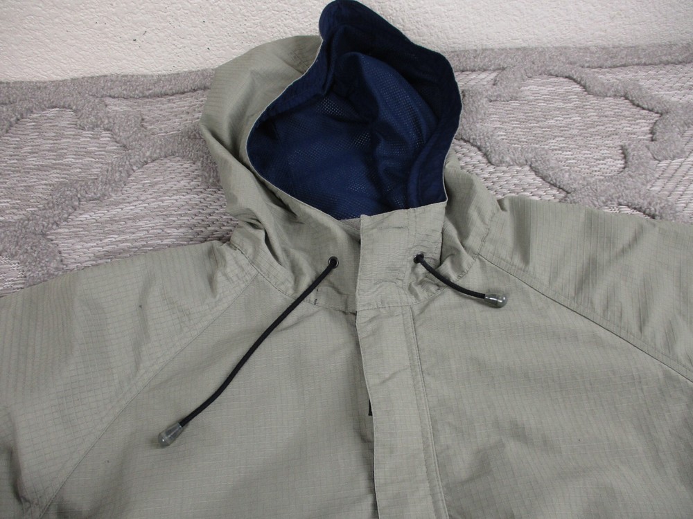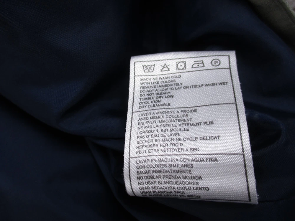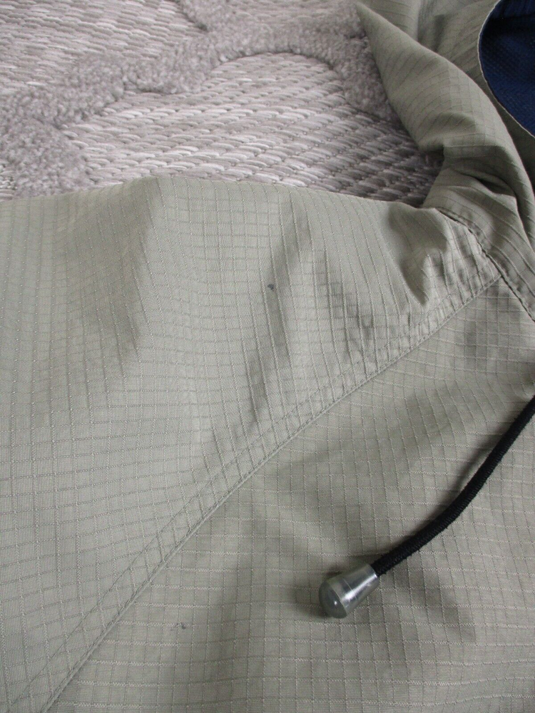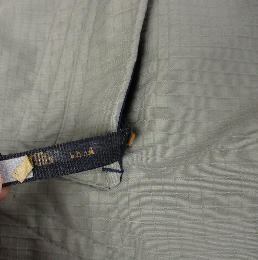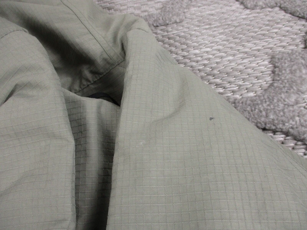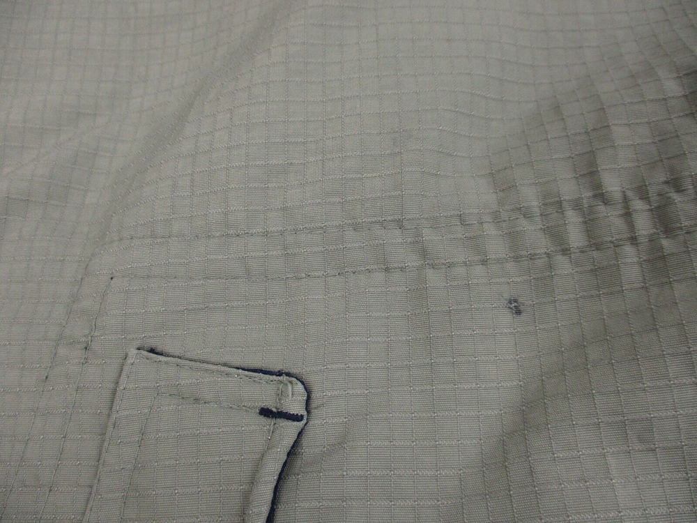 Summary: Few light spots, light wear/peeling on zippers, light wear on some reflective portions. Otherwise, in good condition. Details: Few light spots on top front and near pocket (photos 3 & 4). Some light wear and peeling on some of the zipper (photo 5). Light spots on mid and upper back as well as upper sleeve (photos 12-14). Light wear on reflective part of sleeve, as well as an example of reflectivity on zipper (last 2 photos). Otherwise, jacket is in good clean condition. Please see photos for details and measurements. Compare measurements to your favorite jacket to ensure proper fit.