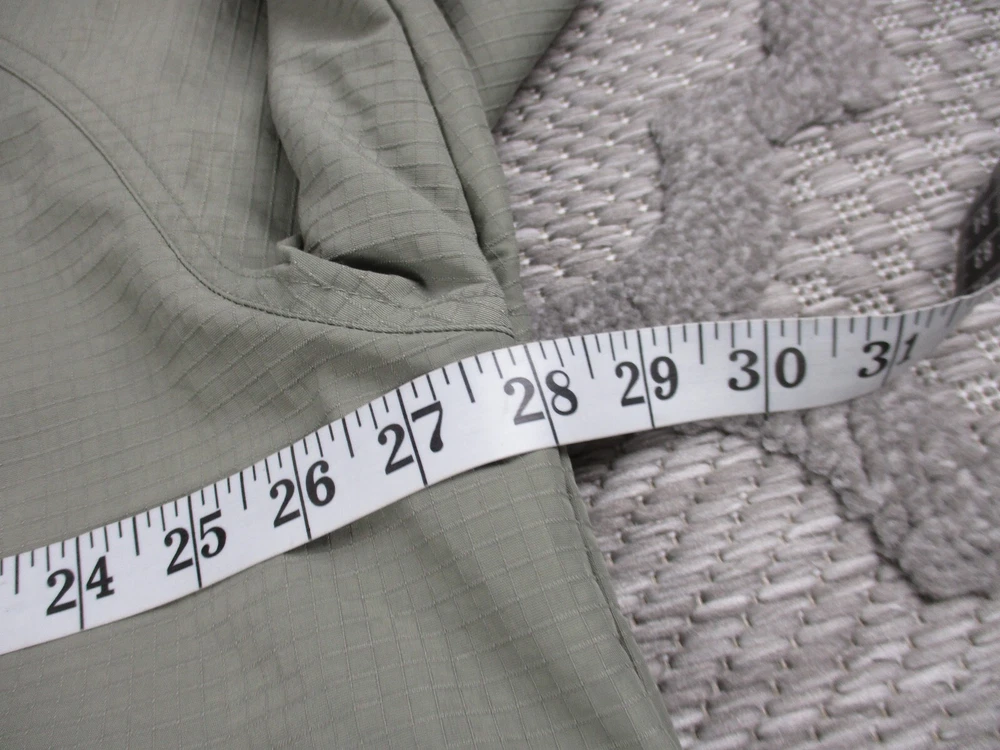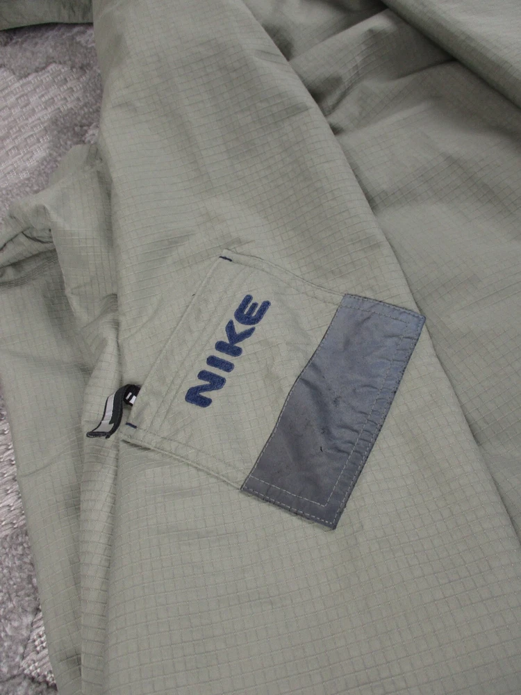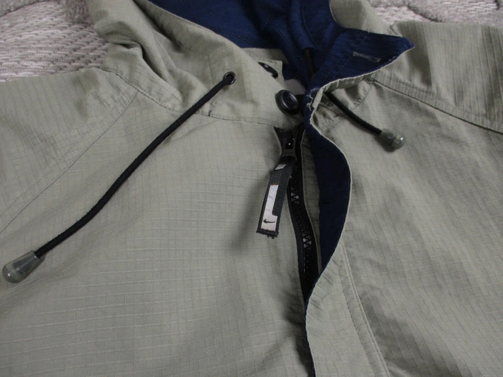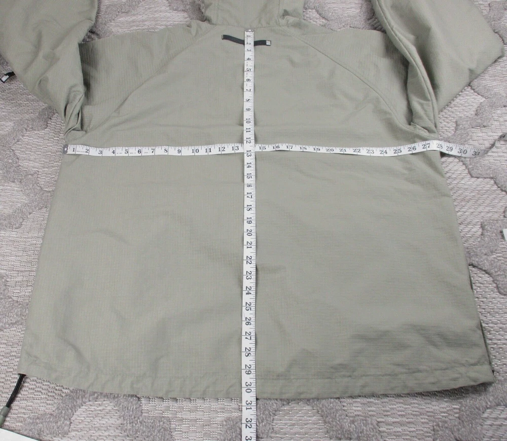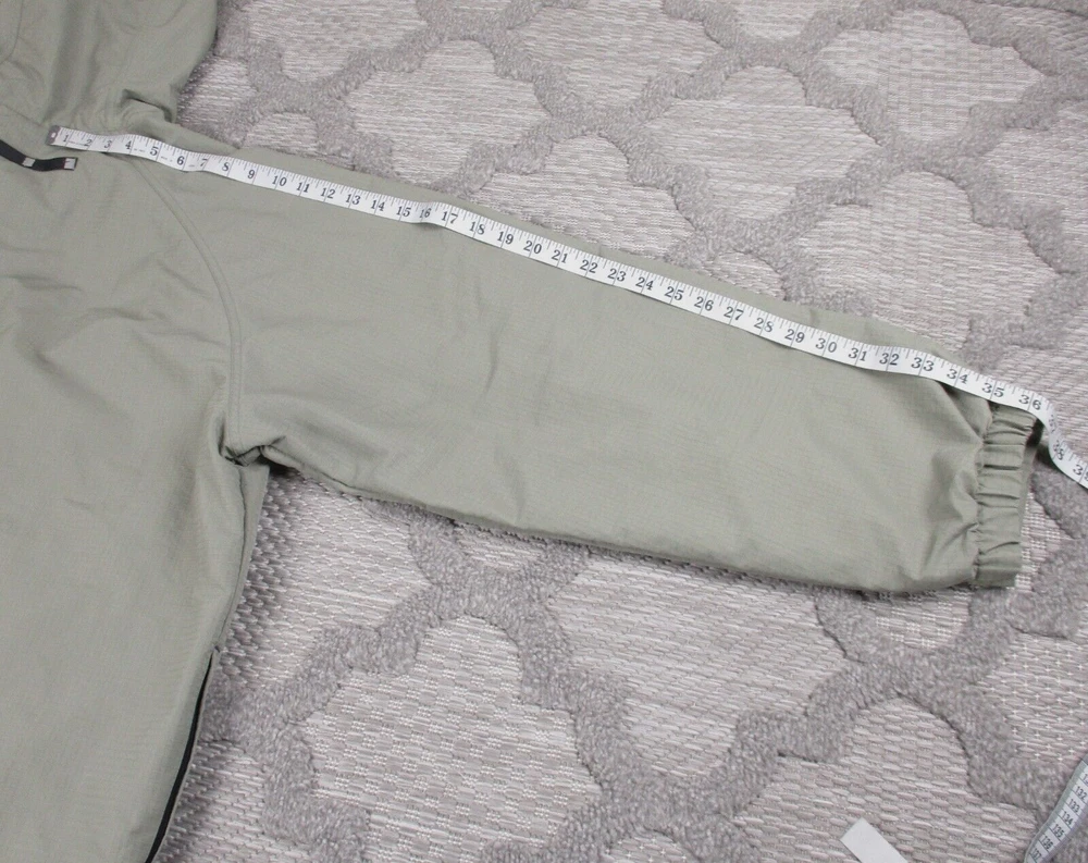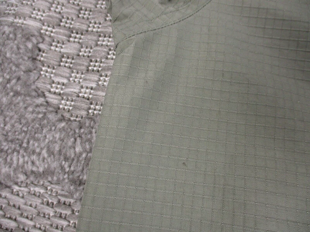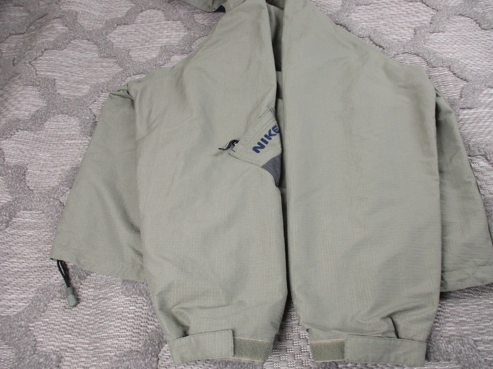 Summary: Few light spots, light wear/peeling on zippers, light wear on some reflective portions. Otherwise, in good condition. Details: Few light spots on top front and near pocket (photos 3 & 4). Some light wear and peeling on some of the zipper (photo 5). Light spots on mid and upper back as well as upper sleeve (photos 12-14). Light wear on reflective part of sleeve, as well as an example of reflectivity on zipper (last 2 photos). Otherwise, jacket is in good clean condition. Please see photos for details and measurements. Compare measurements to your favorite jacket to ensure proper fit.