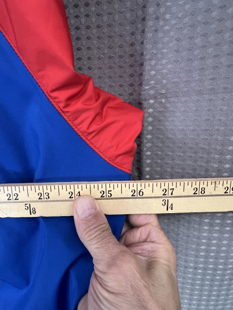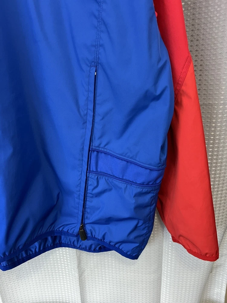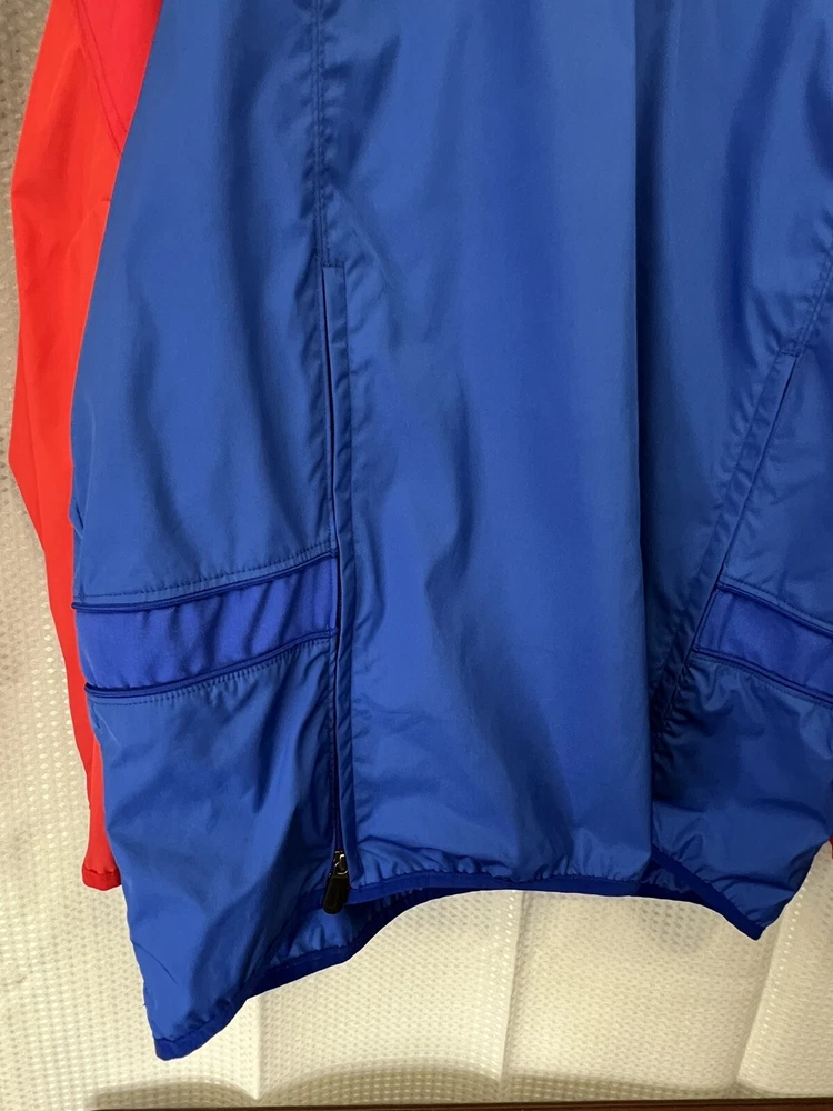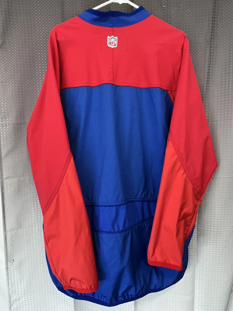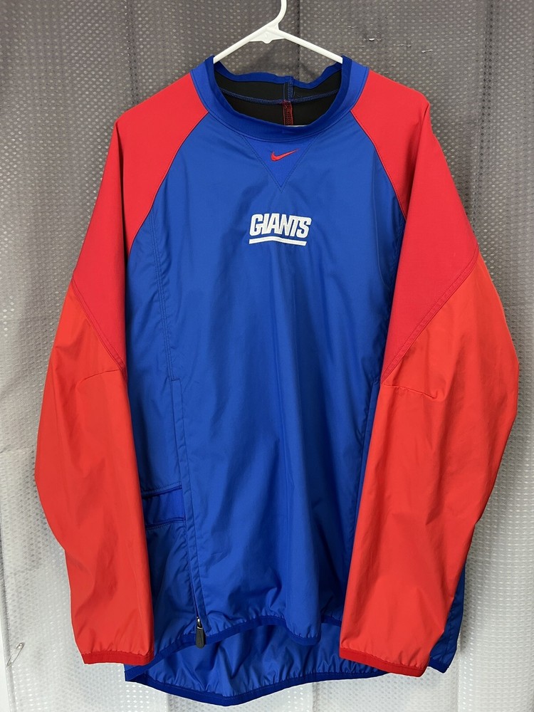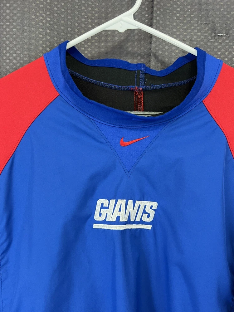 Show off your love for the New York Giants with this vintage Nike Team jacket. Made of softshell fabric, this wind-resistant jacket features the iconic center swoosh and Nike branding. The blue jacket is perfect for travel, casual wear, or even work. It's machine washable and comes in a size XL. With its lightweight design, this jacket is suitable for all seasons. The jacket is perfect for fans of the 90s theme and is a great addition to any wardrobe. Don't miss out on this piece of memorabilia, handmade in the United States.