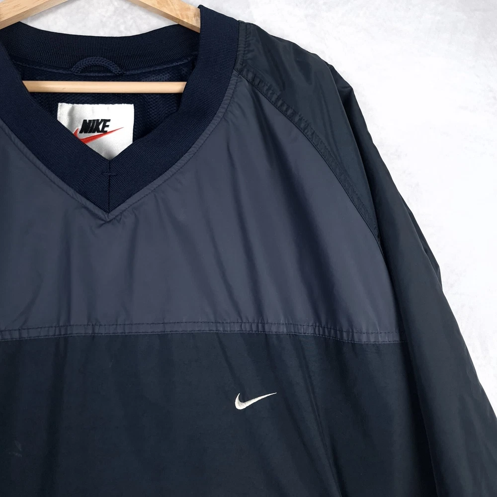 Nice vintage Nike Windbreaker Shirt Mens Large Good pre-owned condition with some fabric wear: - THERE ARE A HANDFUL OF MARKS ON THE FRONT AND BACK, AS WELL AS SLEEVE. All general areas have been pointed out in the photos - - THERE'S A SMALL RIP / HOLE, ON THE BACK SLEEVE - Please see photos for visual details. MEASUREMENTS ARE IMPORTANT. PLEASE COMPARE THEM TO YOUR FAVORITE CLOTHING ITEM. PREVIOUS WASHINGS MAY HAVE ALTERED THE SIZE . Thank you so much for shopping small businesses and for supporting my store. Always, Emily ** ALL CLOTHING HAS BEEN CLEANED, ACCORDING TO CARE TAG INSTRUCTIONS AS WELL AS EBAY POLICY AND GUIDELINES **