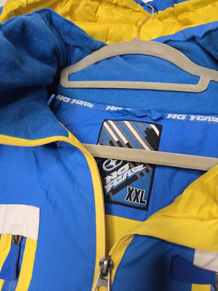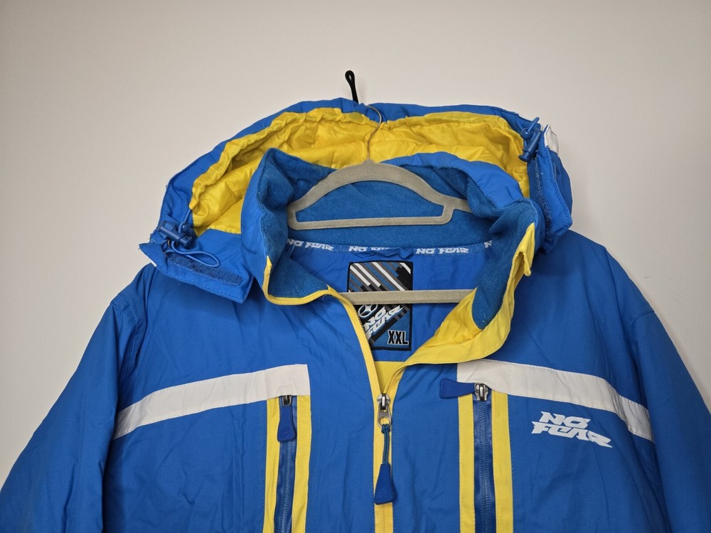 Quality find! Vintage No Fear Padded Ski Snow Jacket Mens uk size XXL Worn once! Excellent condition!! Pit to pit 24 inches Collar to hem 33 inches Multiple pockets inside & out Removeable Hood Fully padded & lined inside! Drawstrings & zippers intact Quality peice!! Comes exactly as shown in photos **PLEASE CHECK OUT MY OTHER LISTINGS #vintage #vintagefashion #vintageclothing #nofear #nofearclothing #nofearvintage #nofearcoat #nofearjacket #skijacket #snowjacket #wintercoat #mensnofear #mensxxljacket