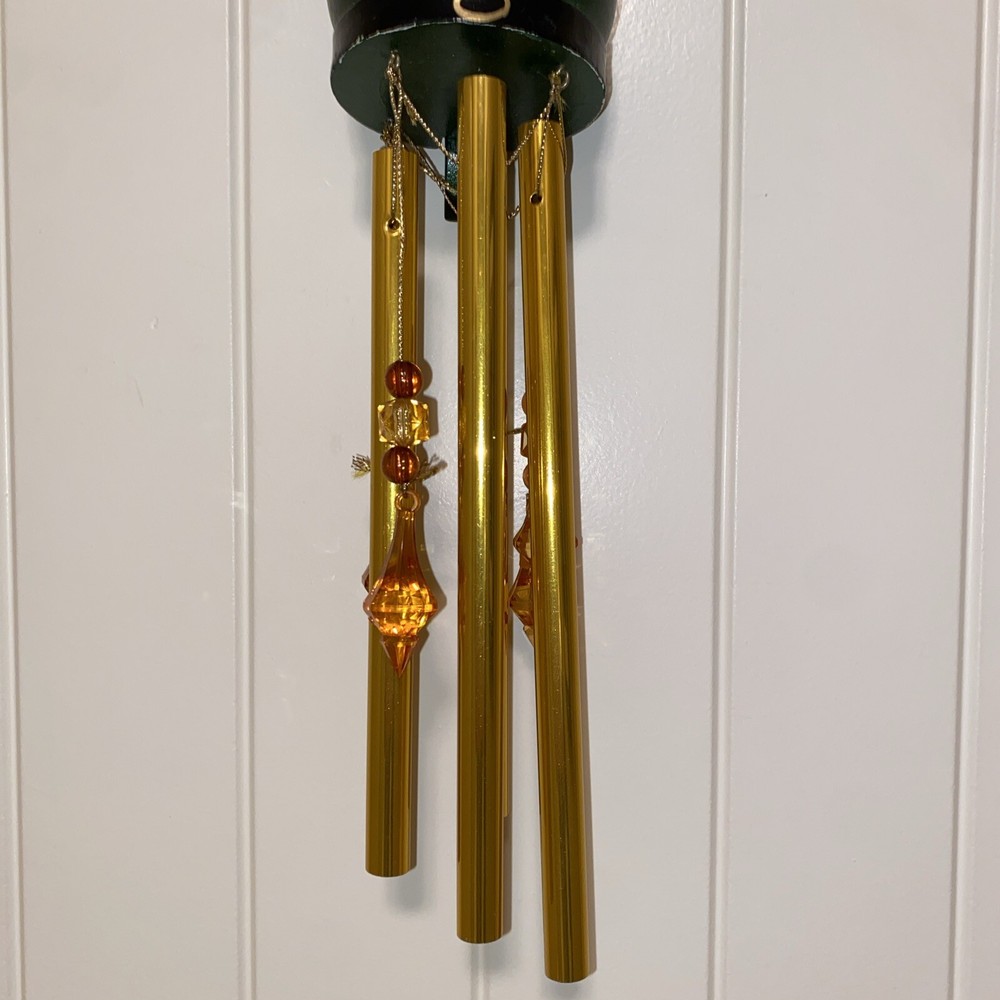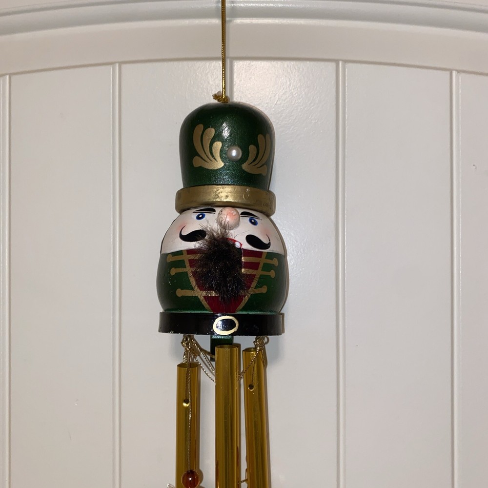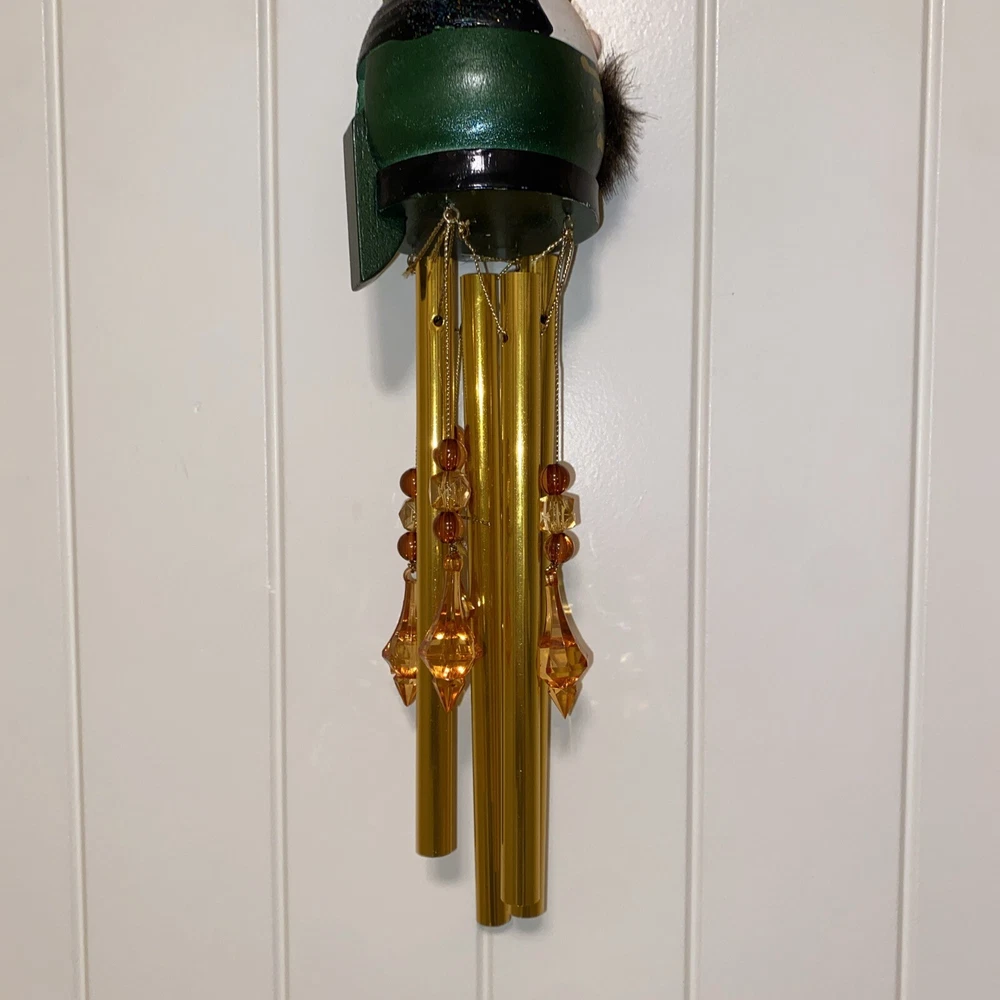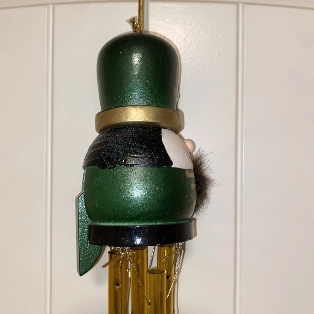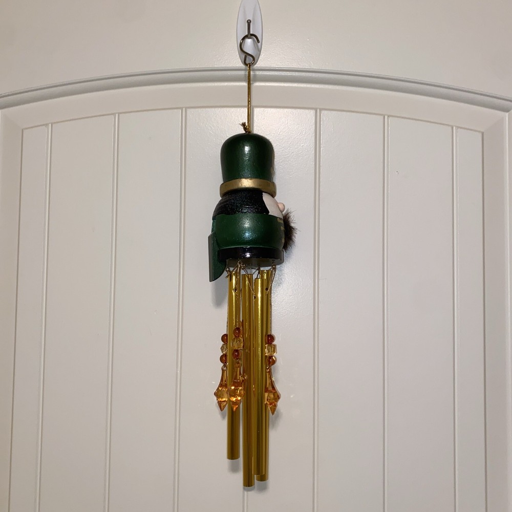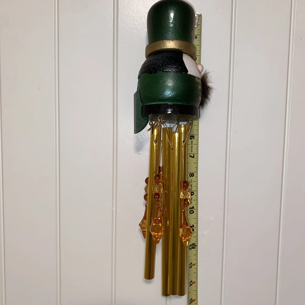 This vintage nutcracker wind chime is absolutely charming! The green and brass accents paired with delicate glass ornaments create a festive, nostalgic vibe. Perfect for adding holiday cheer to any porch or garden—lovely craftsmanship and great size at 20". A must-have for Christmas decor lovers!
