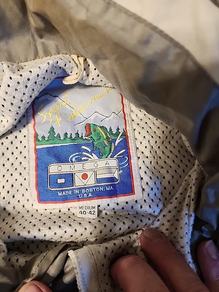 This vintage OMEGA Sport Fisherman Windbreaker Jacket is a must-have for any fashion-savvy man. Made in the USA, this jacket is perfect for all seasons and features a softshell fabric type that is both wind-resistant and machine washable. The jacket has a mid-length, band collar style, and a full zip closure with embroidered logo accents. The tan color and solid pattern of this jacket make it suitable for a variety of occasions including travel, casual wear, and workwear. The jacket is available in size M (40-42) and is ideal for men who enjoy track and field, tennis, walking, hunting, fishing, hiking, running, and jogging. The jacket is part of the OMEGA product line and is a regular fit, making it a perfect addition to any wardrobe. Please look at the photos they are part of the description. Thanks for looking.