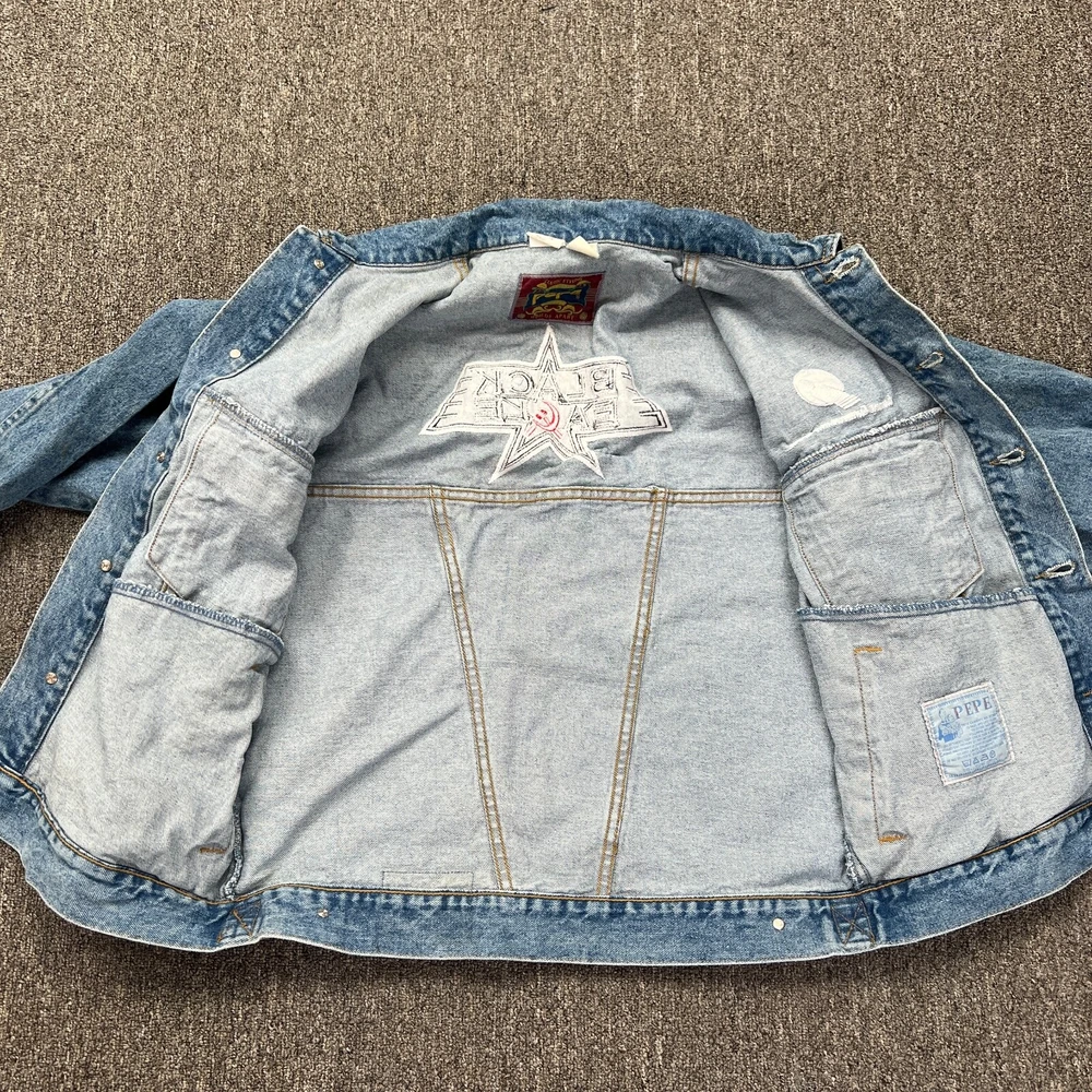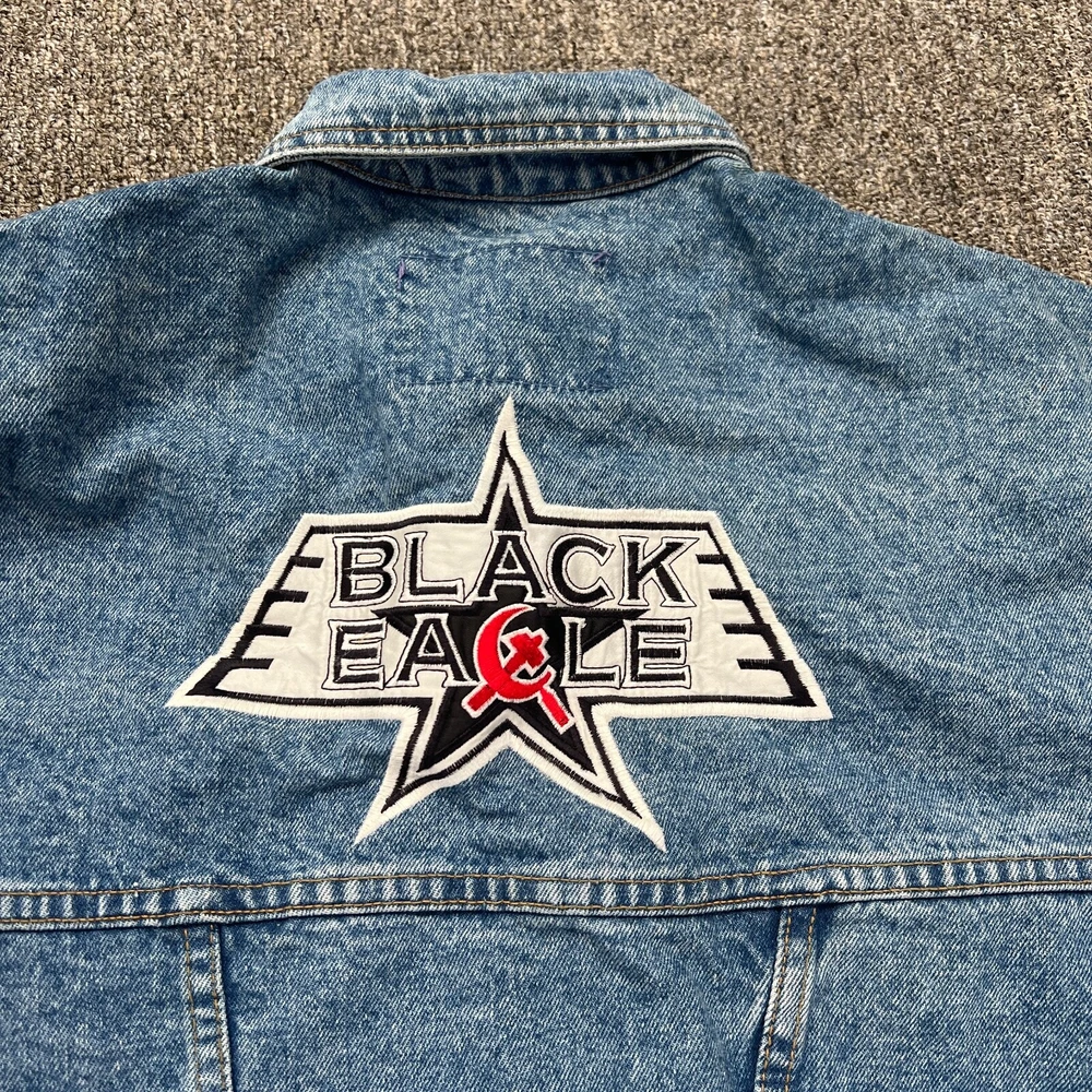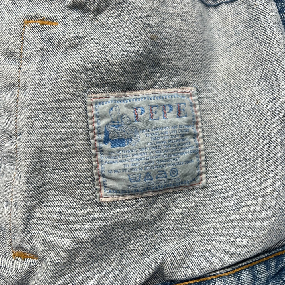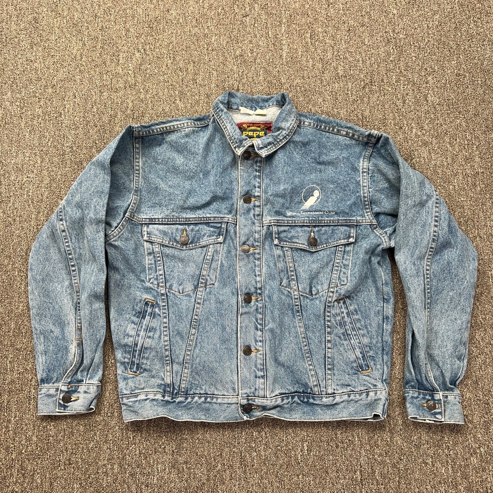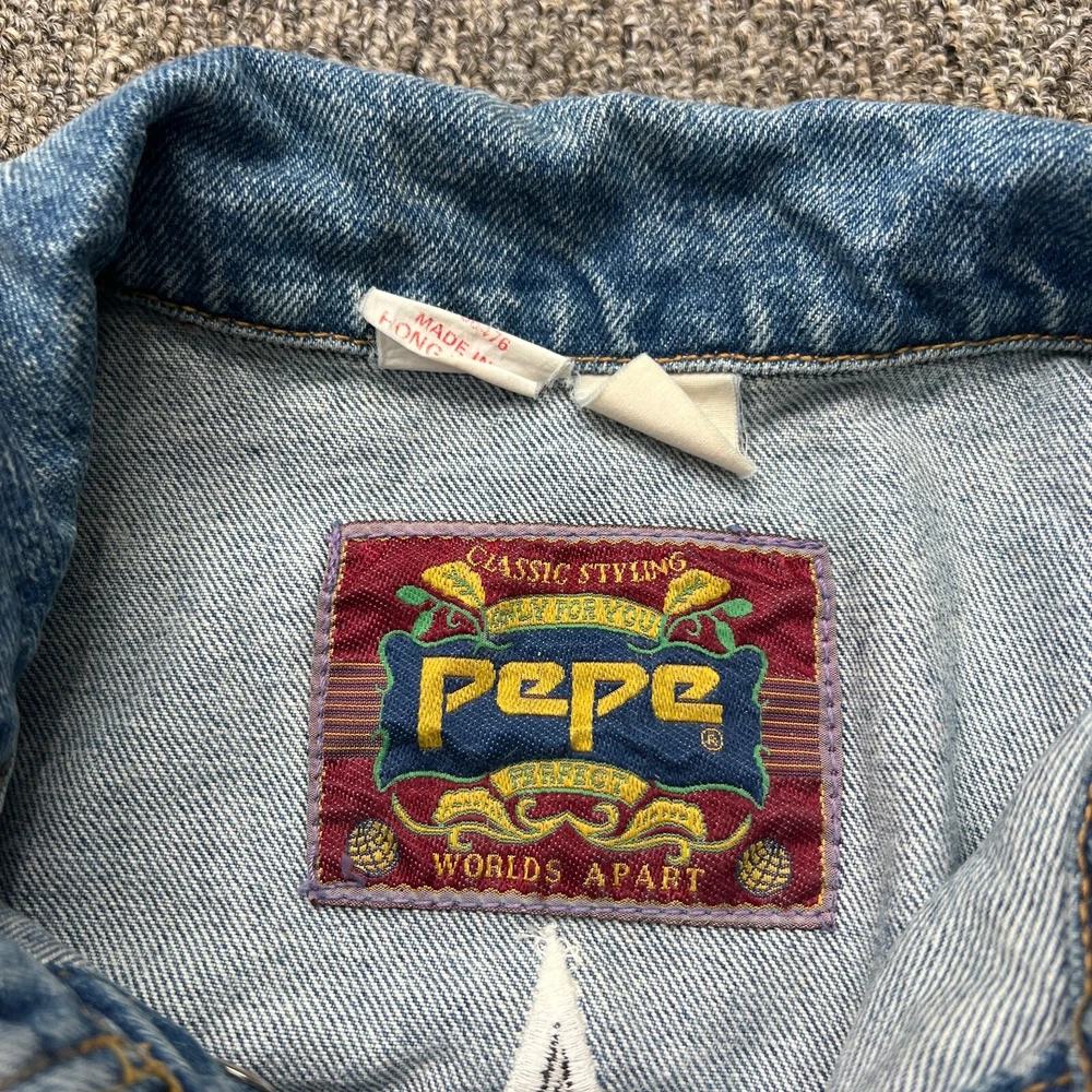 You can safely shop with ease when you buy here, everything I sell is absolutely 100% authentic. This item also has no tailoring or alterations made Vintage Pepe Jeans Black Eagle Denim Jean Jacket Promo item for the 1988 Jean-Claude Van Damme film - Black Eagle Scarce promo item featuring the production company logo on the front and the film logo on the back There are some yellowing spots from storage in some areas. Some yellowing areas at the end and top of left sleeve, discoloration mark at right sleeve seam, discoloration at top left front, some wear to reverse side pepe patch This has been cleaned and then bagged, I did not attempt to remove any stains Please look at all of the photos prior to purchase to see the condition of the shirt you will receive No holes, tears, or rips Size: Medium Approximate measurements: 21 inches flat across chest 25 inches length from top of neck down to bottom hem