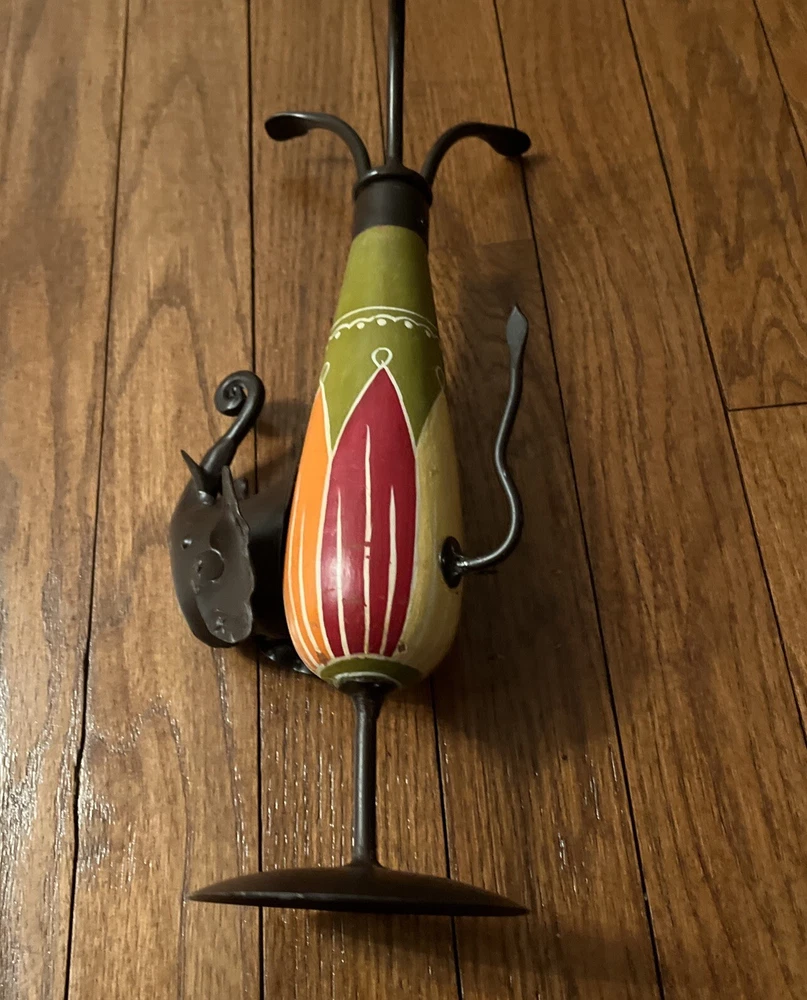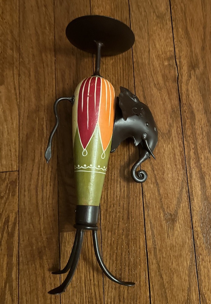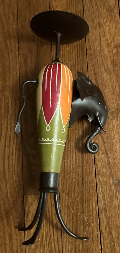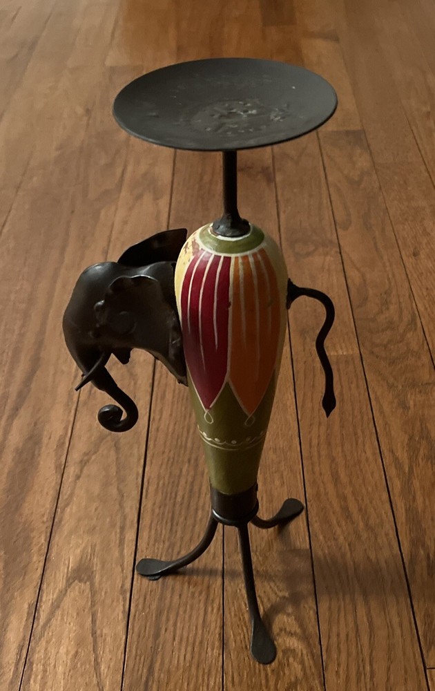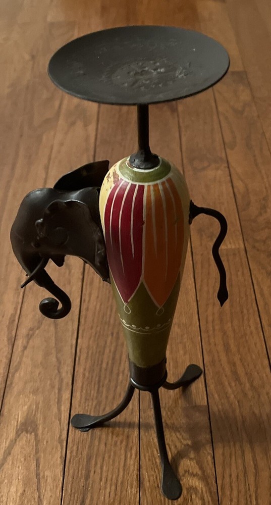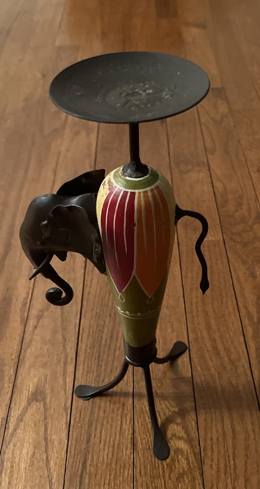 Vintage Pier 1 Imports African Elephant Wood & Metal Candle Holder One.