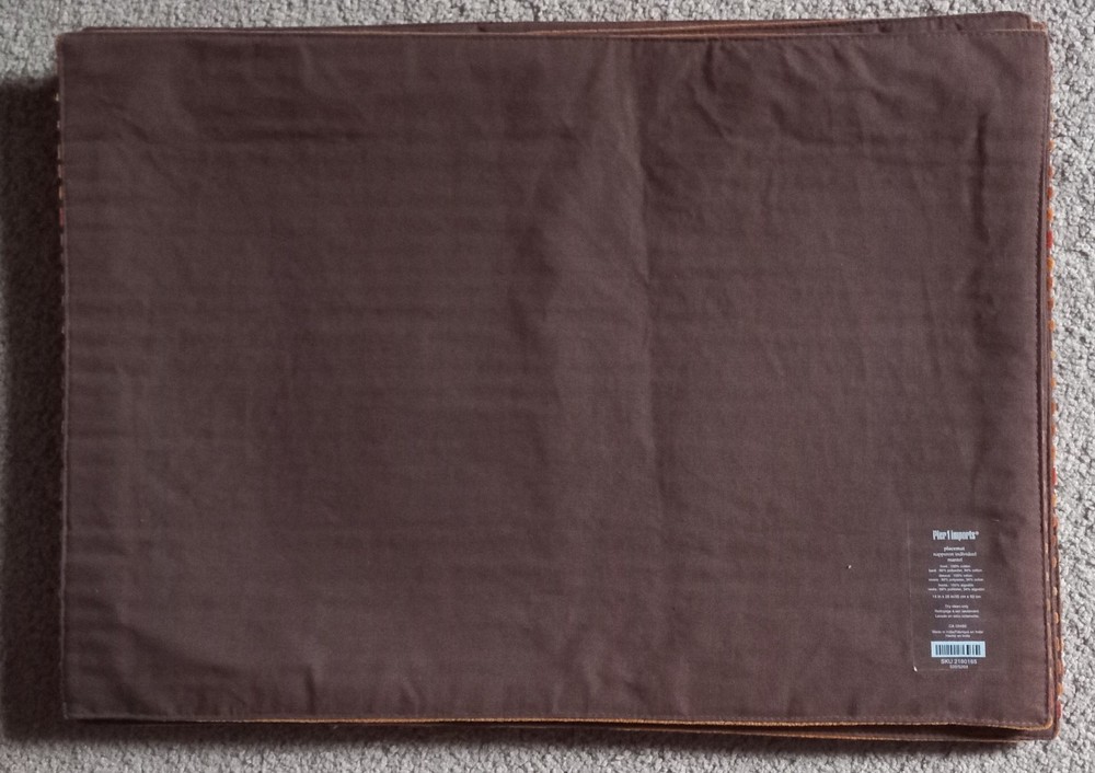New With Tags Which are the Pier One Stickers on Back of Each Placemat. Please See Pics. Each Placemat is 20" x 14" Beautiful Fall/Fiesta Colors. Thanks for Looking!