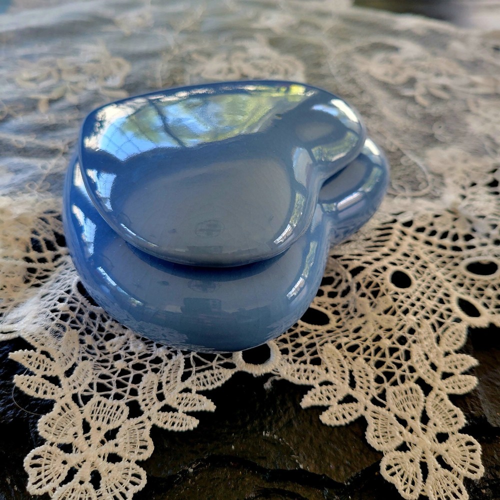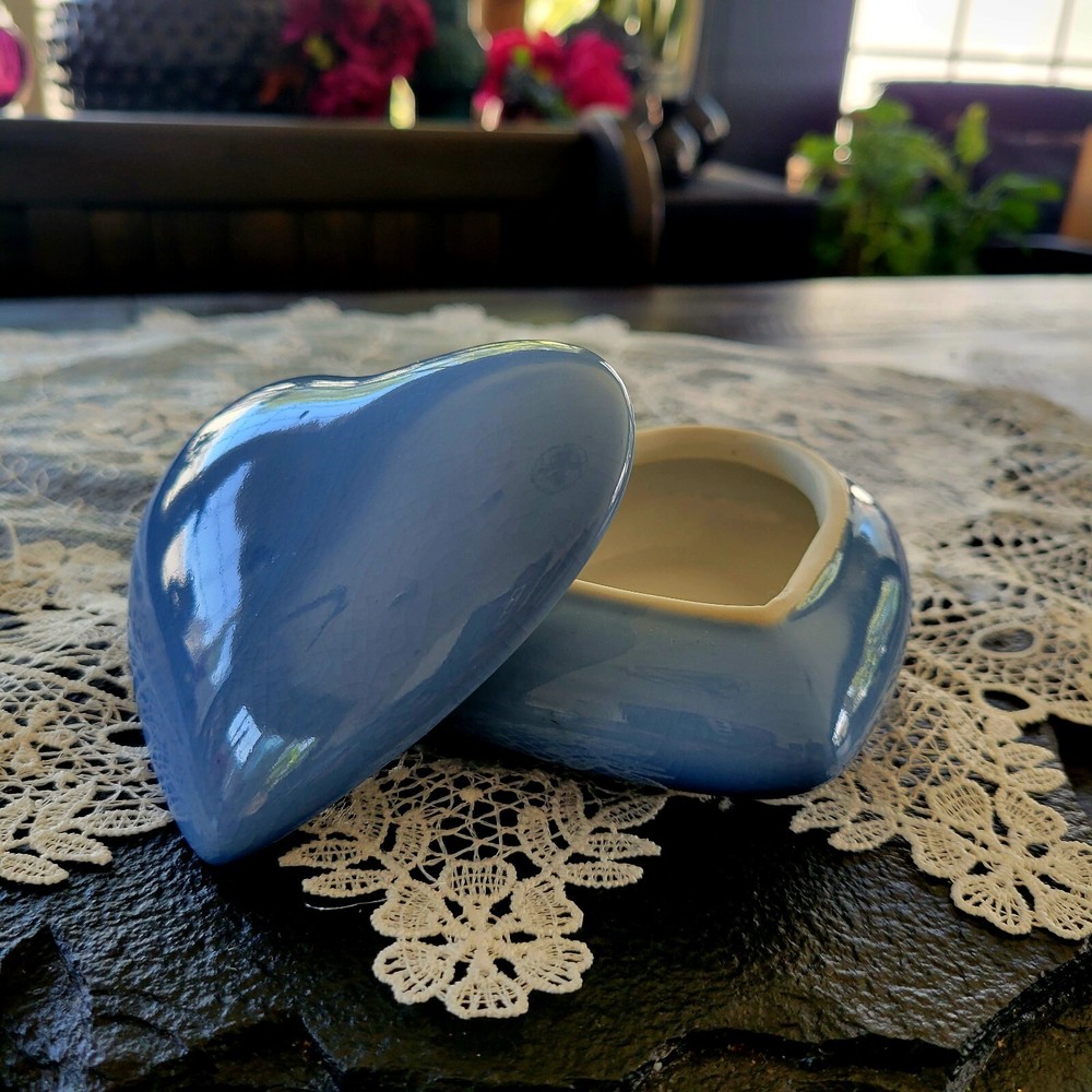 Vintage Pier 1 Imports Powder Blue Heart Shaped Trinket Jewelry Box Ceramic....