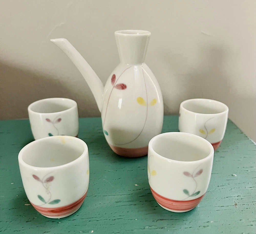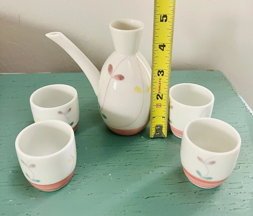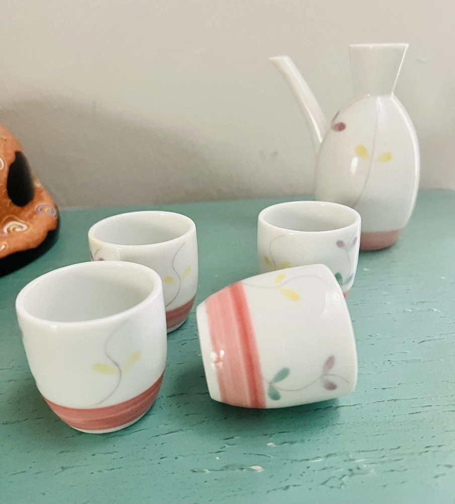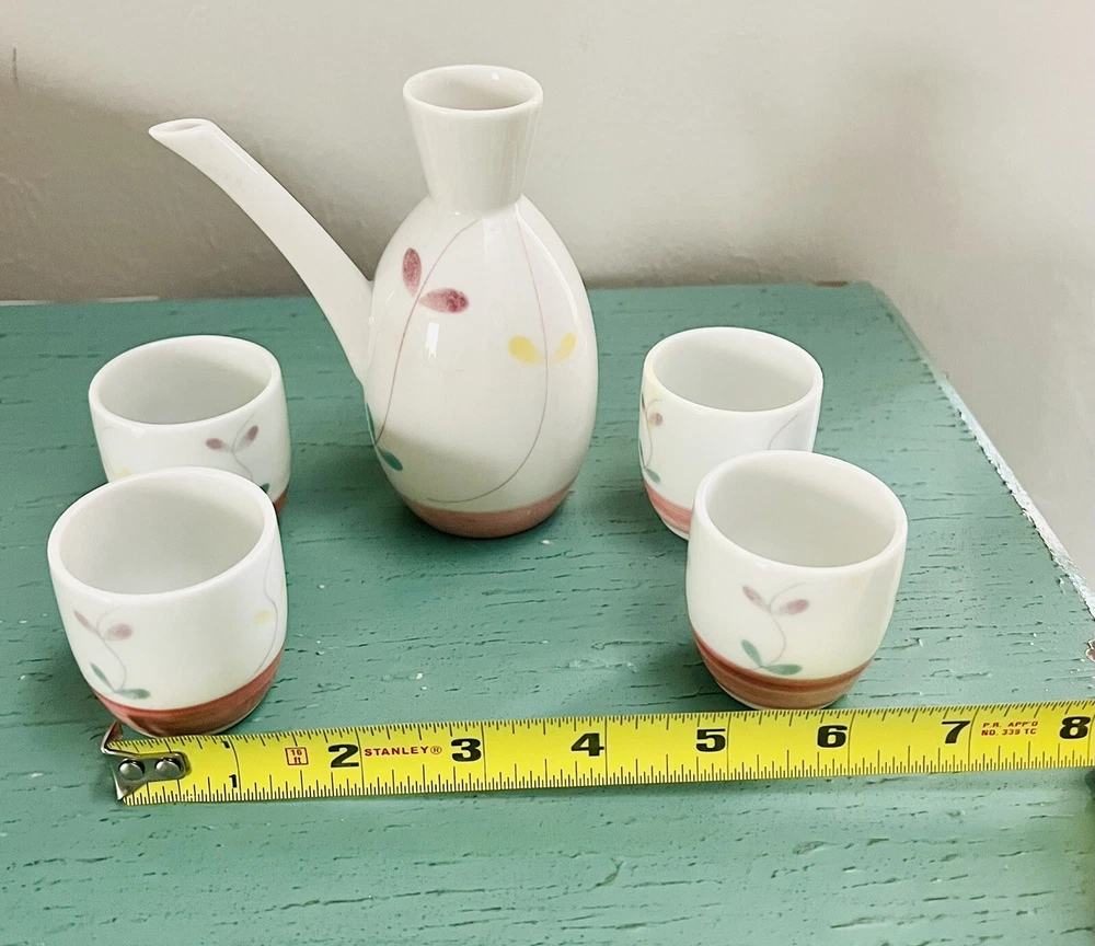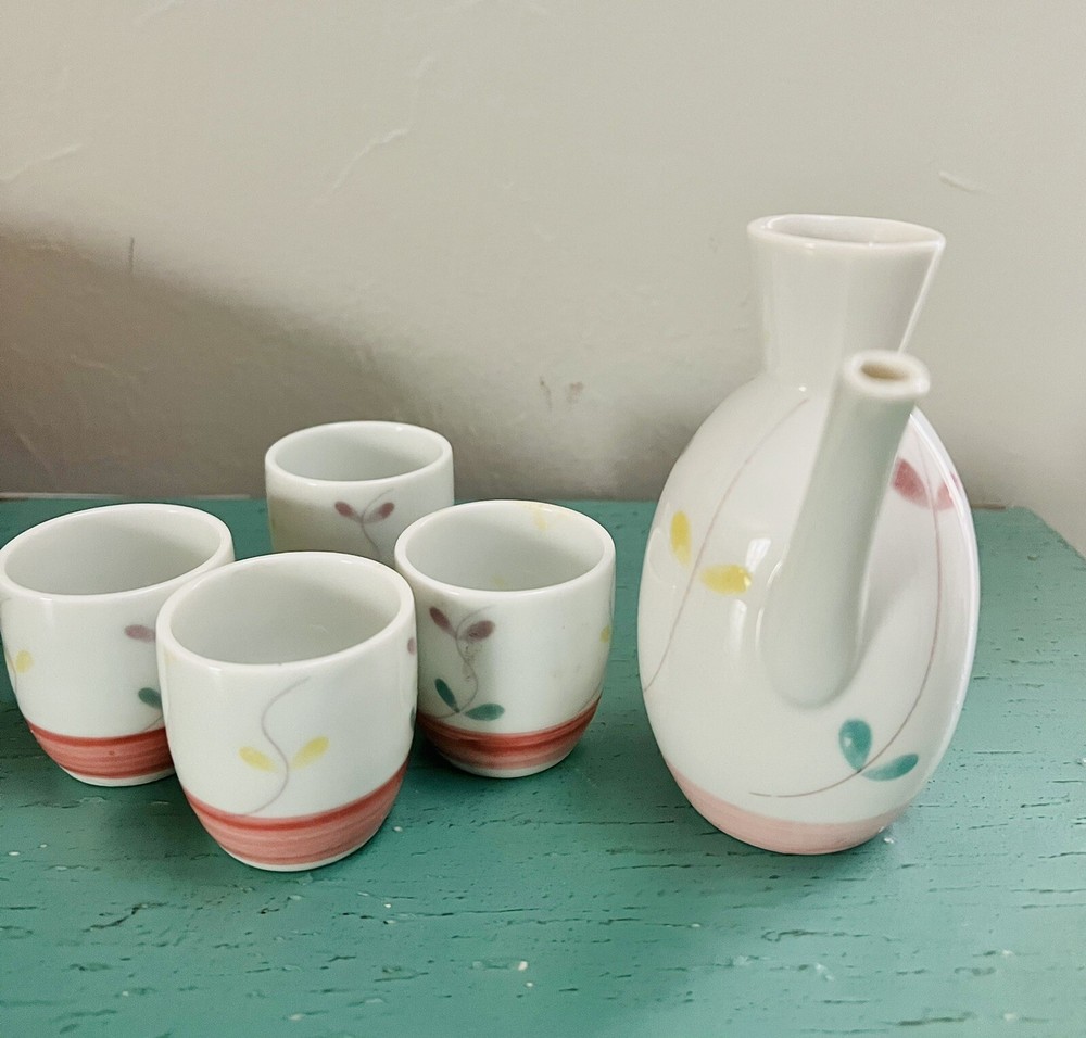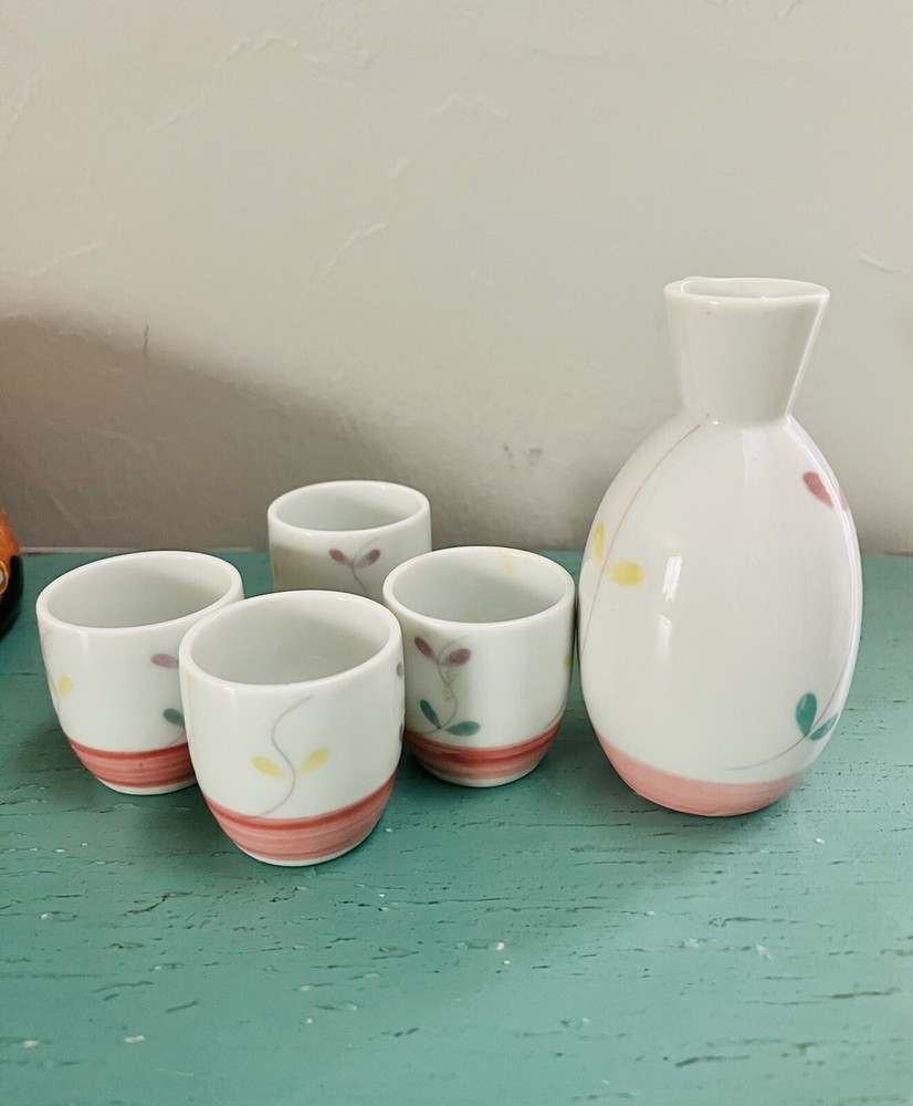 Vintage Pier 1 Imports Sake Pitcher 4 Cups Pink White Porcelain Floral Set made in Japan. Condition is mint. No original box. Nice set for your bar, kitchen, collectors of Japanese ceramics and porcelain. Please feel free to ask us any questions you like before you bid or buy. We're happy to respond based on what we know and can observe. Kindly send any questions our way well before the listing ends so we have time to respond to you. After the purchase, if suddenly you are not satisfied with something, do not like it, your plans change, please contact me directly through messages before leaving a bad review. I will be glad to answer all your questions and suggestions. Making the buyer happy is one of the main tasks of ebay sellers. Thank you.