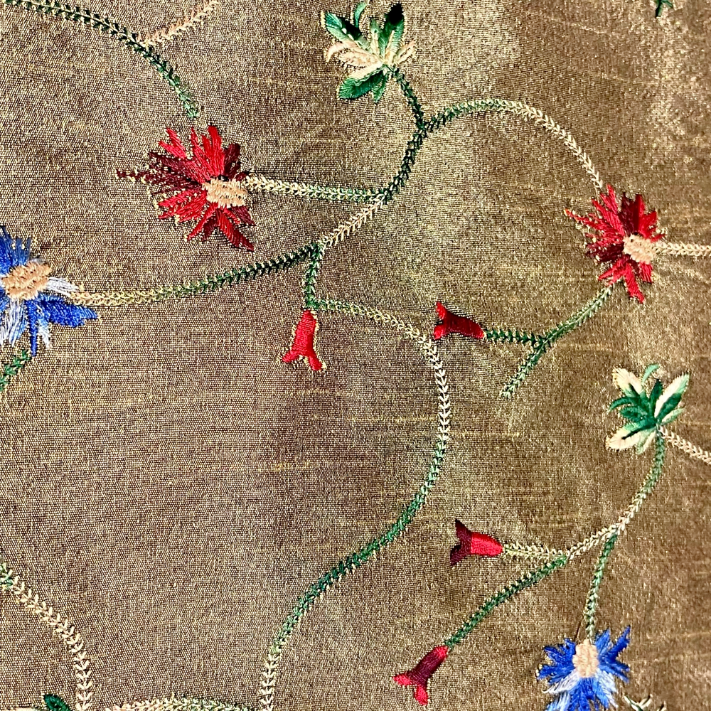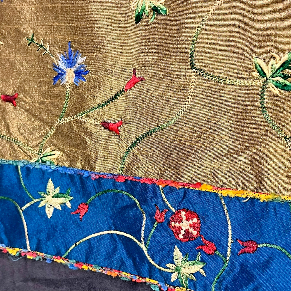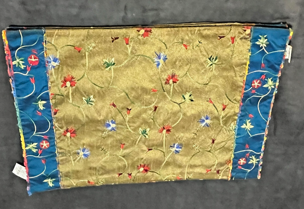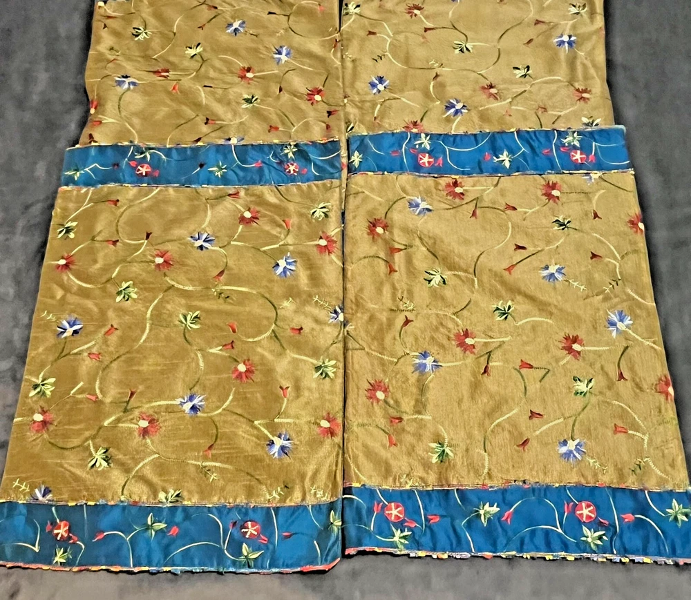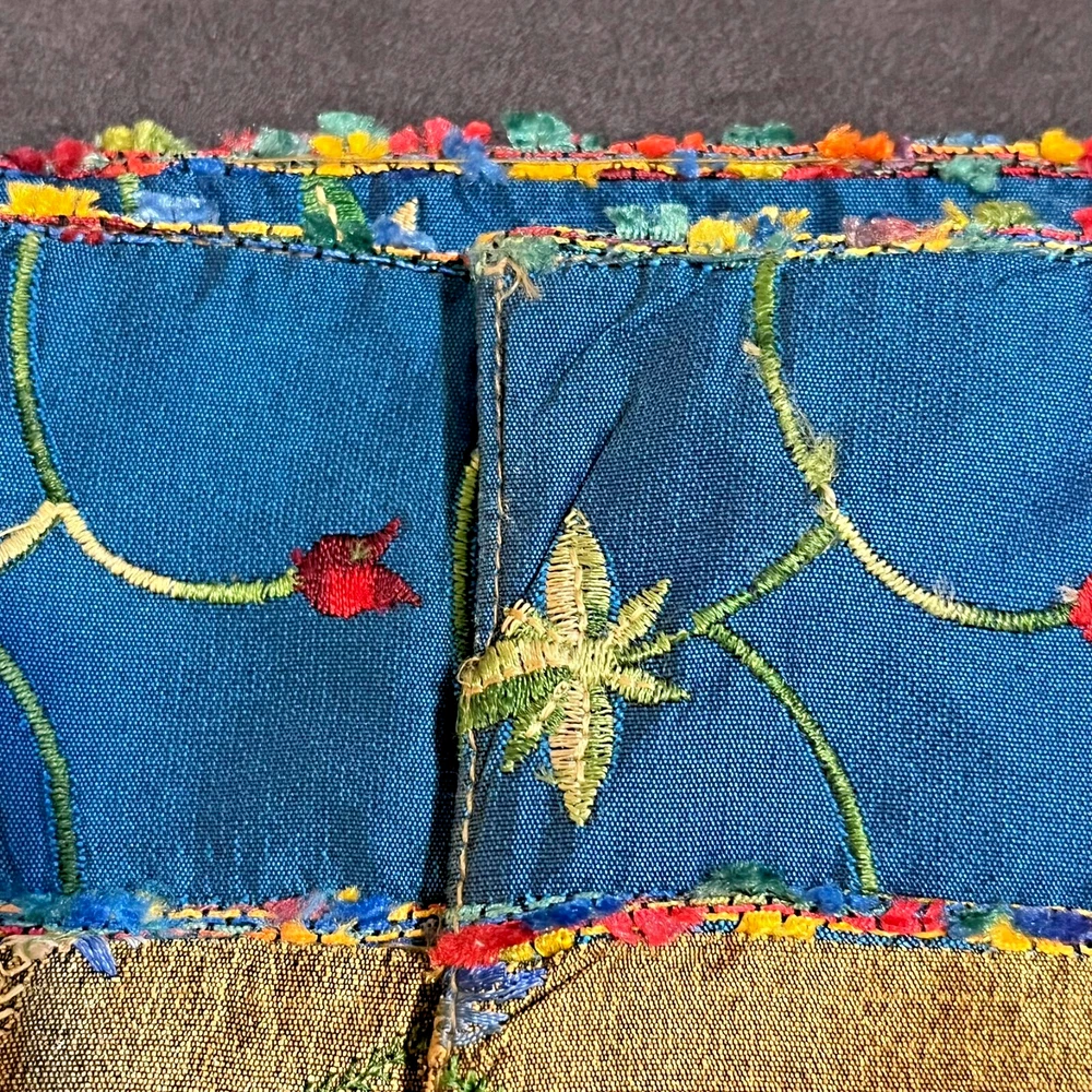 Vintage Pier One placemats Set of 4 Measure 19" x 13" 100% polyester Gold/blue Beautiful flower embroidery Blue backing Hand wash only Colorful edging "Pansy Tri Color" pattern Bright vibrant colors! Some natural variations in woven cloth Good used condition. No rips, tears or stains. A few loose threads. See photos! Color representation may slightly differ due to variations in lighting conditions. Thanks for supporting my small business!