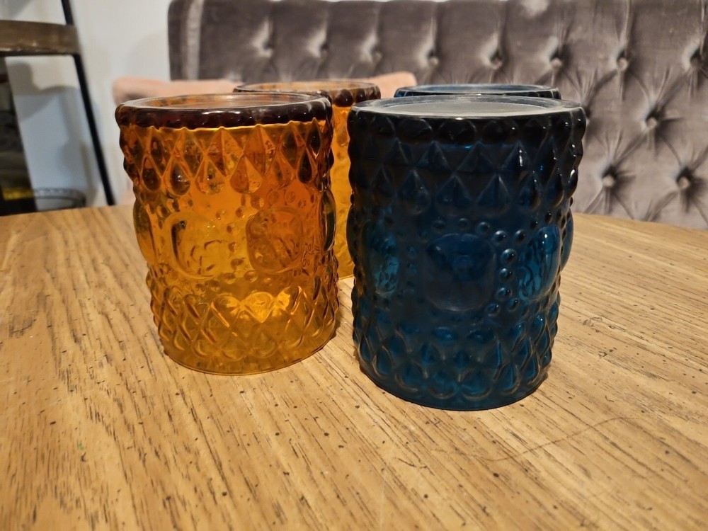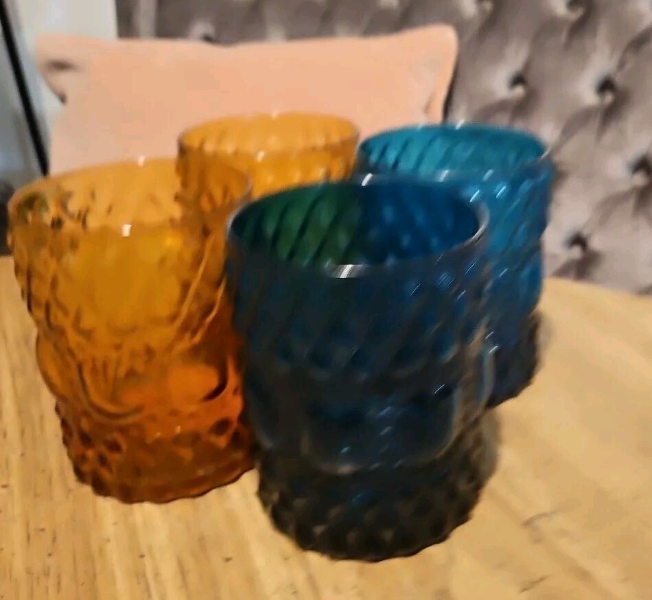 Vintage Pier One Imports Glasses 2 Blue/ 2 Yellow . Condition is Used. Shipped with USPS Priority Mail.