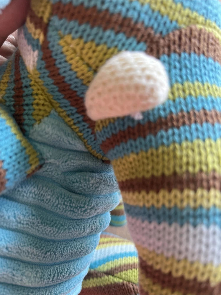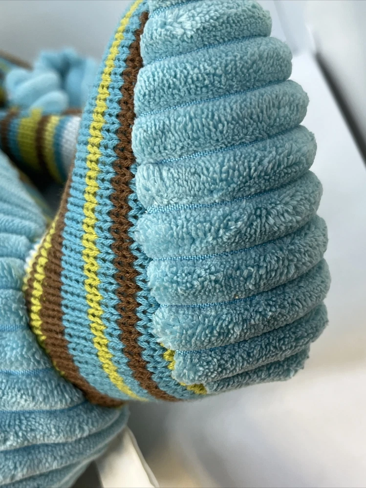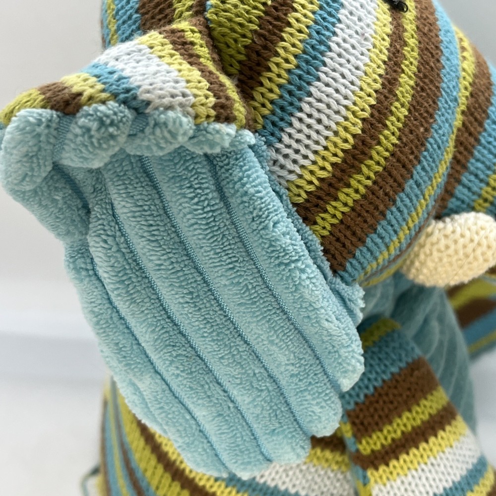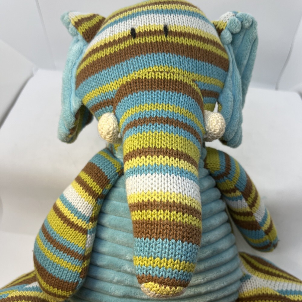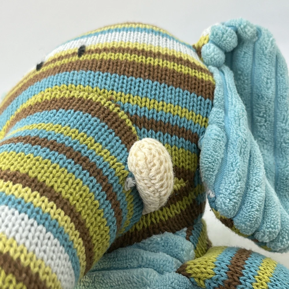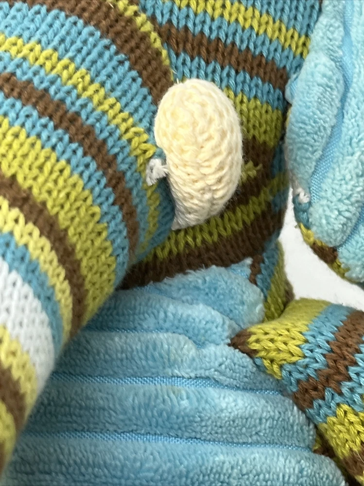 Jala sits up as straight as he can, with a fluffy striped face, arms & legs, and a light blue cozy body. He is very soft & cushy, ready for some snuggles! He has been gently loved & ready to share more! His tush tag & some fabric right near his tusks show a tiny bit of wear-- otherwise, he is in very good condition. The colors are bright, soft & just adorable! He is 12" inches tall Please see the photos for more details.