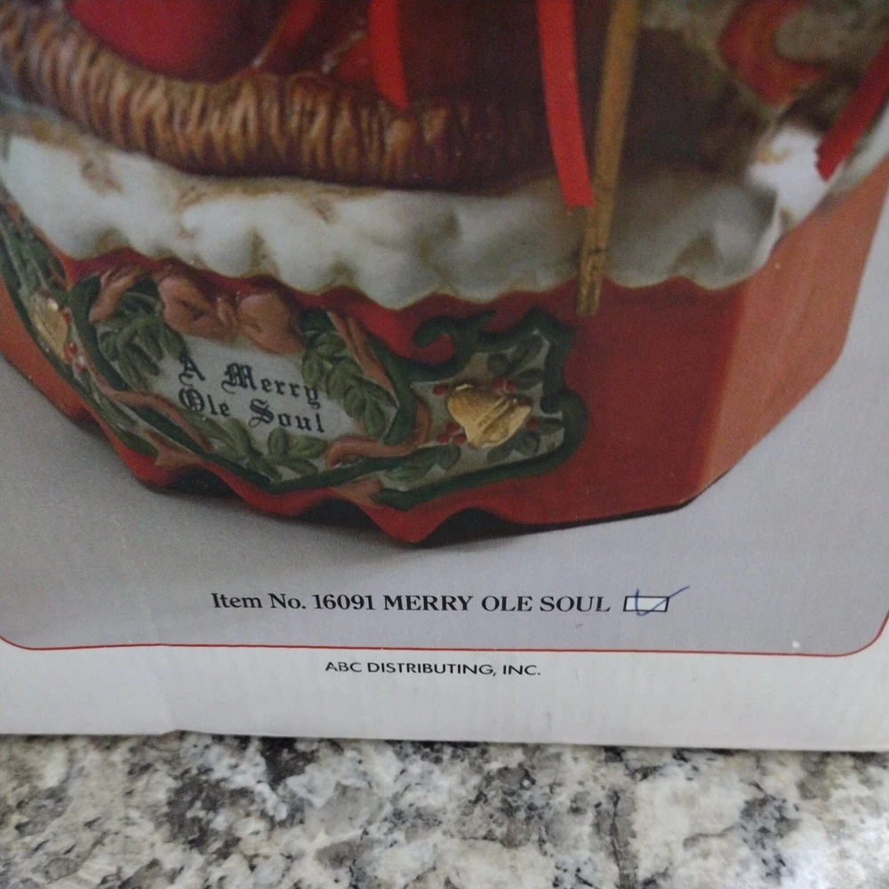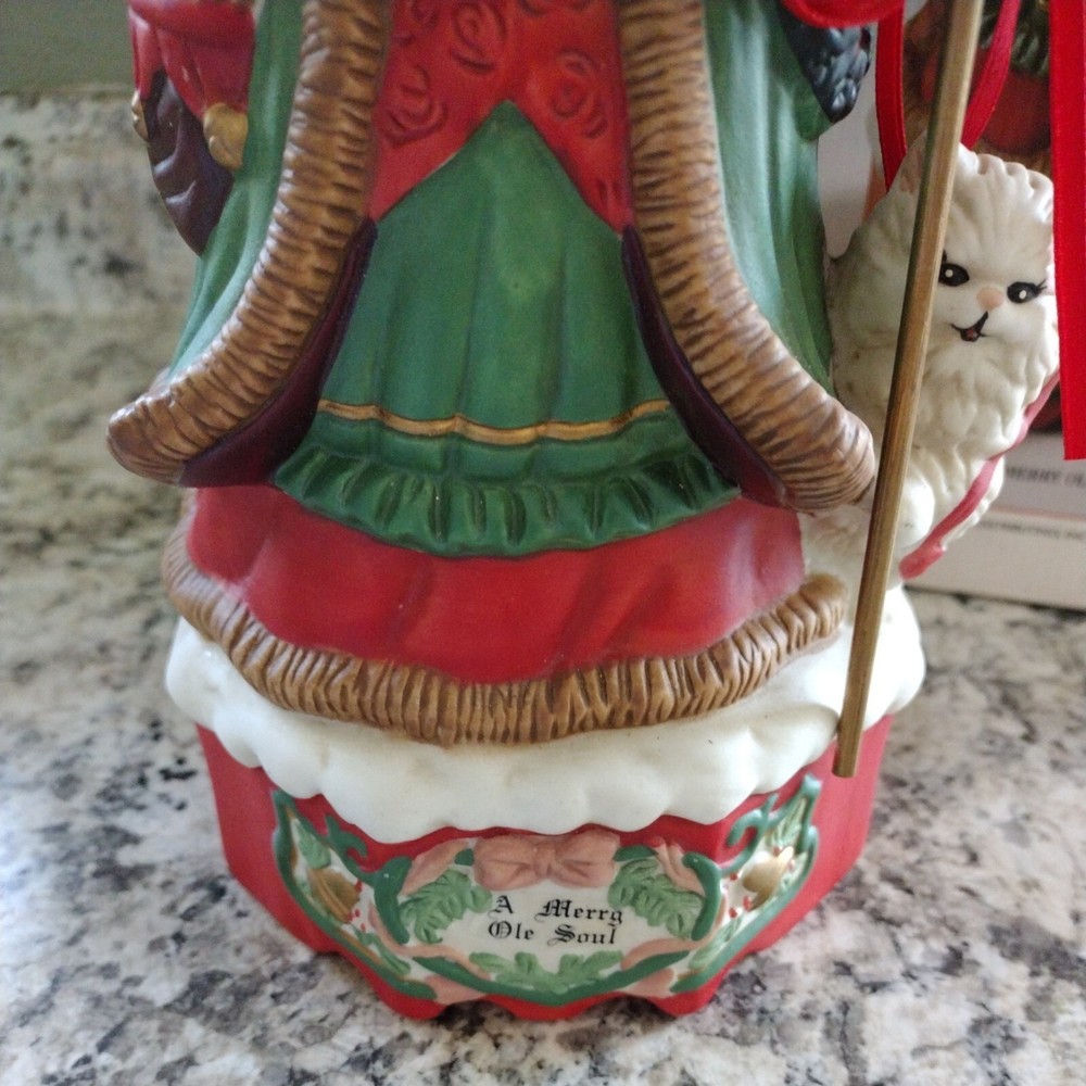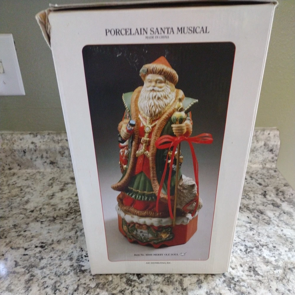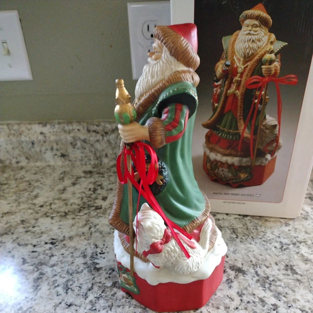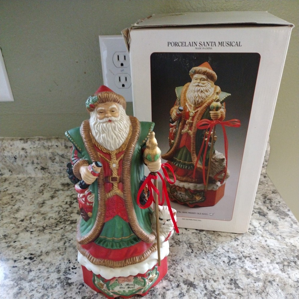 Vintage Porcelain Santa Clause Merry Old Soul Wind Up Christmas Music Box Works. Tested and working. Stands approximately 11" tall 5" wide. Thanks for taking a look!