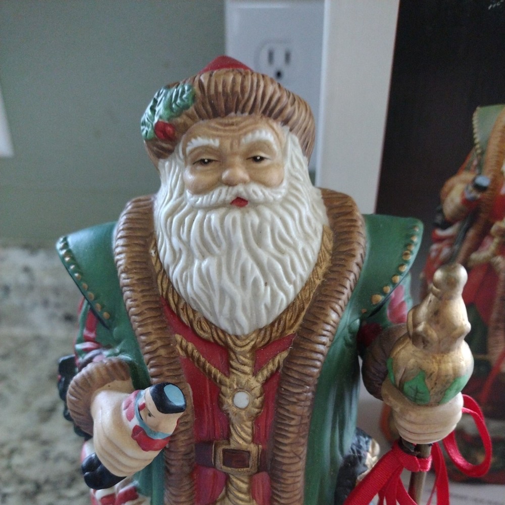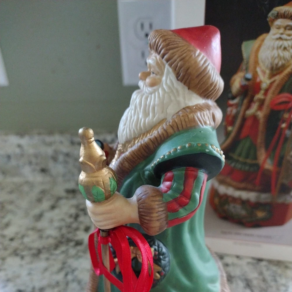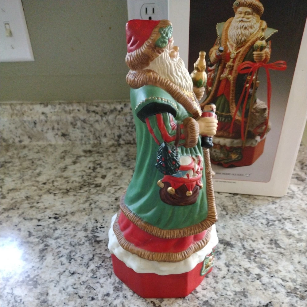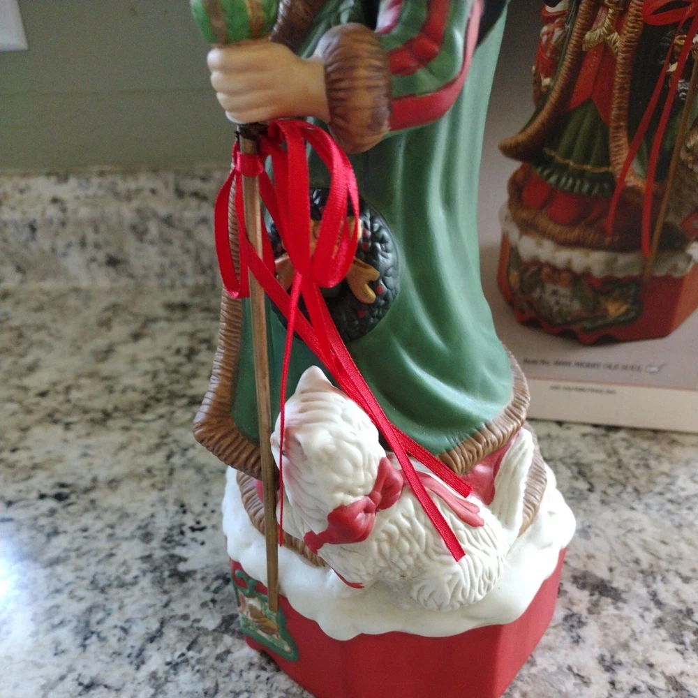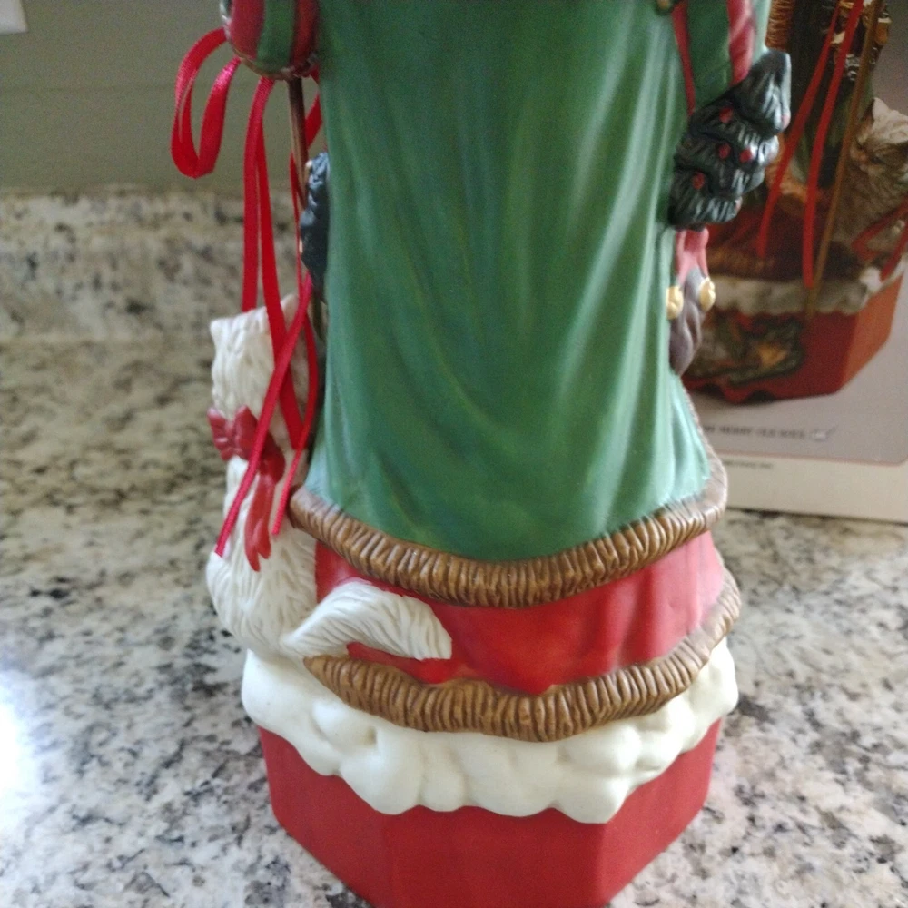 Vintage Porcelain Santa Clause Merry Old Soul Wind Up Christmas Music Box Works. Tested and working. Stands approximately 11" tall 5" wide. Thanks for taking a look!