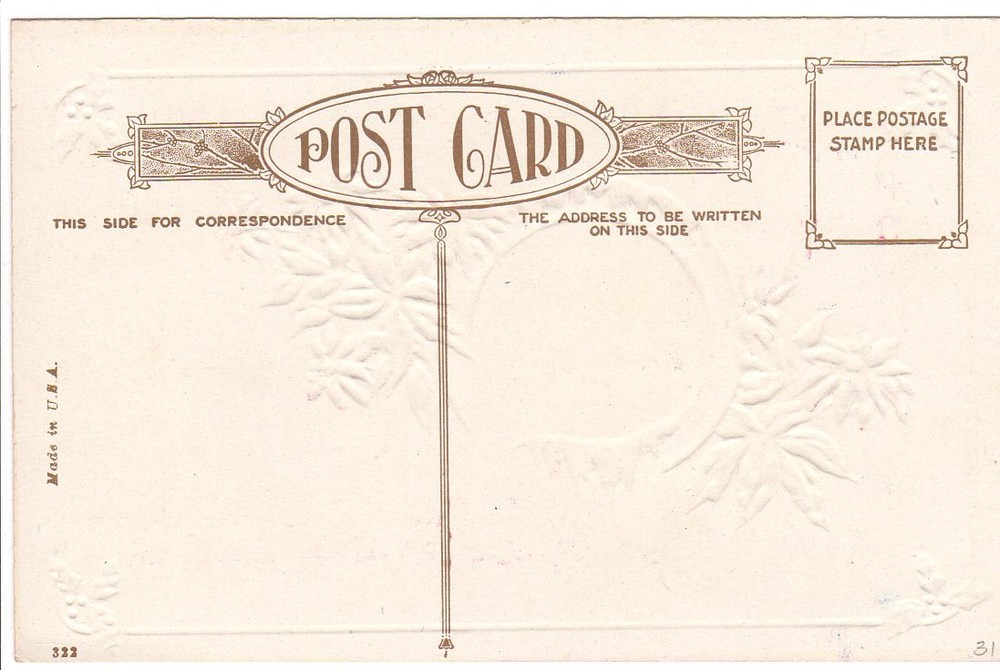 Beautiful old vintage postcard : Christmas Please see scan for publisher/post mark and complete detailed view of item. Size: Standard pc approximately 3.5 x 5.5 inches Item : Christmas 31 Condition : Good vintage condition with typical toning, edge and surface wear for the age of paper. Please see photos for a detailed view of the condition of this item prior to purchase. Vintage postcards are fun to collect, give as gifts, use in various scrap booking and art projects or framed and displayed. Please check out my other items for more great treasures. Shipping : Flat Shipping of $1.50 to U.S. Bidders International buyers, please use shipping calculator to find out shipping prices prior to bidding. Buyer is responsible for all taxes, tariffs, and dues incurred. Combined Shipping : I am happy to combine shipping on multiple purchase. Please ask for a combined invoice prior to payment of the items. Florida Sales Tax may apply