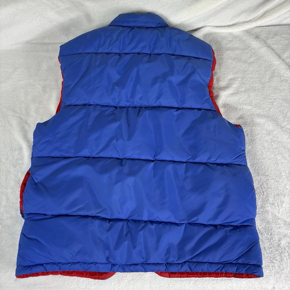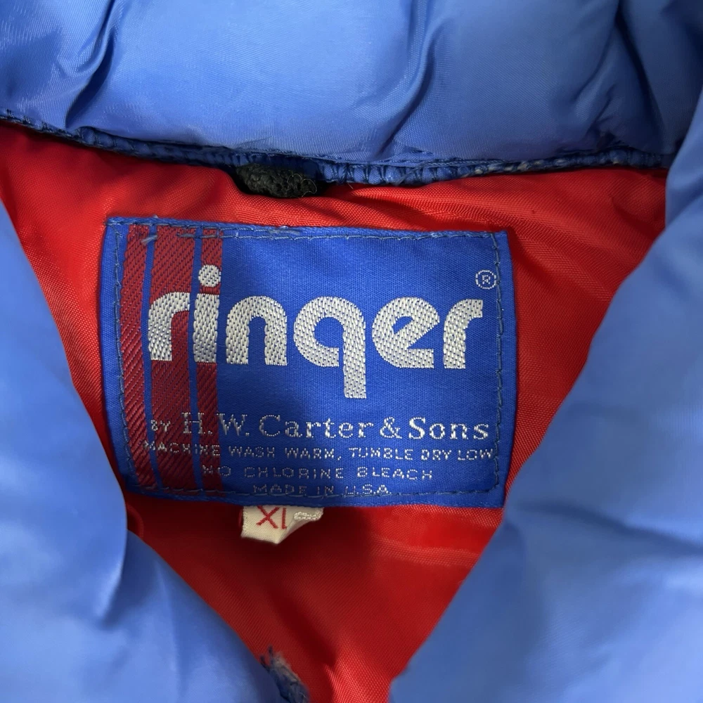 This vintage puffer vest is perfect for any outdoor activity, from walking to hiking and even skiing. It features a snap front button closure and is made of heavyweight polyester that is wind-resistant and insulated, making it perfect for all seasons. The vest also has collared stand-up and pockets for added convenience. The multicolor vest is in size XL and has a chest size of 42 inches. It is machine washable and has a solid pattern. The Ringer brand vest is perfect for travel, casual, and workwear occasions. The vest is a great addition to any wardrobe and is sure to keep you warm and stylish.