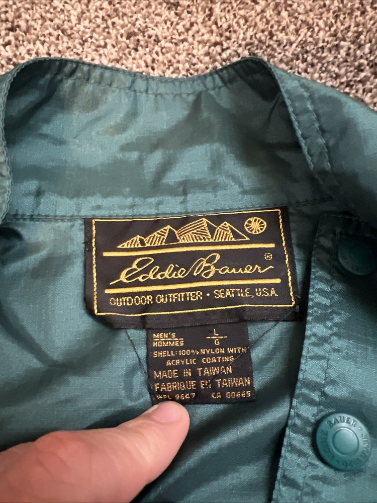 VTG Eddie Bauer Pullover Windbreaker Jacket Mens Medium Blue 1/4 Snap Bomber. Condition is Pre-owned. Shipped with USPS Ground Advantage.