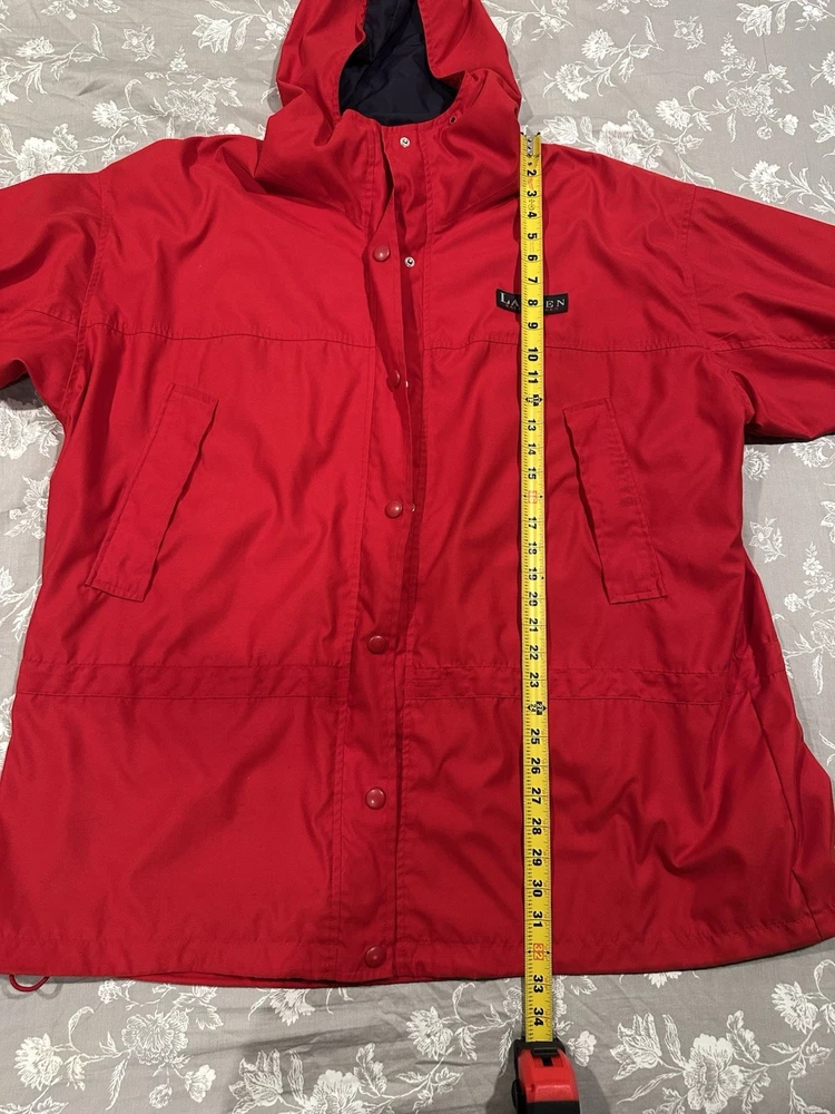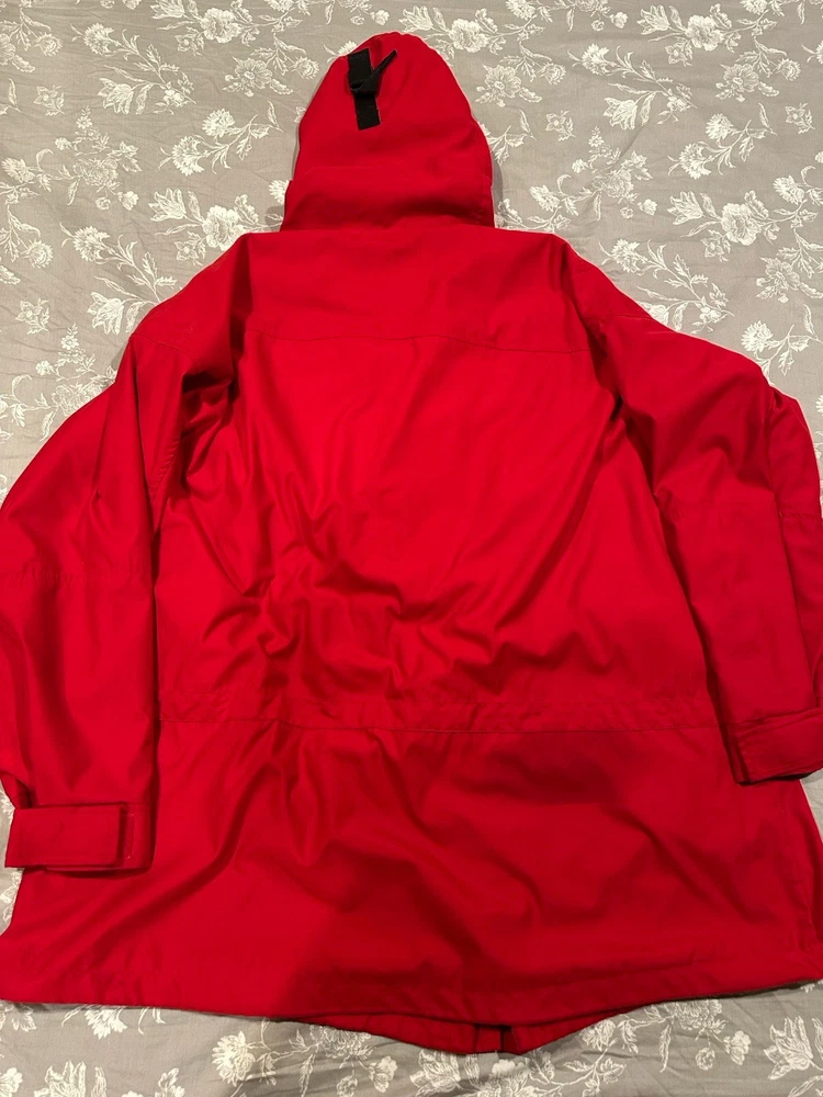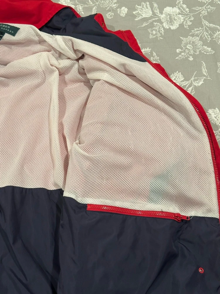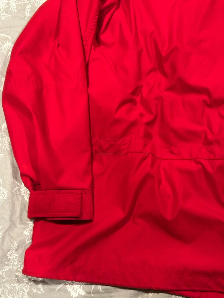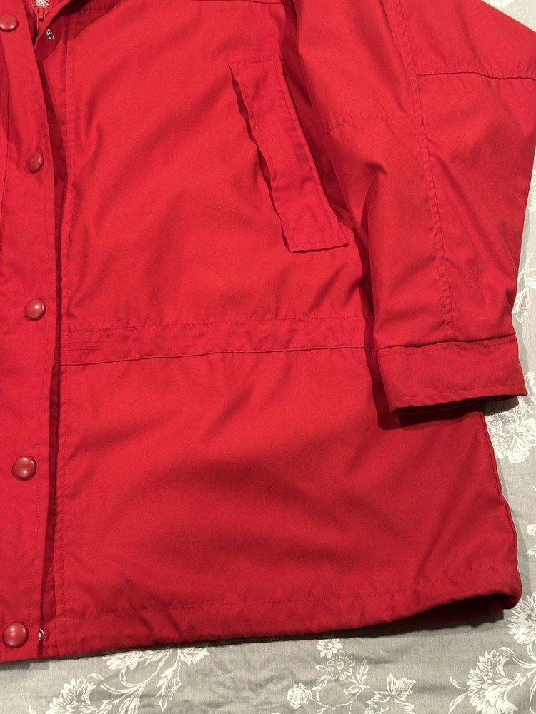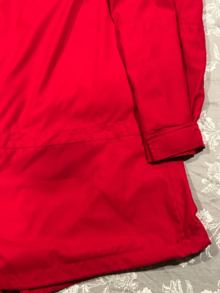 Red Lauren Ralph Lauren jacket in great condition. Features pockets inside and out, hood, snap and zip closure.