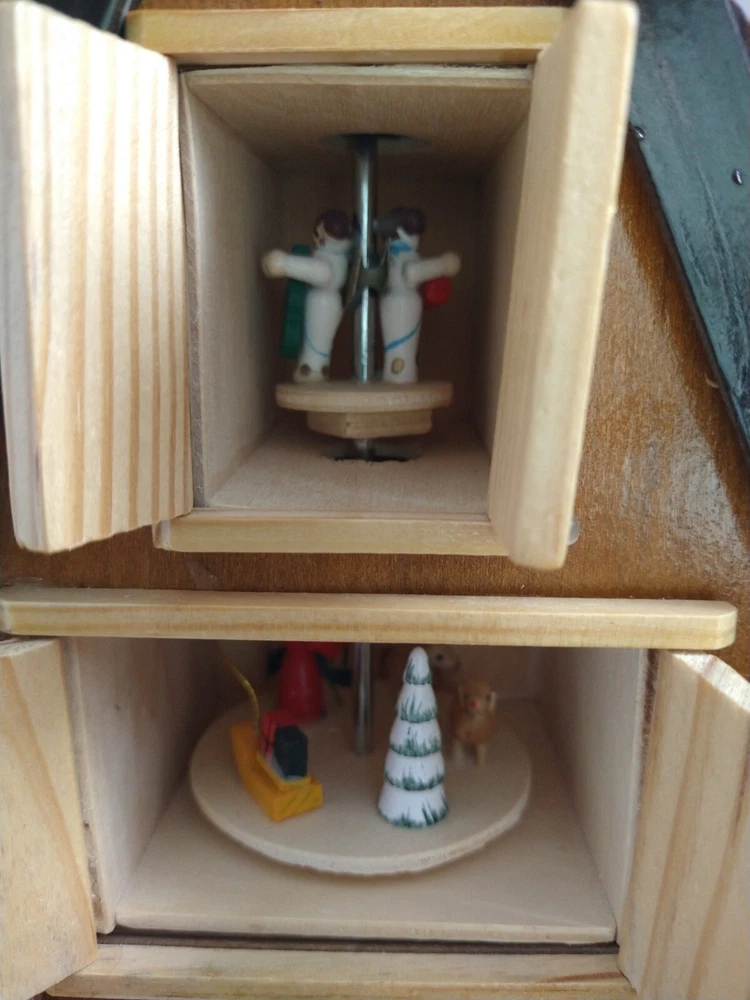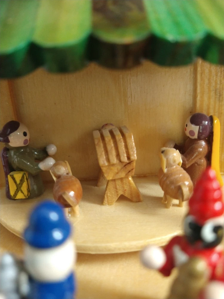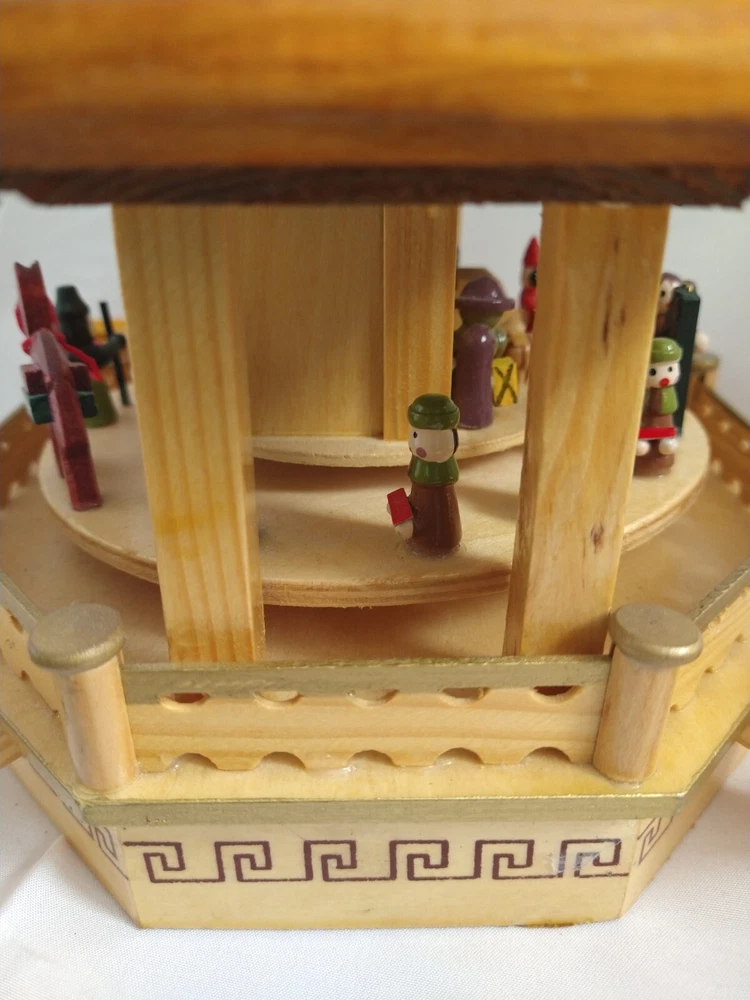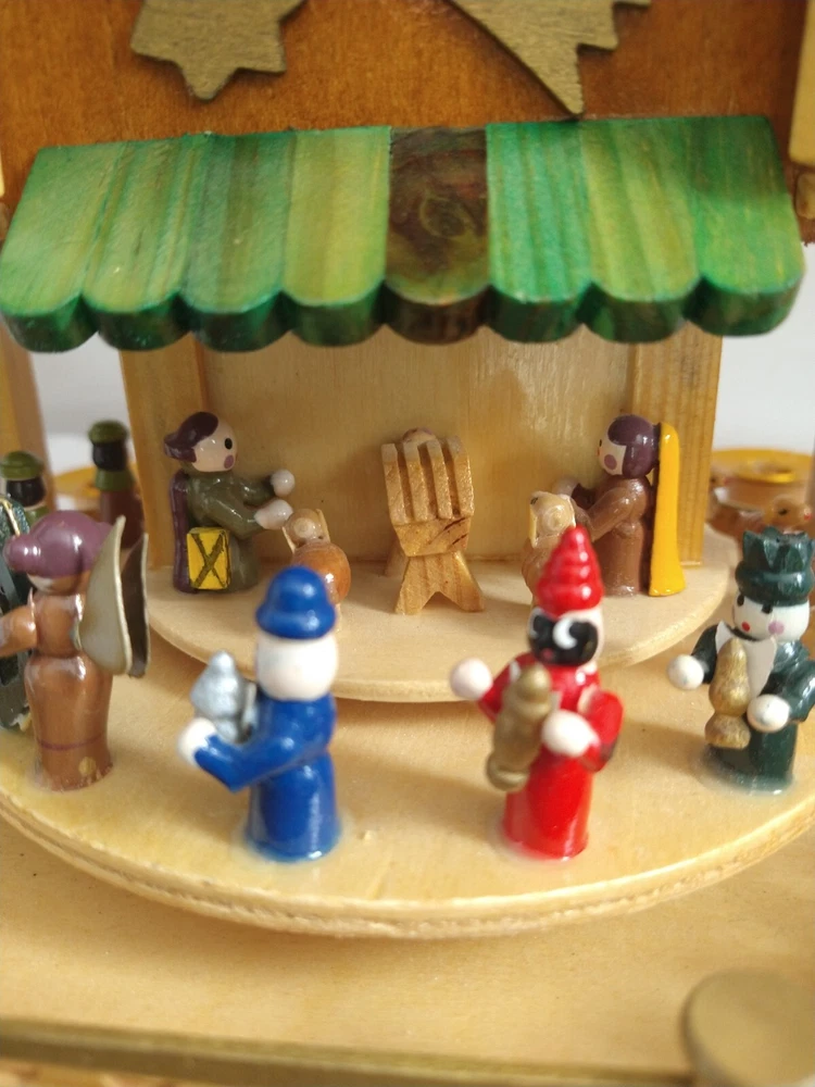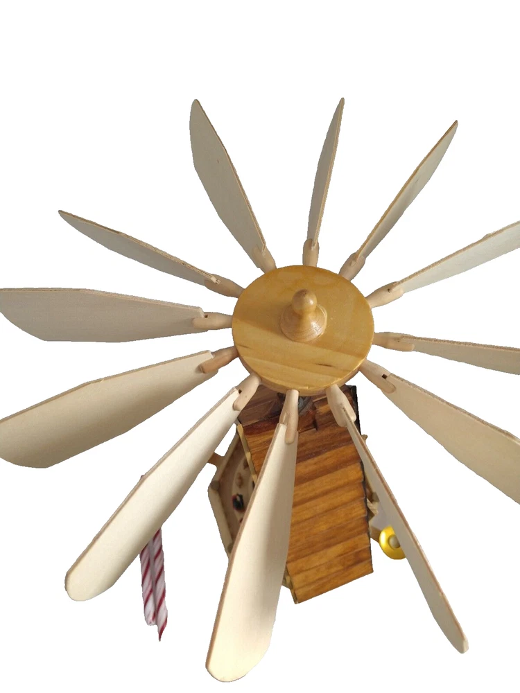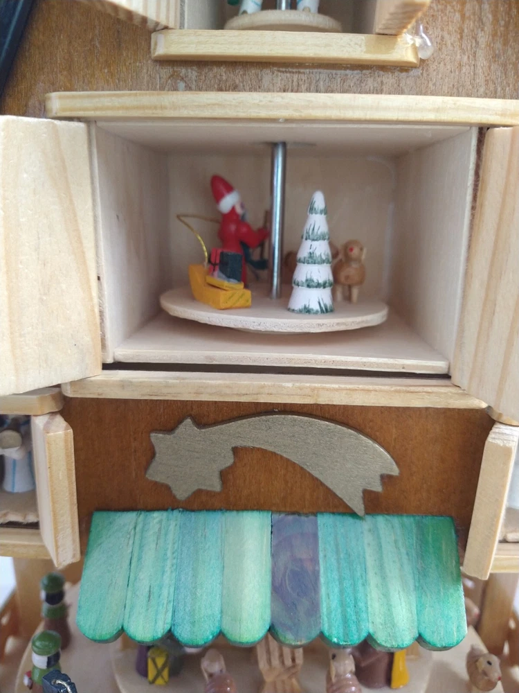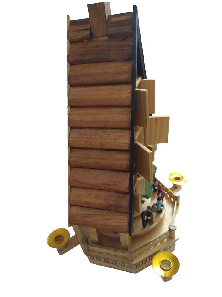 Vintage Rare BRUBAKER 4 Tier, 17" Christmas Pyramid Windmill Carousel Nativity Beautiful German Design Collectible Advent Depiction, decorated with miniature Nativity, Angels, Santa scene on 2nd tier, 3 Kings, Camel, Sheep, Harp, Christmas tree. *PLEASE NOTE, VIEW PICTURE OF RIGHT SIDE DOOR ON 1ST TIER, WAS GLUED ON EDGES, STILL OPENS AND CLOSES WITH CARE. THIS IS ONLY FLAW. Requires 4 candles, only 2 candles included. Does not come with original box. Thanks for Looking!