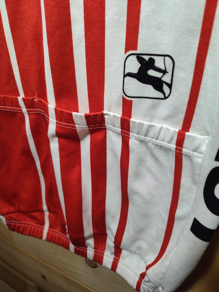 This vintage Levi's Pinarello Blackburn cycling jersey shirt is a rare find for any avid cyclist or collector. Made in Italy, this multicolor jersey features a pinstripe pattern and a V-neckline with short sleeves. The fabric is a medium wash and the jersey is windproof, stretch, and breathable, making it suitable for all seasons and high visibility. The shirt is a size 2 and fits athletic, with a regular size type. The jersey is made of 50% cotton and 50% polyester, and has a classic 80s and 90s sports theme. Whether you're cycling or just want to add a retro piece to your wardrobe, this Levi's Pinarello Blackburn jersey is a must-have.