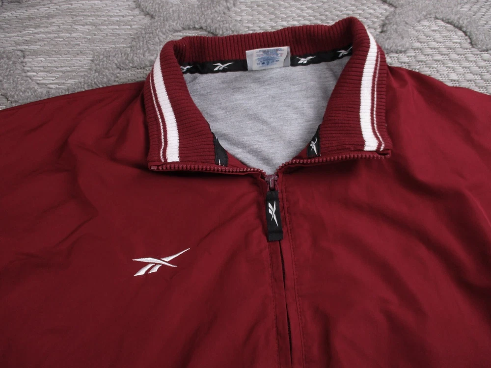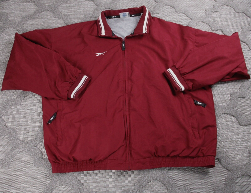 Vintage Reebok Jacket Mens XL Maroon Zip Track Windbreaker Lined Zip Pockets