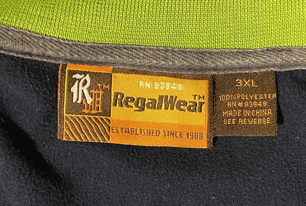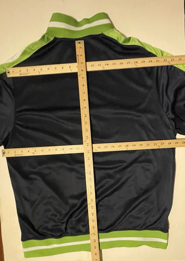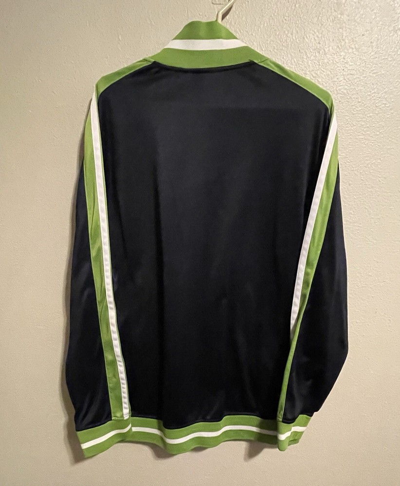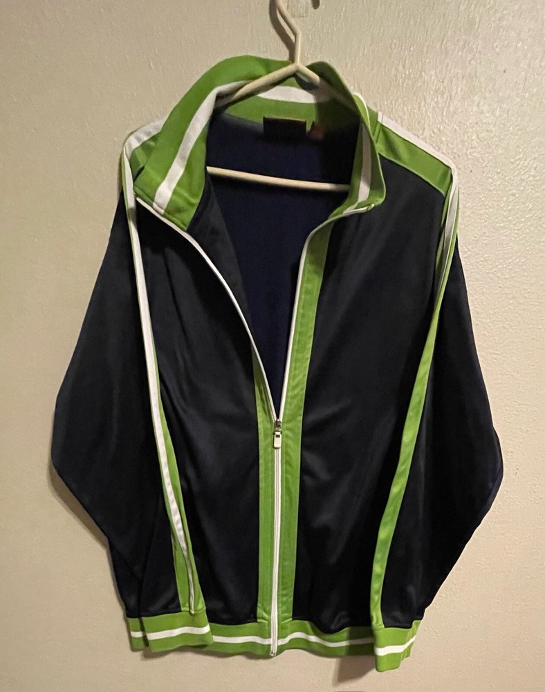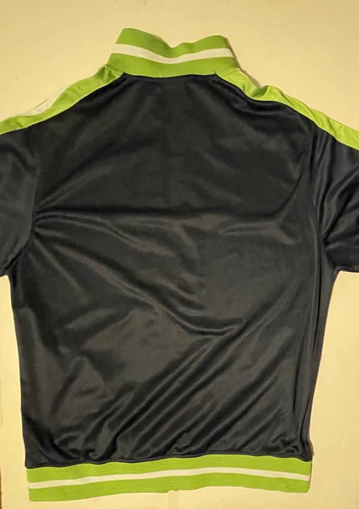 This Vintage per-owned RegalWear zippered Jacket is in good condition. Please see photos for a visual description. Show off this vintage RegalWear with Seattle Seahawks colors windbreaker jacket with The blue and green color block pattern is perfect for any casual occasion, and the mid-length coat is designed to keep you comfortable in all seasons. The jacket features a full zip closure and elastic waist for a secure fit, and the softshell fabric is both water and wind-resistant. With pockets for added convenience, this jacket is perfect for outdoor activities and sports events. It's machine washable and easy to care for, making it a great addition to your wardrobe. Get ready to cheer on the Seahawks in style with this RegalWear windbreaker jacket!