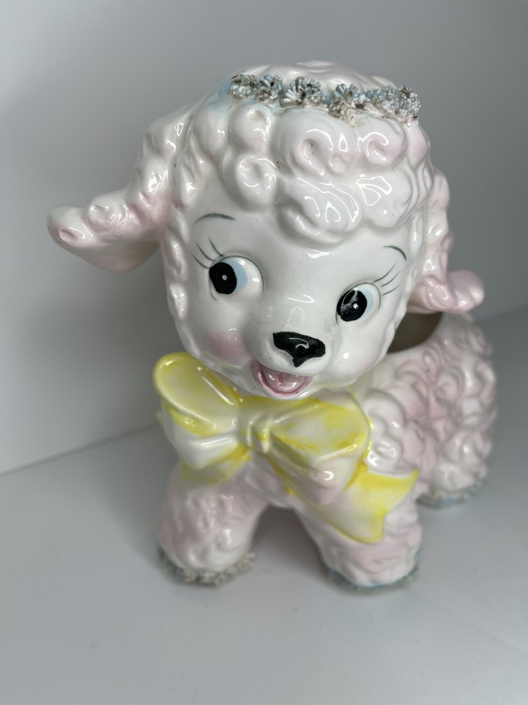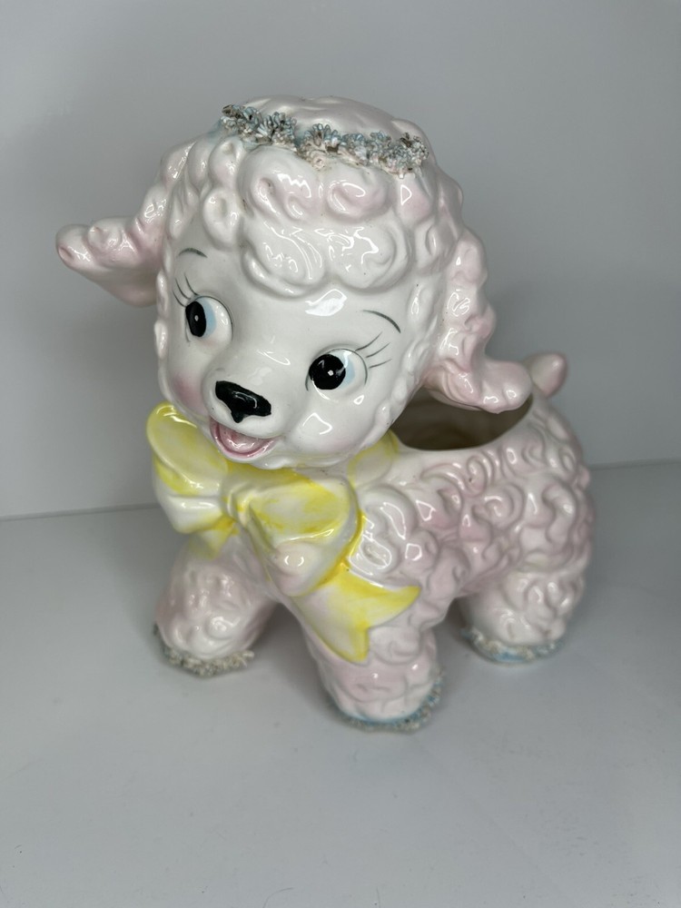 Vintage Relpo Lamb Planter 1961 Samson Import Spaghetti Ceramic Pink Lamb Japan In used condition