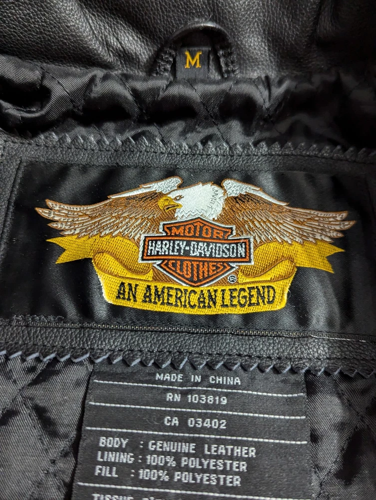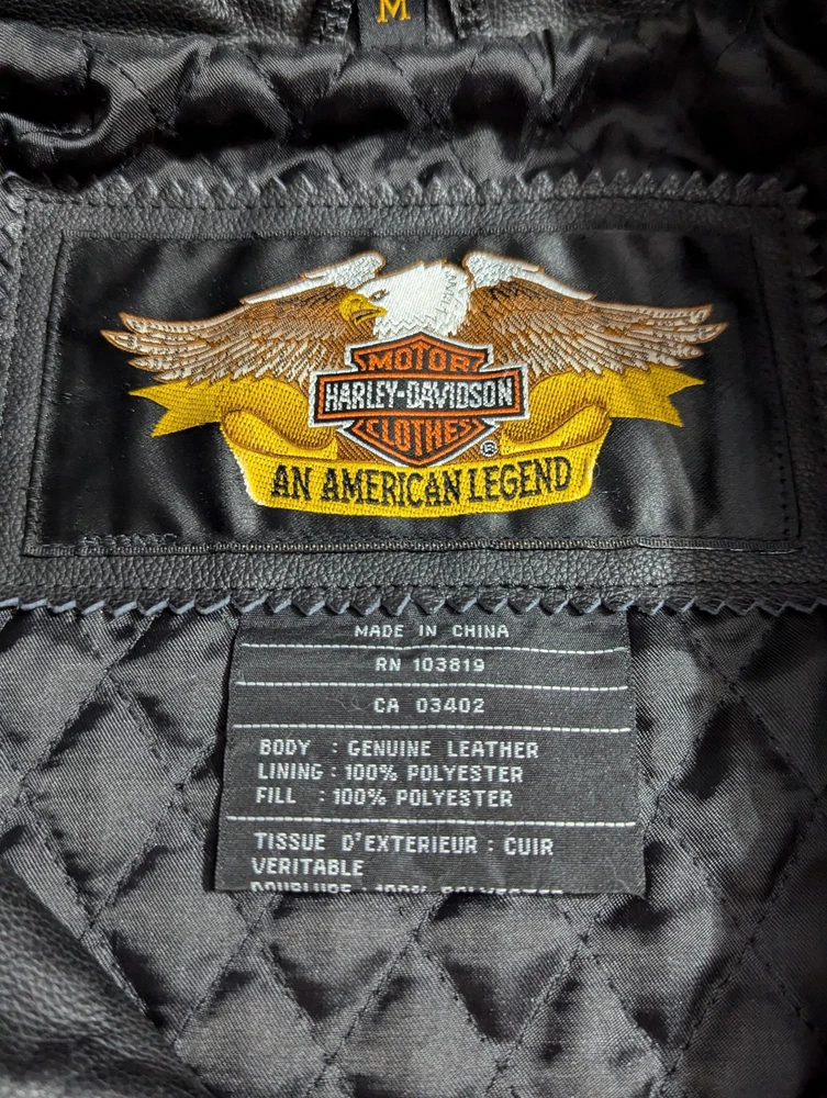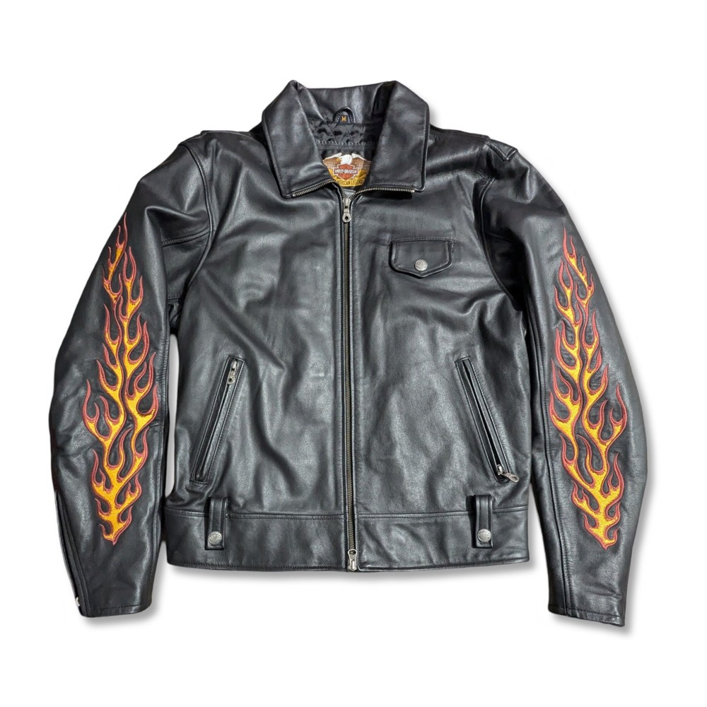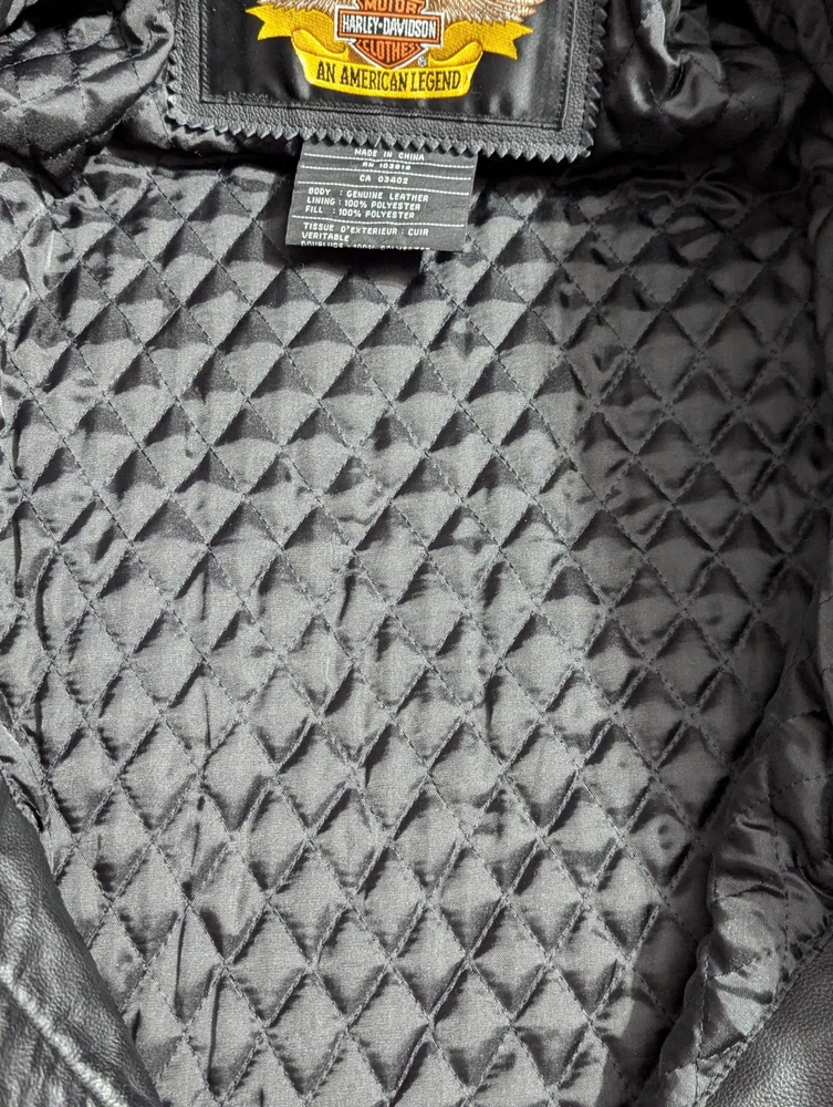 This jacket is extremely clean. It was reported to have been purchased new, and left in a closet for years basically. It is definitely in like new condition. Please refer to the photos regarding the overall condition. There may be a couple very minor dings in the leather, but nothing noticeable really, and while photographing the jacket, nothing worth picturing really. Armpit to armpit: 22" Collar to bottom: 26" I'm unsure as to the exact year of this jacket, but have researched it slightly and believe it may be from the 90s - Y2K era, please research the era yourself if this is important to you. Please reach out if you have ANY additional questions. Thanks for looking, I will ship out quickly!