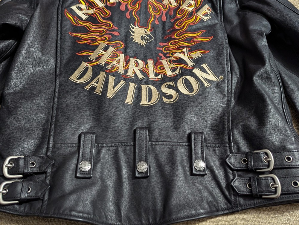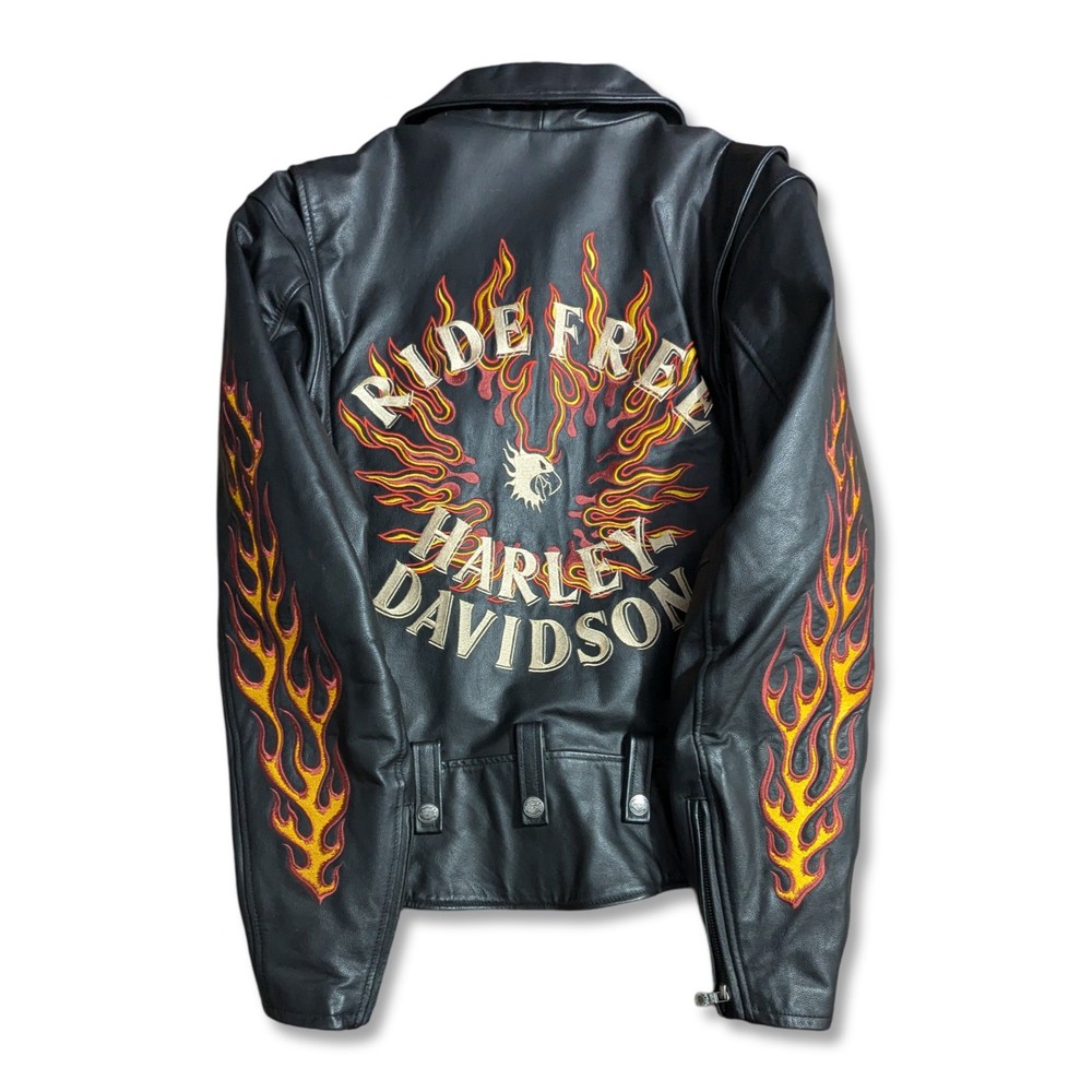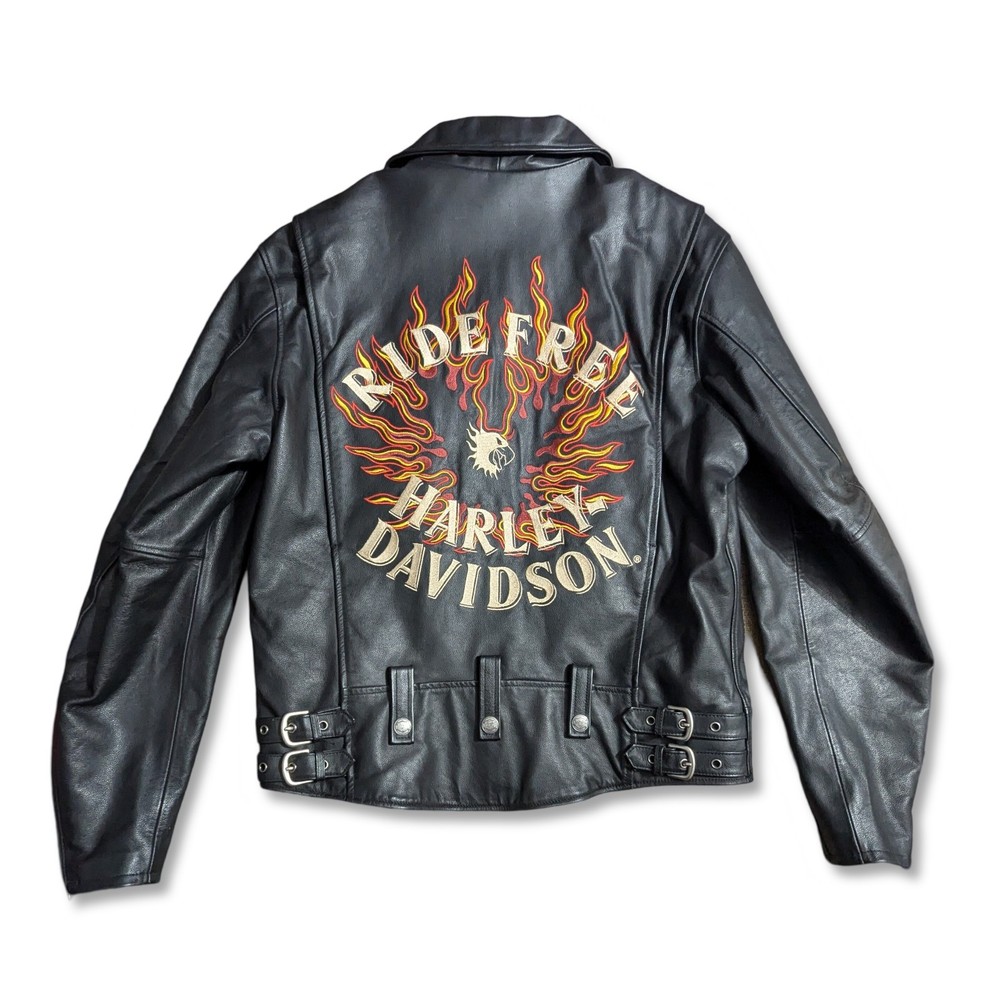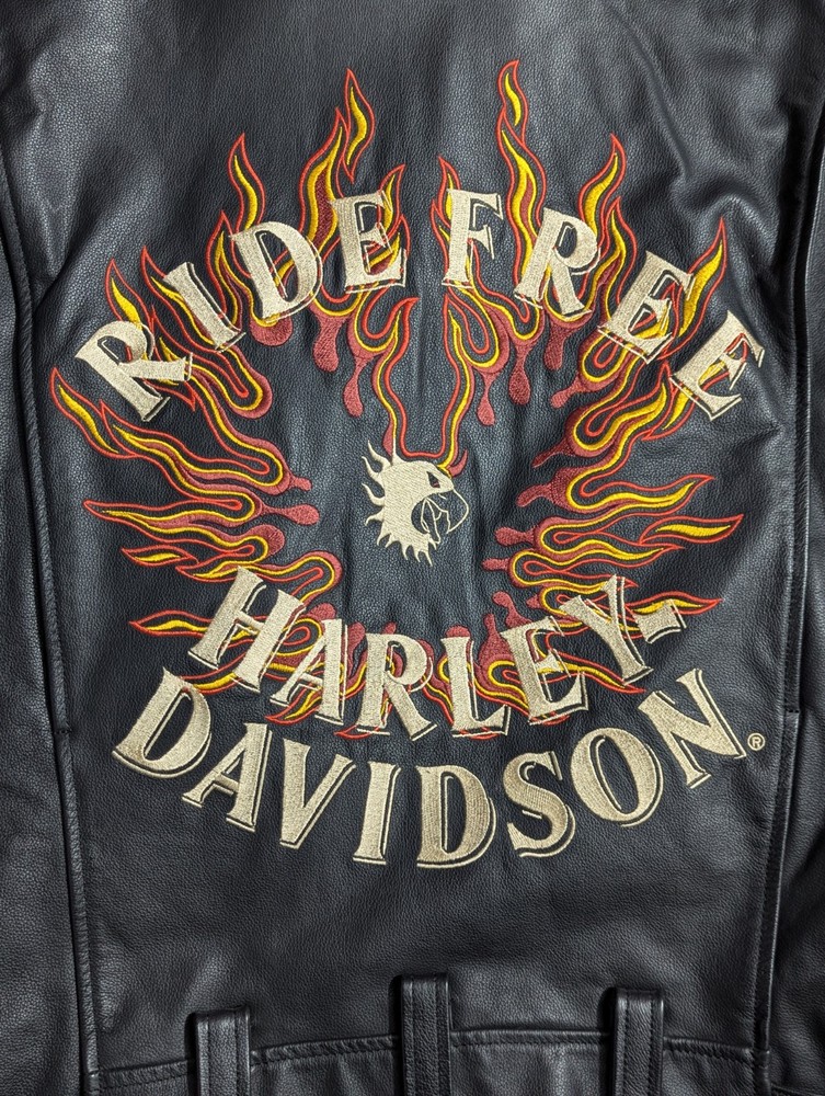 This jacket is extremely clean. It was reported to have been purchased new, and left in a closet for years basically. It is definitely in like new condition. Please refer to the photos regarding the overall condition. There may be a couple very minor dings in the leather, but nothing noticeable really, and while photographing the jacket, nothing worth picturing really. Armpit to armpit: 22" Collar to bottom: 26" I'm unsure as to the exact year of this jacket, but have researched it slightly and believe it may be from the 90s - Y2K era, please research the era yourself if this is important to you. Please reach out if you have ANY additional questions. Thanks for looking, I will ship out quickly!