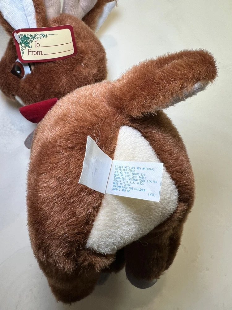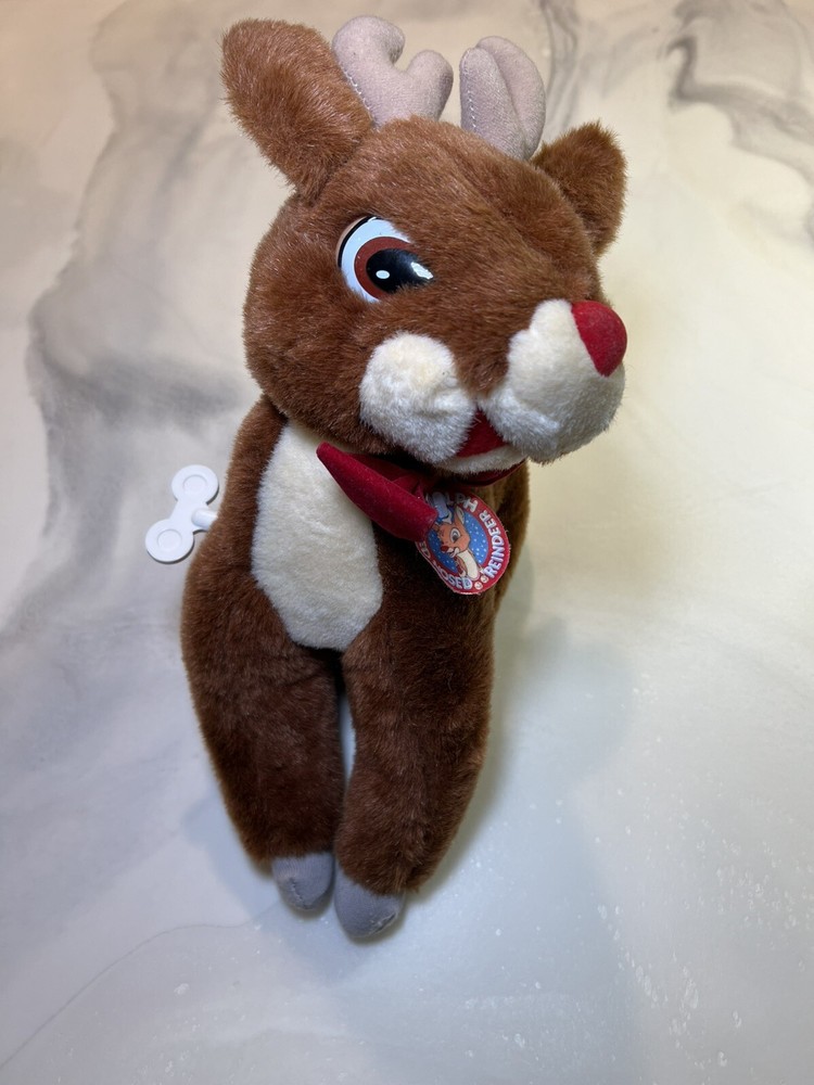 Rare vintage Rudolph Musical Plush Working music box Posable legs Music box plays “Rudolph the red nosed…” instrumental song and the head moves back and forth as the song plays. Classic Christmas decorative plush