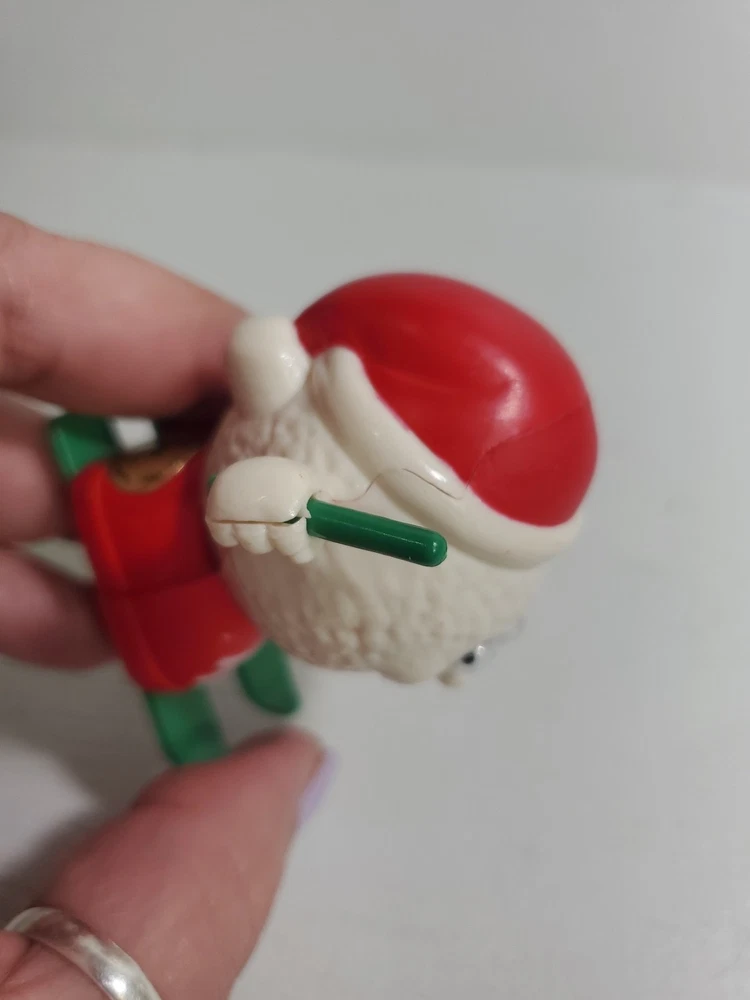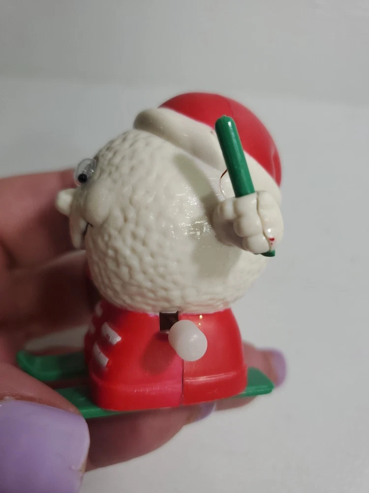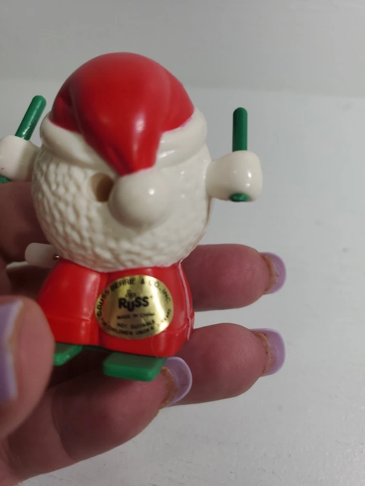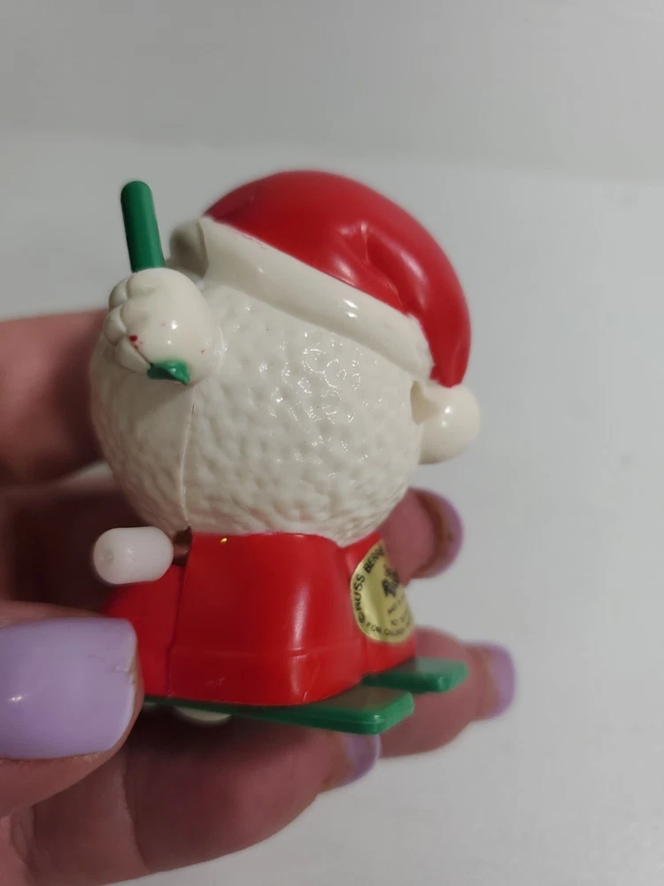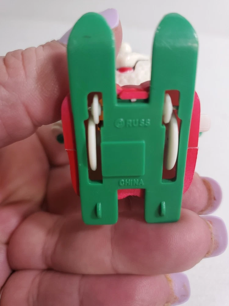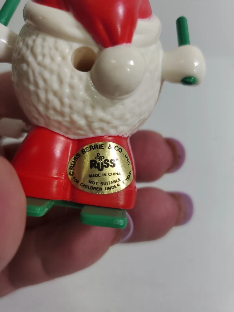 The product is a vintage Russ Berrie & Co 1980s wind-up skiing snowball figurine. This small, multicolor plastic collectible features an all-over pattern with a skiing snowball subject, perfect for Christmas decorations. Made in 1985, this original wind-up figure from the late 20th century holds a nostalgic charm and is a rare find with its working condition and sticker intact. The Russ brand adds to its appeal as a sought-after item for collectors of 1980s holiday memorabilia. Estate treasure sold as found. Item shows minor wear consistent with normal use and age. PLEASE CHECK PICTURES CAREFULLY FOR COMPLETE CONDITION DETAILS. PLEASE DON'T BE AFRAID TO MAKE OFFERS!πππ All items are pre-owned unlees stated otherwise and sold as is . I will point out any noticed flaws in description but please check pictures carefully. All items are hand picked for their unique style, beauty or usefulness. We have a smoke free home but we do have pets. Don't worry they don't smoke either.π. I want you to love your purchases and get exactly what you are expecting so please check pictures for condition detail. Remember lots of these items are rescued from estate or rummage sale so I can't Guarantee what environment they previously lived in. If you have any questions please message me prior to purchase. Thank you for looking and for shopping resale. ππβ»οΈReuse , Recycle, Repurpose