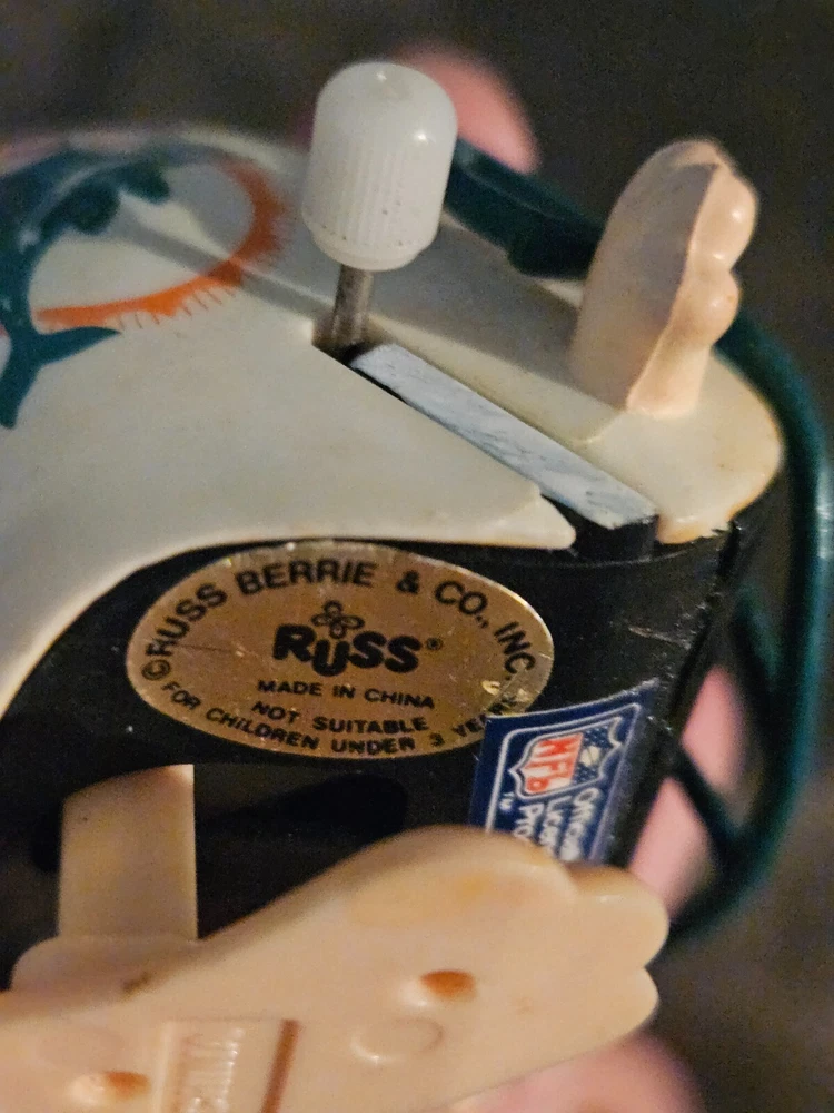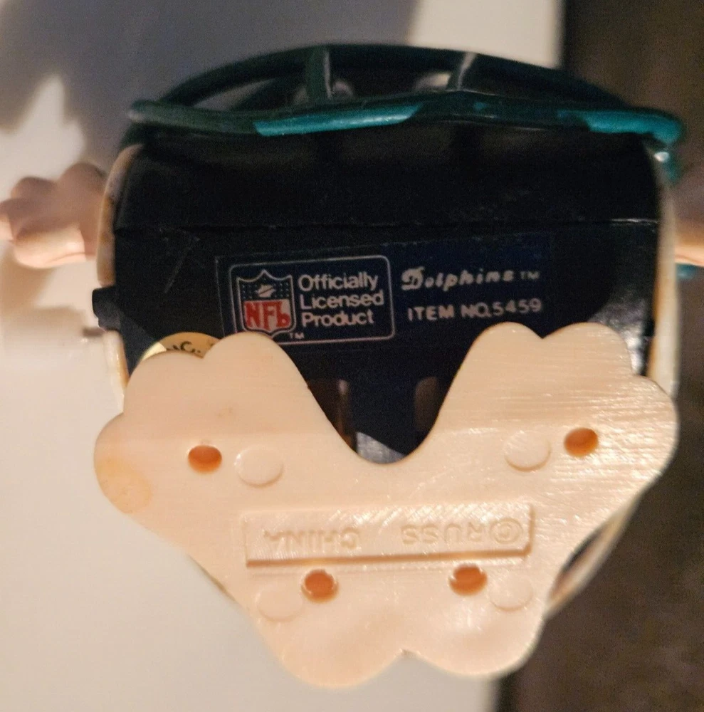 The wind up mechanism no longer works. Still a great desk of shelf piece for any Vintage Miami Dolphins Collector See pictures for details and exact condition. Please reach out to my regarding any questions on the item From a true Fin Fan's collection New Dolphins items listed every week Check our other listings! We combine shipping. FINS UP!! eBay's encouraged AI description: This vintage Russ Berrie & Co Miami Dolphins Jiggler Wind Up Toy is perfect for any fan of the National Football League (NFL). The toy is designed with the team's colors of multi-color and features the team's logo. It is officially licensed, making it a great addition to any fan's collection. This toy is perfect for regular season games and is a great way to show your support for the Miami Dolphins. The product is a toy and is not working. However, it is still a great addition to any collection. Get your hands on this vintage toy today and add it to your sports memorabilia and fan shop collection.