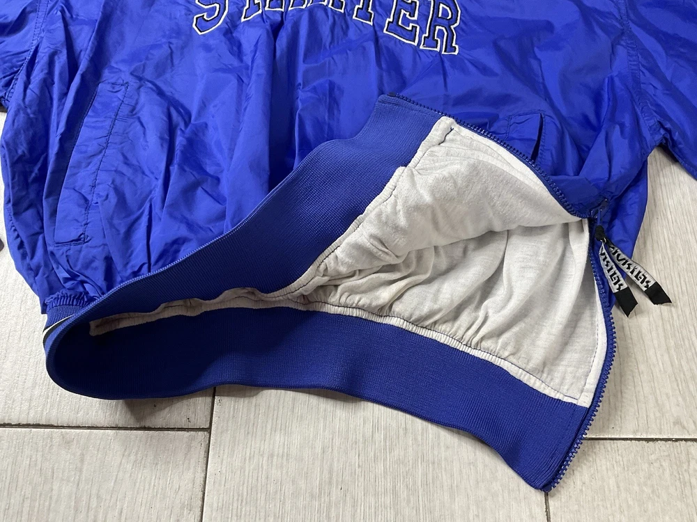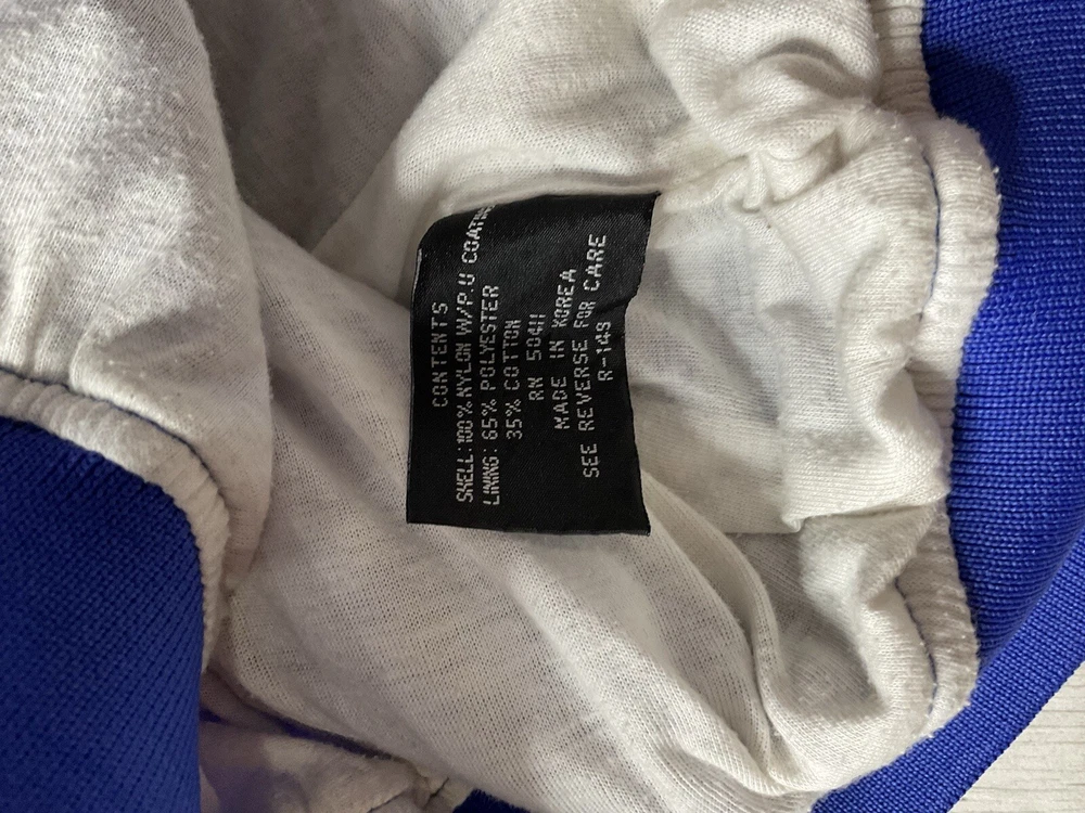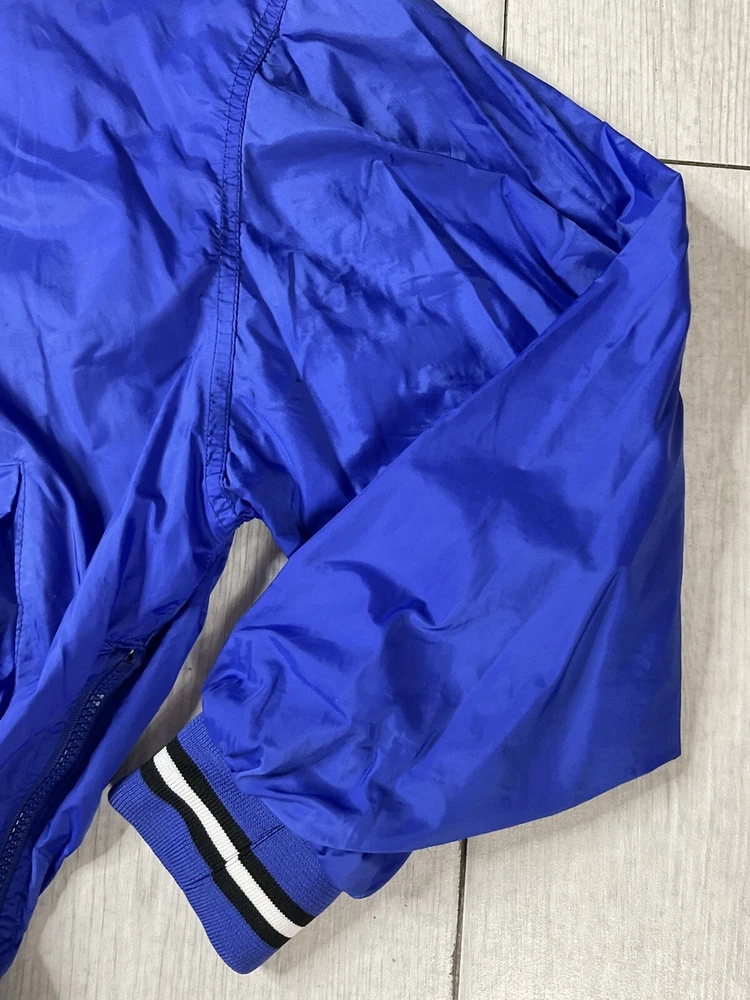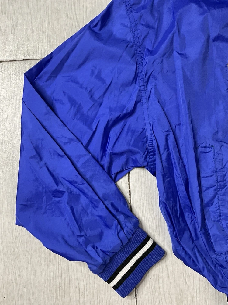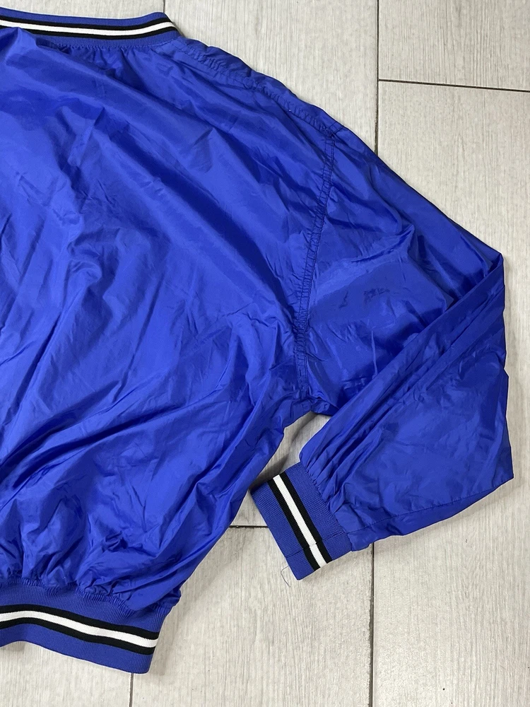 Windbreaker is used/preowned, is blue in color, is a men’s size large and has some signs of wear and usage. Inside lining has signs of wear and usage. Overall windbreaker is in good cosmetic condition all around. Wind breaker has a 1/4 zipper on the left side, has outside pockets and the logo on front side is embroidered. Please enlarge all images for more details and feel free to contact us if you have any questions or would like additional images, thank you very much for looking! Shipped USPS Mail Shipped eBay’s International Standard Delivery Program