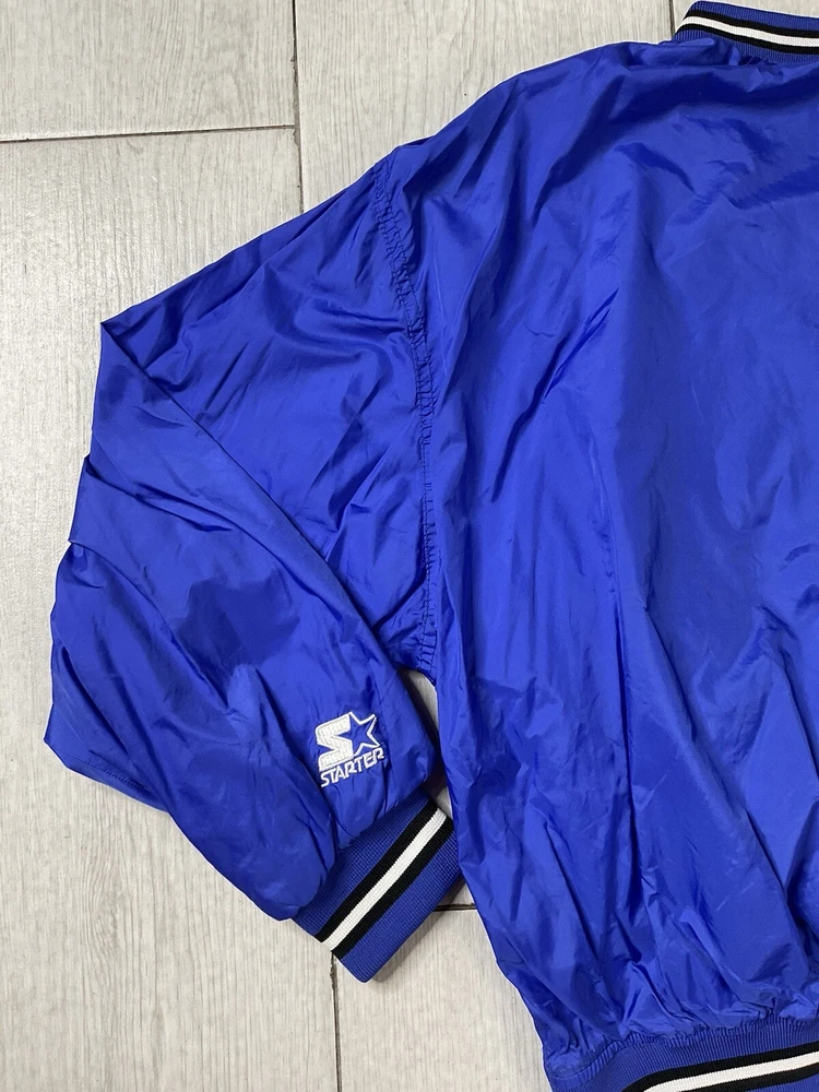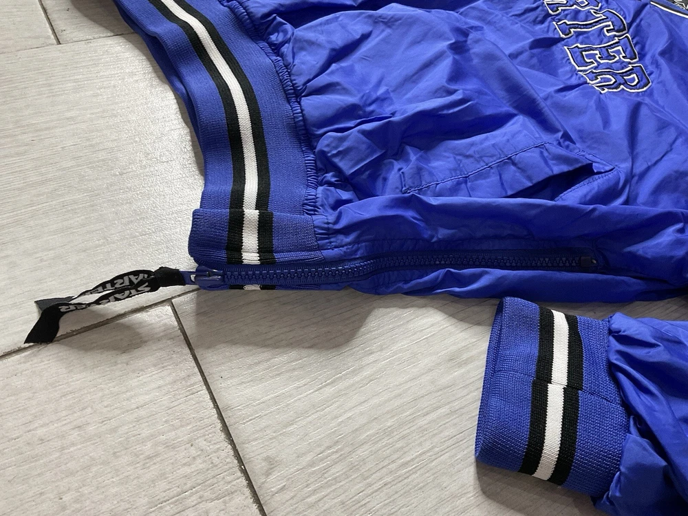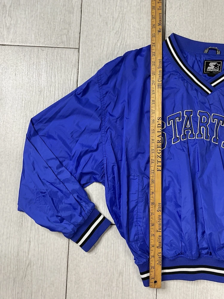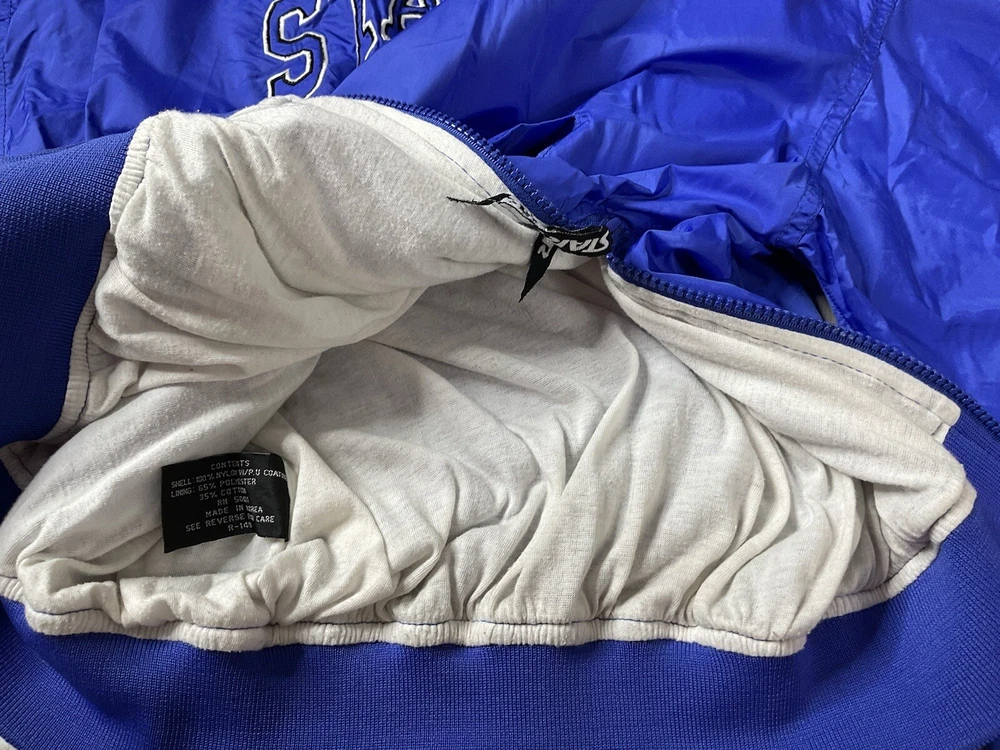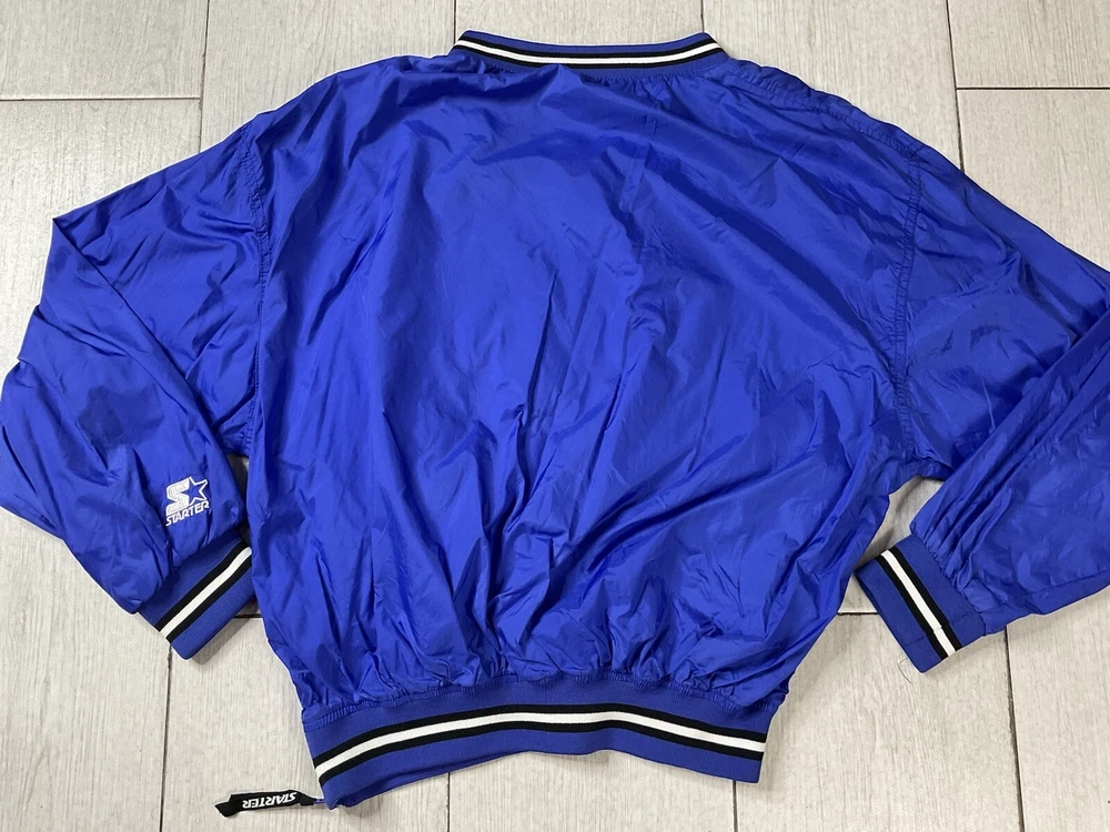 Windbreaker is used/preowned, is blue in color, is a men’s size large and has some signs of wear and usage. Inside lining has signs of wear and usage. Overall windbreaker is in good cosmetic condition all around. Wind breaker has a 1/4 zipper on the left side, has outside pockets and the logo on front side is embroidered. Please enlarge all images for more details and feel free to contact us if you have any questions or would like additional images, thank you very much for looking! Shipped USPS Mail Shipped eBay’s International Standard Delivery Program