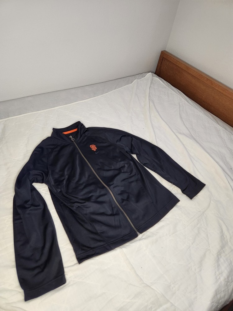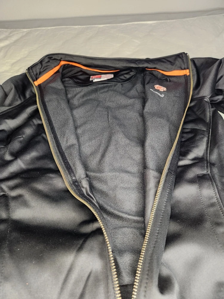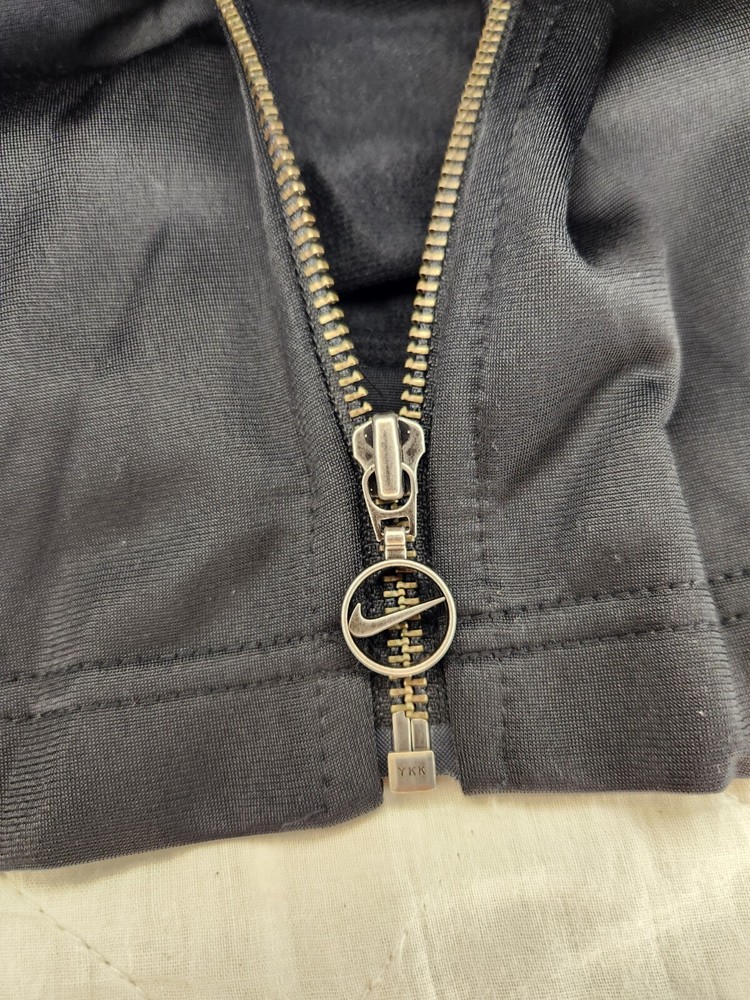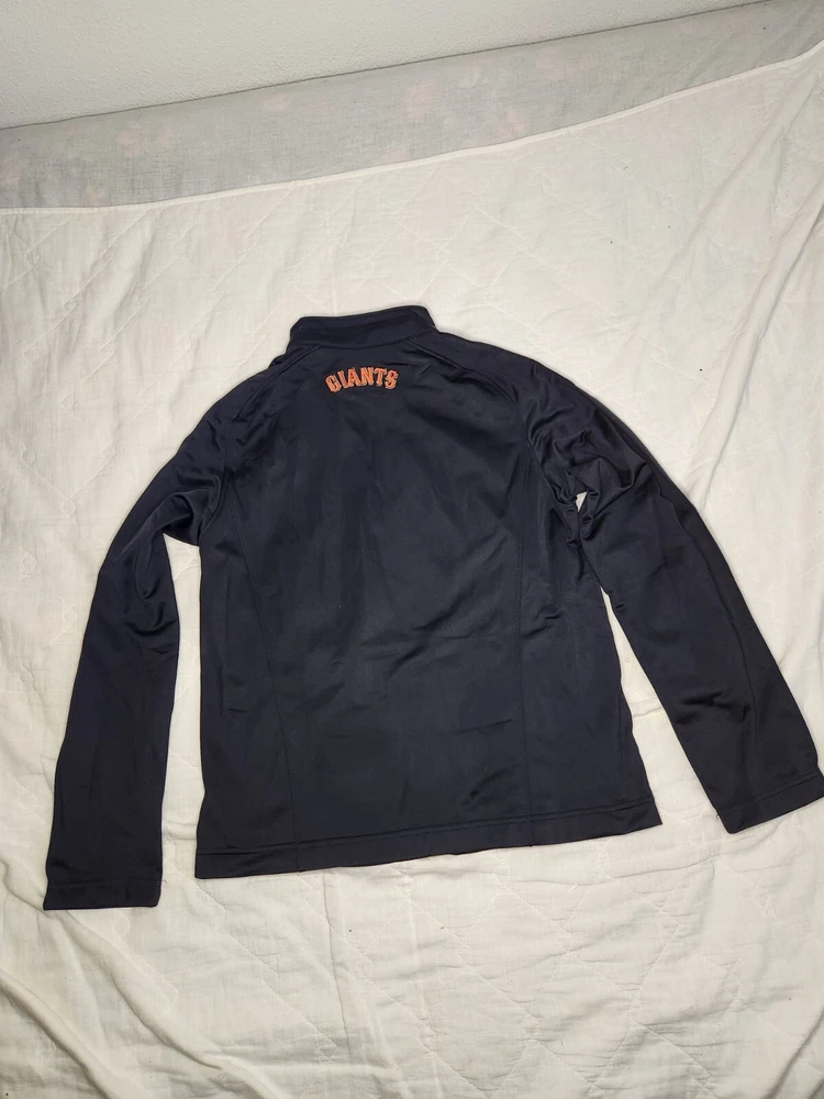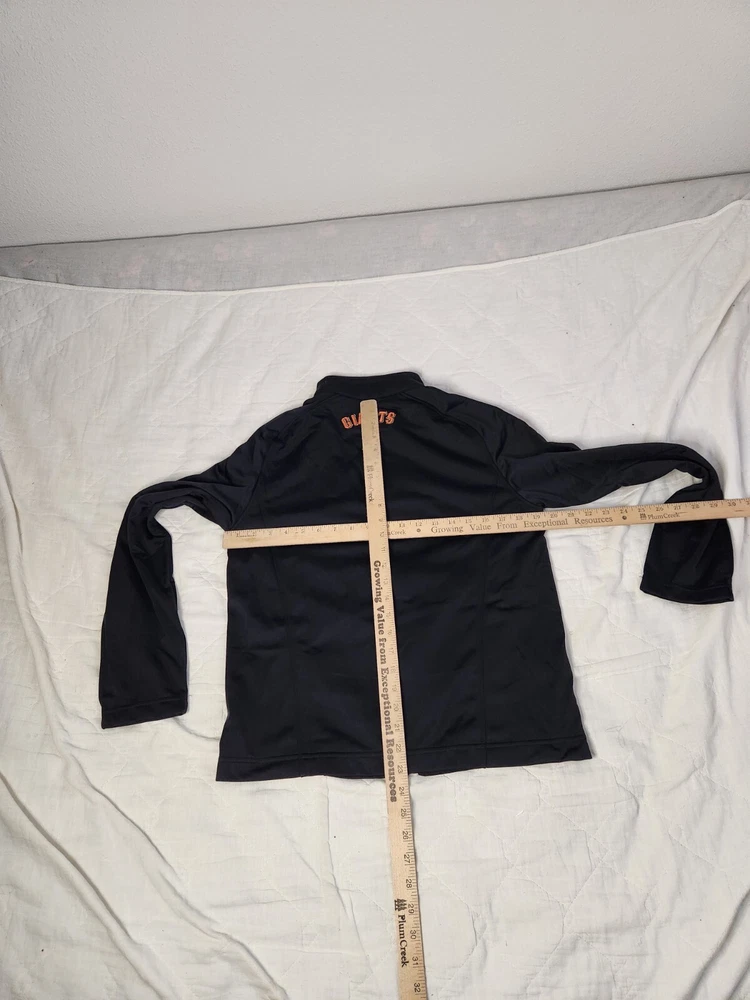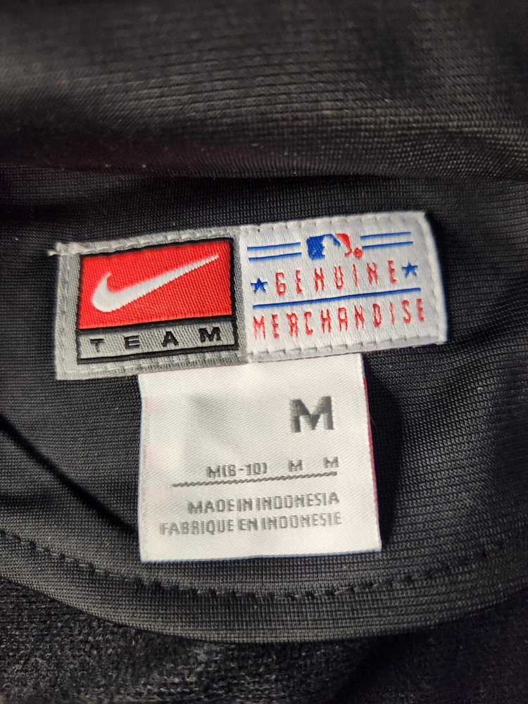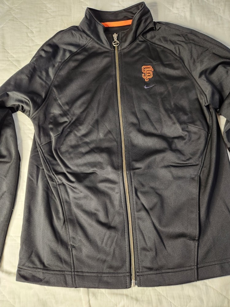 Elevate your casual style with this vintage black Nike jacket. Perfect for travel, workwear, or casual outings, this mid-length jacket with long sleeves features a full zip closure and a solid pattern. The lightweight and breathable microfiber fabric is wind-resistant, making it suitable for all seasons. With pockets to store your essentials, this limited edition jacket is perfect for women who love a retro, sports, or hipster style. The jacket is machine washable and fits true to size. Embrace the 90s and show off your love for the San Francisco Giants with this Nike Team jacket.