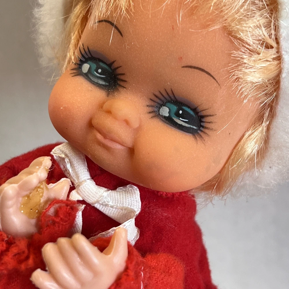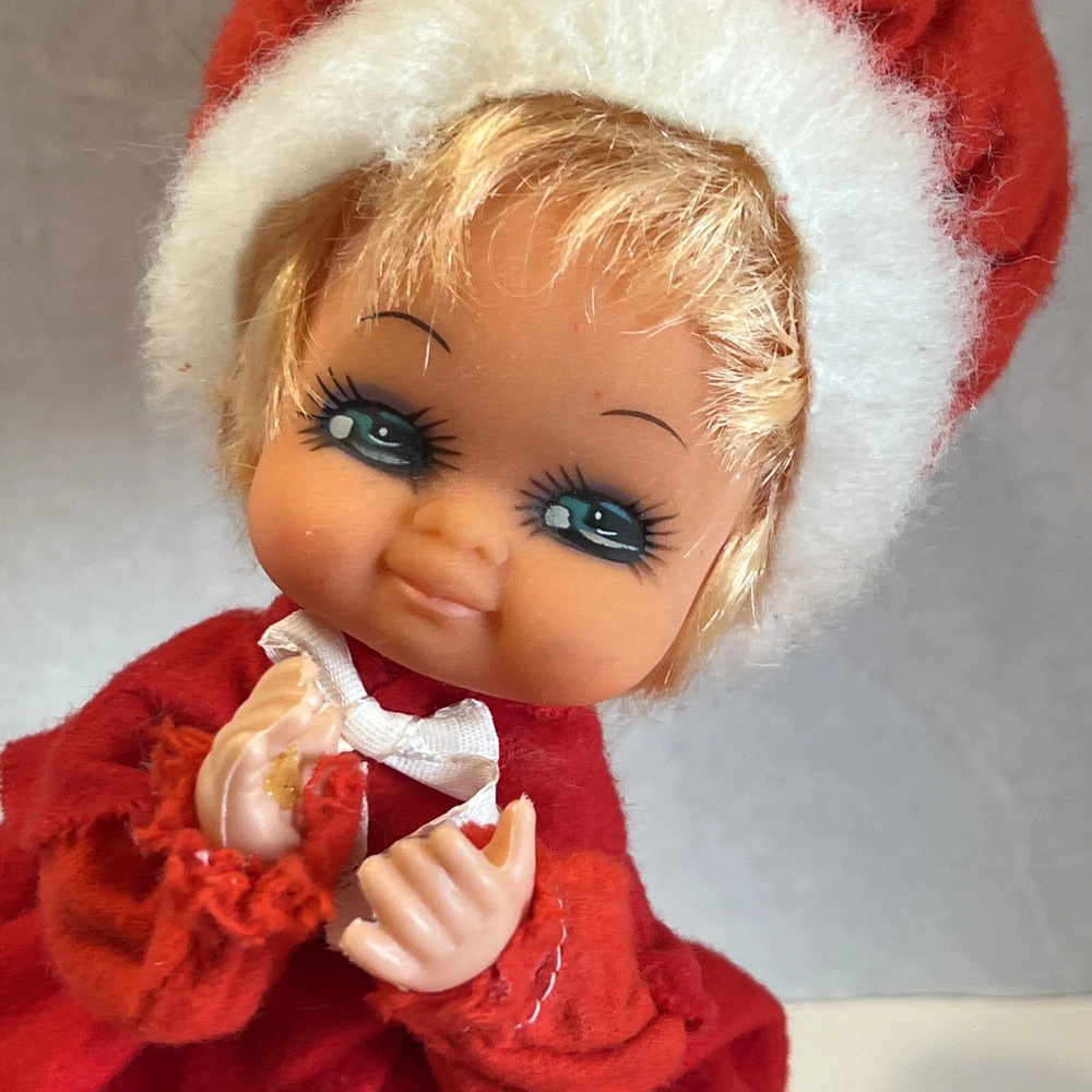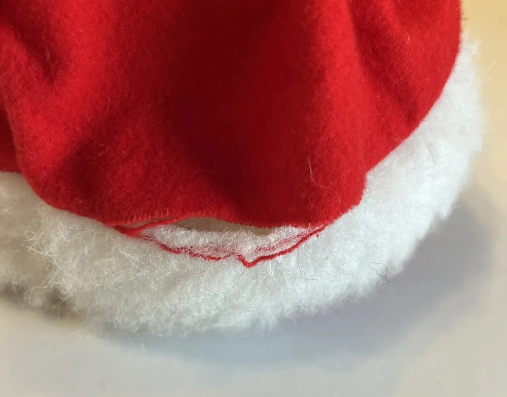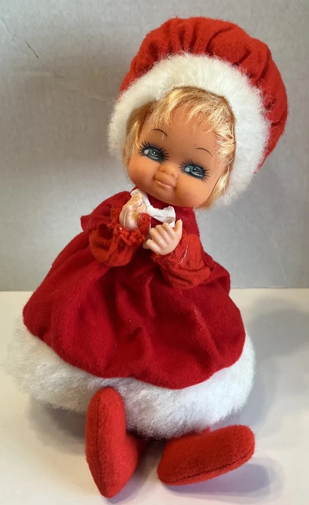 Vintage Christmas Sankyo Wind up Musical Moving Mrs Claus Figure. Plays “Jingle All Way” as the figure moves at the waist area. Sits about 9” in height. Music box works great as does movement of the dolls upper torso. Lower part of doll doesn’t move - designed to sit on edge of shelf or any flat surface. It appears the doll originally held something in its hand because I can see glue residue on its hand. This is a used vintage item with signs of age & use - marks on plastic face, glue residue inside one hand & a stitch has come loose on the back of her dress where it meets the white fur like accent.