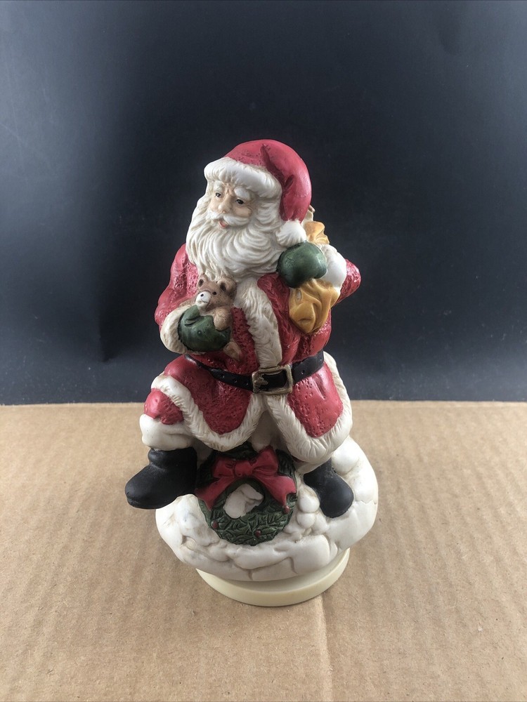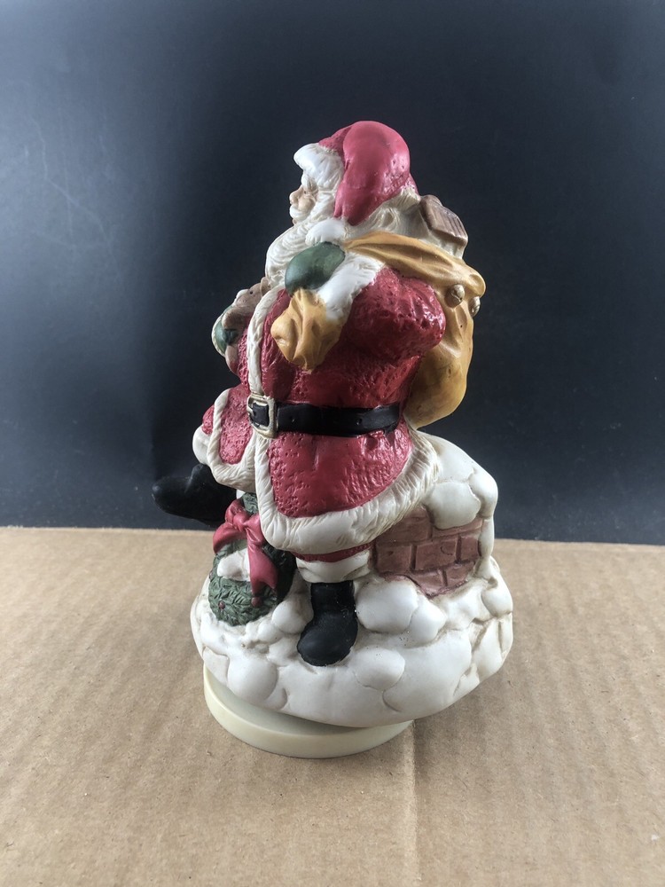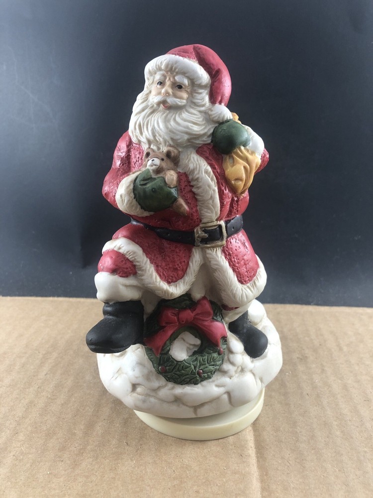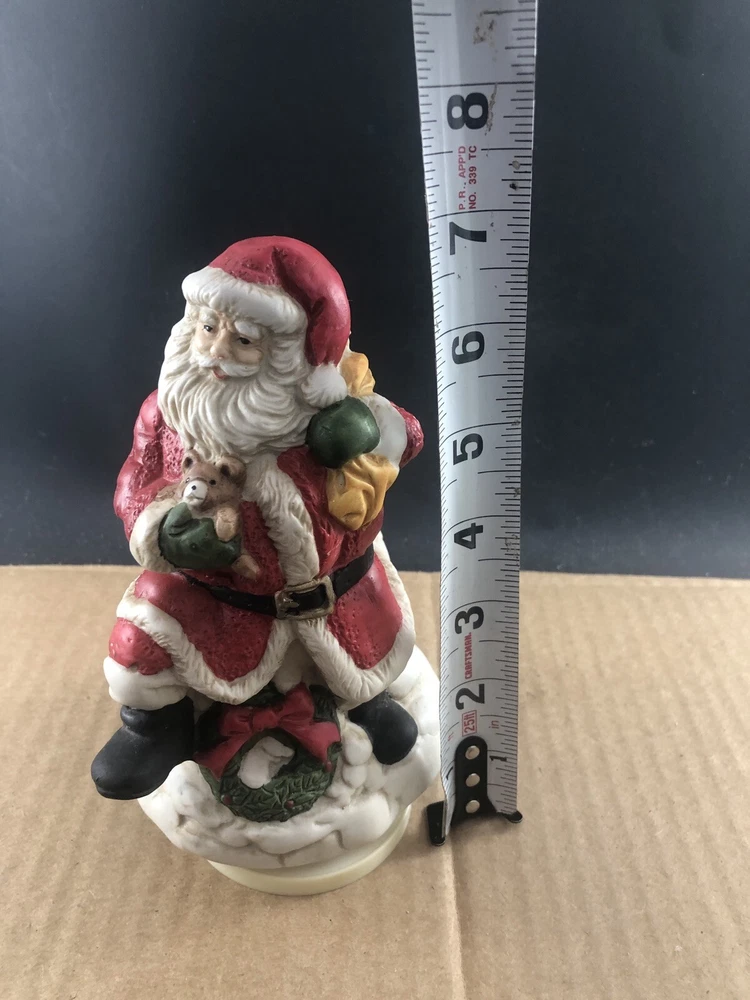 This adorable vintage Santa music box is a holiday gem! It plays "Here Comes Santa Claus" perfectly with its charming wind-up mechanism. No chips or damage—just pure nostalgic joy. A must-have for any Christmas collector!