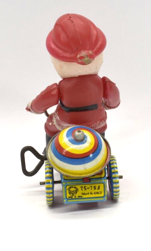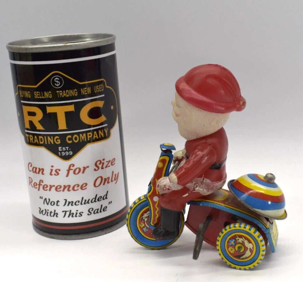 Vintage Santa Claus Cycle Tin Wind Up Toy Christmas Holiday Collectible Japan Works as should, runs and bell rings. This version does not have the balloon. Please see all photos for complete details. Condition Notes: Great condition for it's age. Box a little worn. Please Message us with any questions. We will reply within a few hours. All items ship from us RTC Trading Company / Located 26764 West Virginia. We offer 30 free returns on all items. No risk full refund if it's our mistake or problems. Other wise we do not refund shipping cost. Thank you for viewing our Ebay listings.