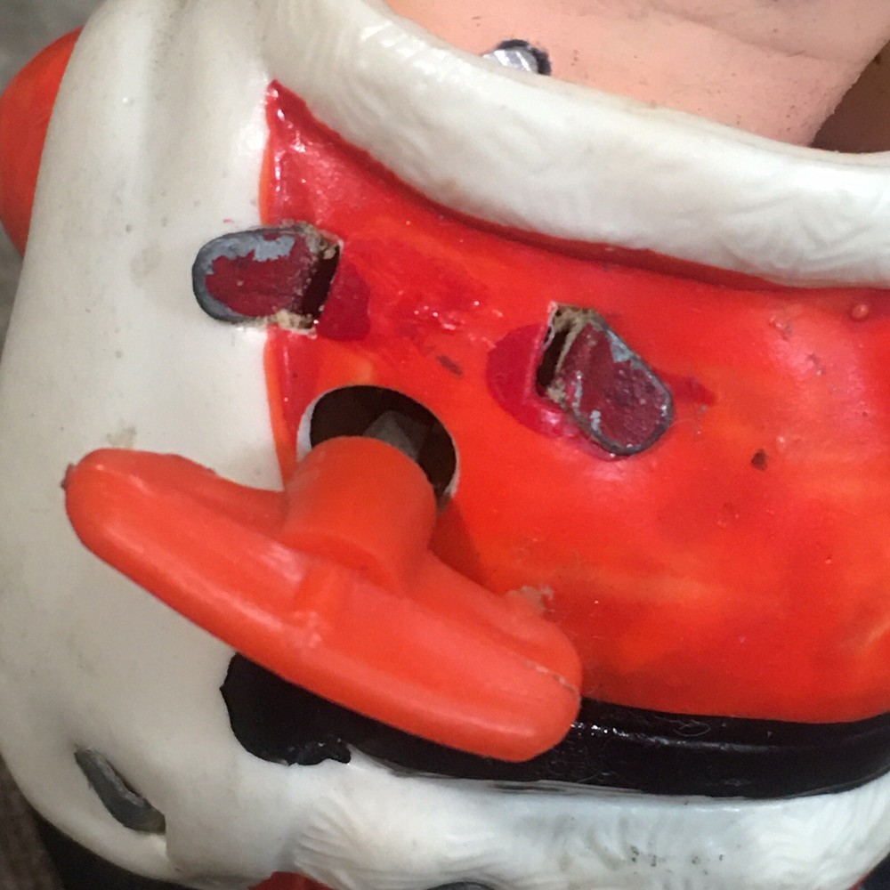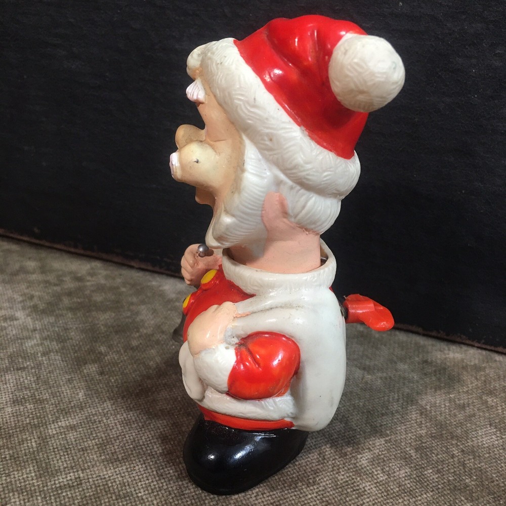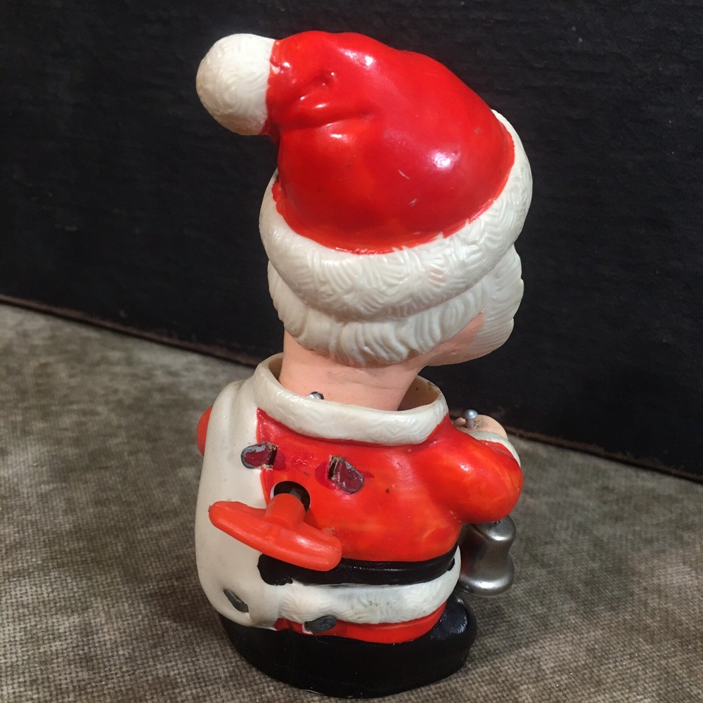 Please be sure to check out all my other listings where you’ll find Retro and Tru, vintage clothing, Levi’s, footwear, ephemera, tiki, Hawaii, surf, automotive, gas, oil, soda, advertising, mid century, MCM, and lots of other cool old junk Vintage Santa Clause Christmas wind up head Nodder. This wonderful little wind up is fresh out of the state. It does wind up in his head does move but it’s a little bit slow since he hasn’t been operated in decades. So even though it does work I can’t guarantee his head will go bobbing as fast as you want. However with a little low it might. Overall the body is in pretty great condition without any major flaws. There are normal scuffs in a couple of marks from its life having been pre-owned for decades. Please look at photos carefully for the details.