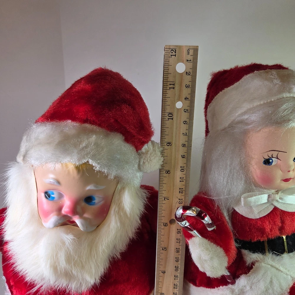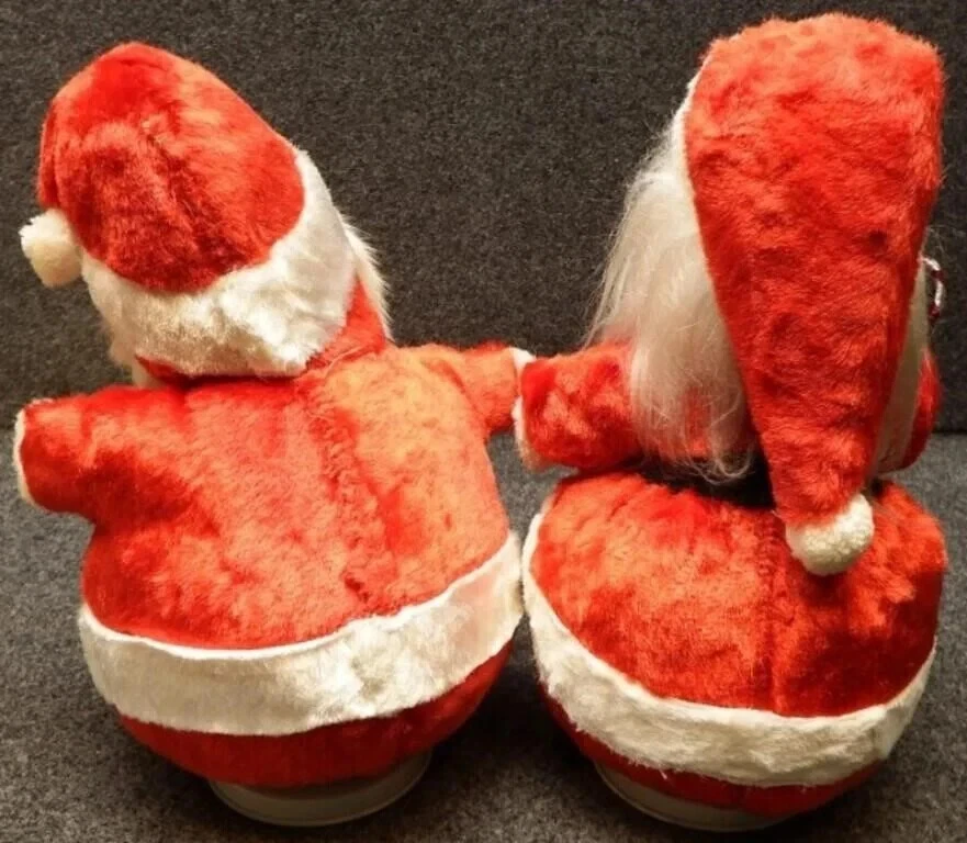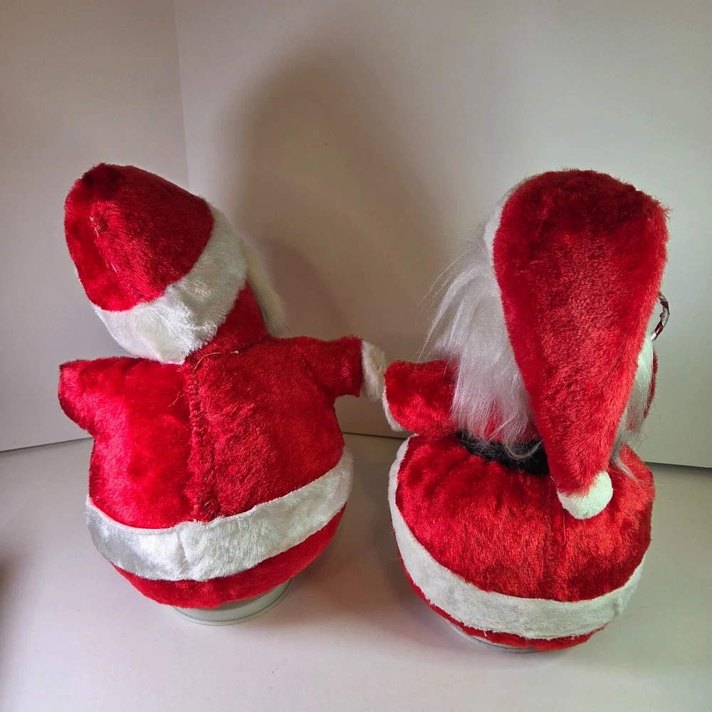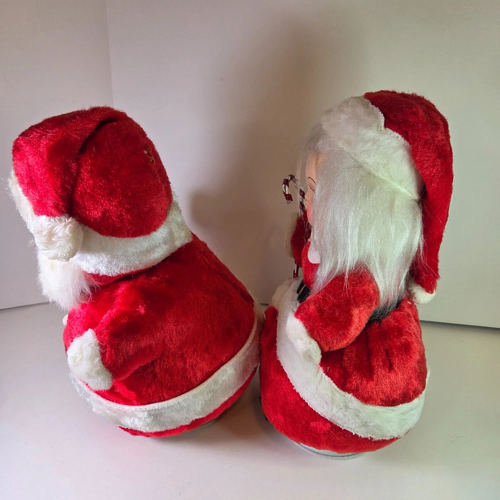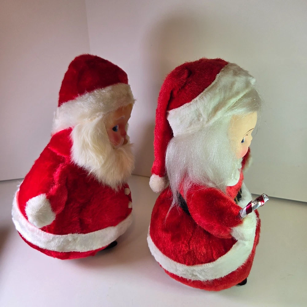The Vintage Santa & Mrs Claus Wind-up Musical Jingle Bells is a charming collectible figures that brings the spirit of Christmas to life with its rotating and musical features. Both standing at 11.5 inches tall, these medium-sized figurine are crafted in a classic red and white color scheme, making it a festive addition to any holiday display. The wind-up mechanism ensures that the jingle bells play a cheerful tune, adding to the overall ambiance of the Christmas season. Perfect for collectors or anyone looking to add a touch of nostalgia to their holiday decor, these Santa & Mrs Claus figurine are sure to bring joy and whimsy to any home. **The Santa figure does not play music or rotate. The Mrs Claus does work - please see pictures & video.