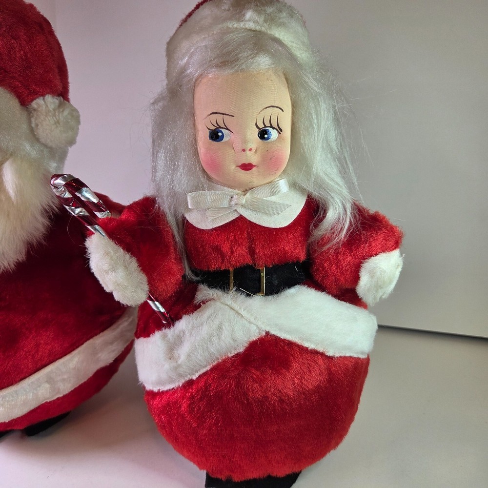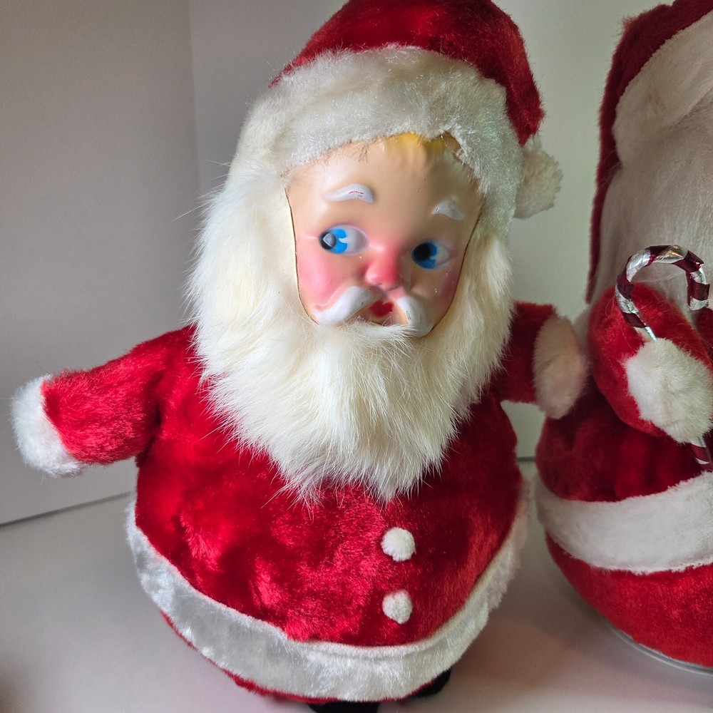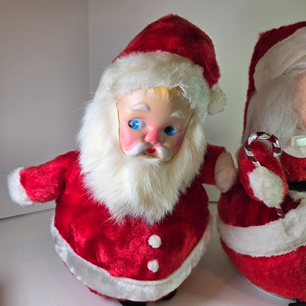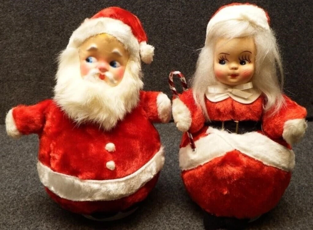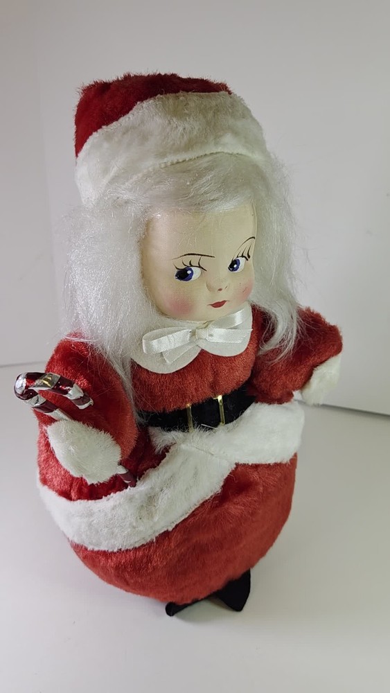The Vintage Santa & Mrs Claus Wind-up Musical Jingle Bells is a charming collectible figures that brings the spirit of Christmas to life with its rotating and musical features. Both standing at 11.5 inches tall, these medium-sized figurine are crafted in a classic red and white color scheme, making it a festive addition to any holiday display. The wind-up mechanism ensures that the jingle bells play a cheerful tune, adding to the overall ambiance of the Christmas season. Perfect for collectors or anyone looking to add a touch of nostalgia to their holiday decor, these Santa & Mrs Claus figurine are sure to bring joy and whimsy to any home. **The Santa figure does not play music or rotate. The Mrs Claus does work - please see pictures & video.