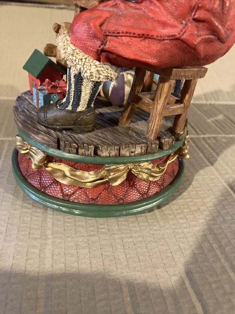 Vintage Santa Painting Toys Wind up “Have Yourself A Merry Lil Christmas”. In great shape. No flaws found other then dust. Works and sounds great. Assuming it from 1999 with sticker it has on bottom. 8” tall roughly 5” wide