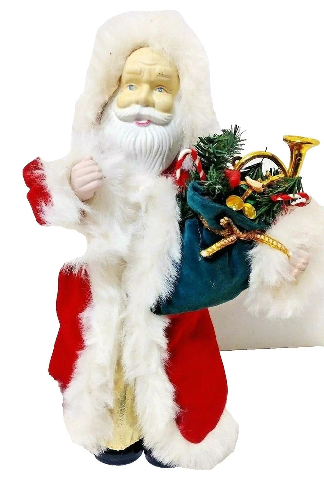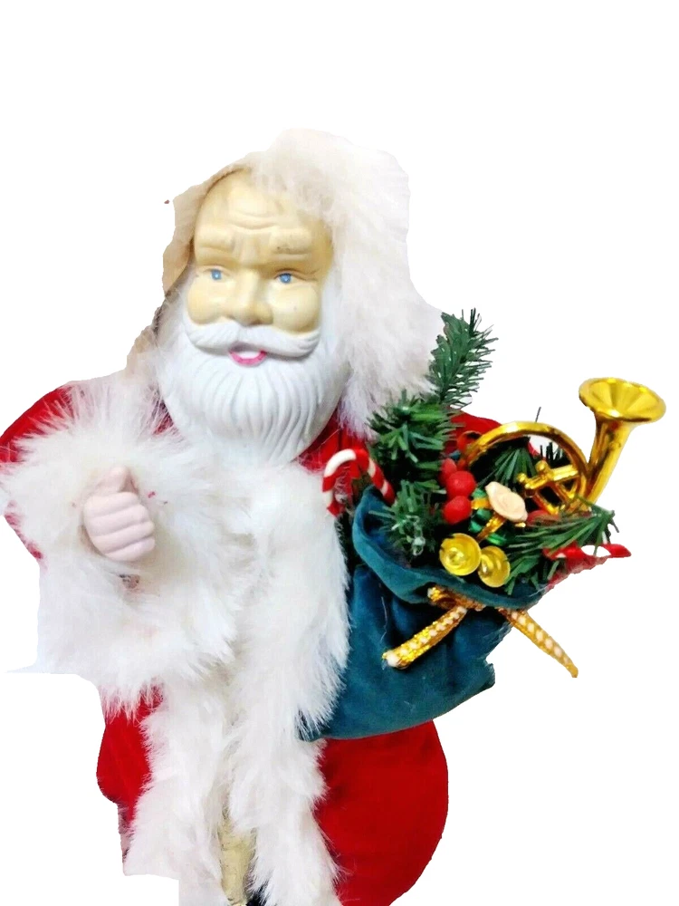 Plastic Face Wind Up Animated & Musical Plays "Santa Claus Is Coming To Town" 13 1/2" x 11 1/2" around waist H12-17-423 Questions welcomed