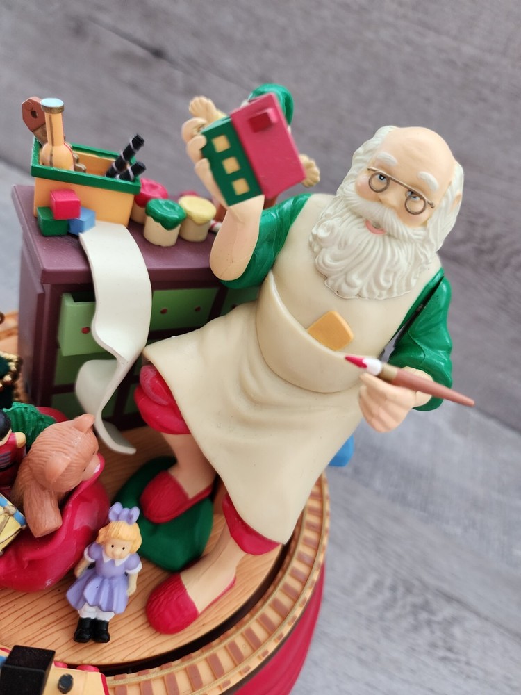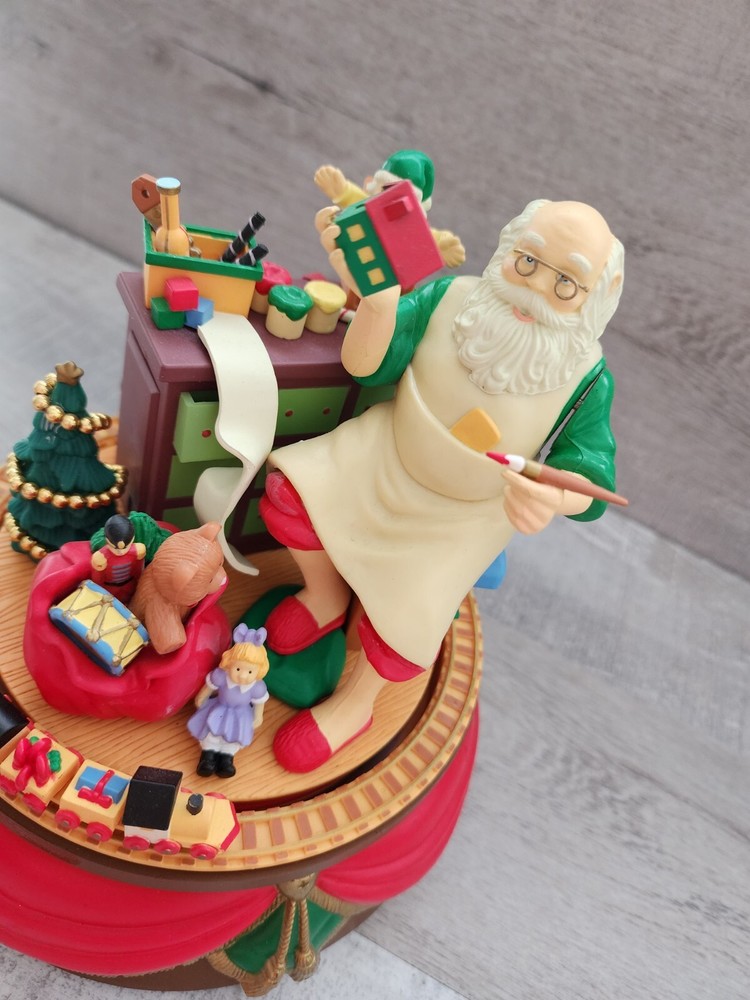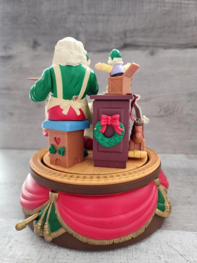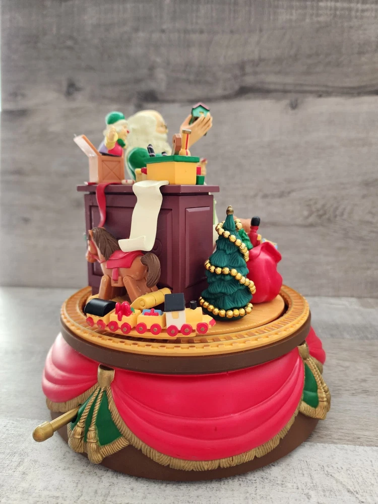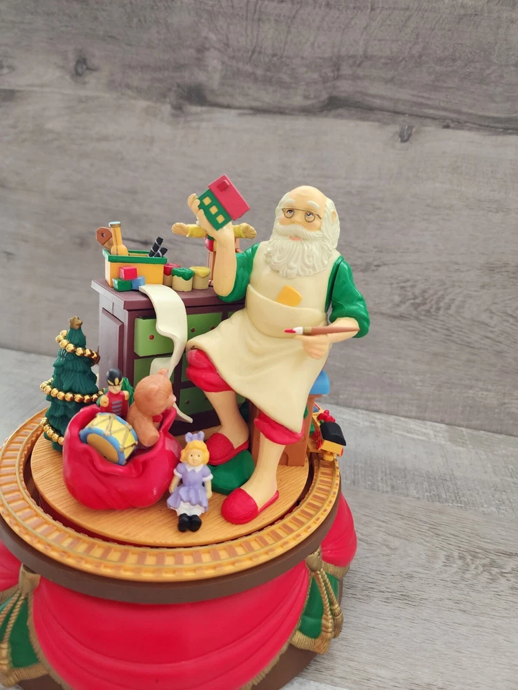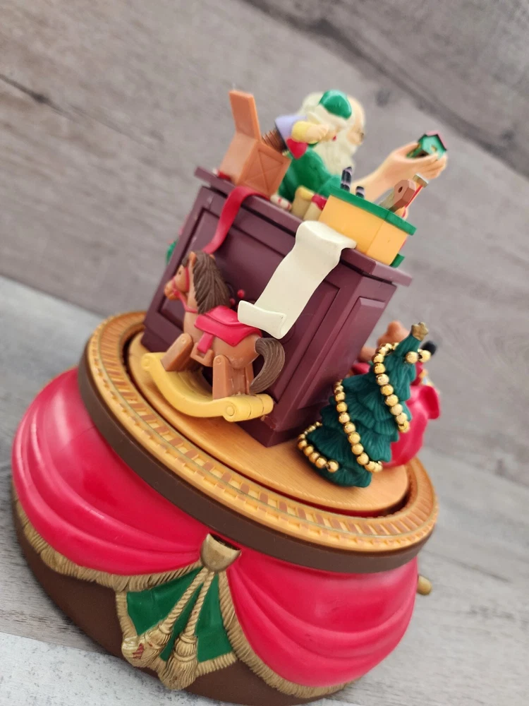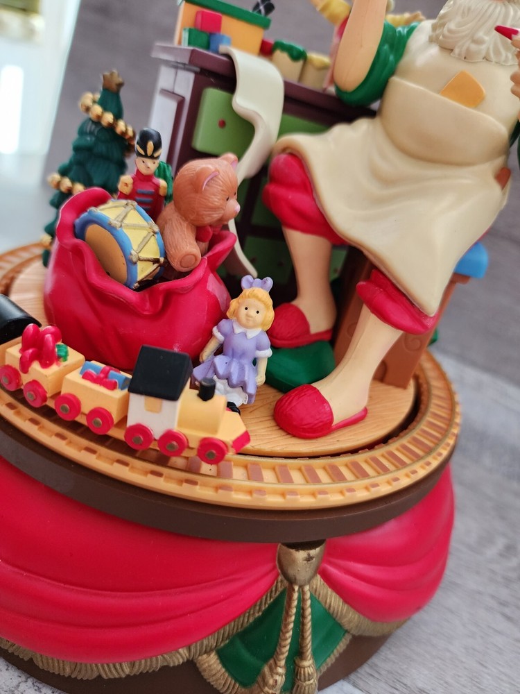 Vintage Santas Best Animated Music Box Christmas Santa Claus Wind Up Decor 1992. For your consideration is this vintage Enesco music box. While the original box is not included, the power supply cord will be (as applicable). I do my very best to identify any flaws but you need to review the photos very carefully to assess condition. These music boxes are very fragile and have many small pieces so it can be easy to miss flaws. One of the ribbons is missing on the back. For most items, I do combine shipping but for the amount of packing materials needed for these and to provide the safest shipment for these items, I cannot. I do have several available and hope you find one you find absolutely delightful!
