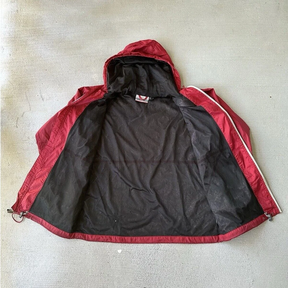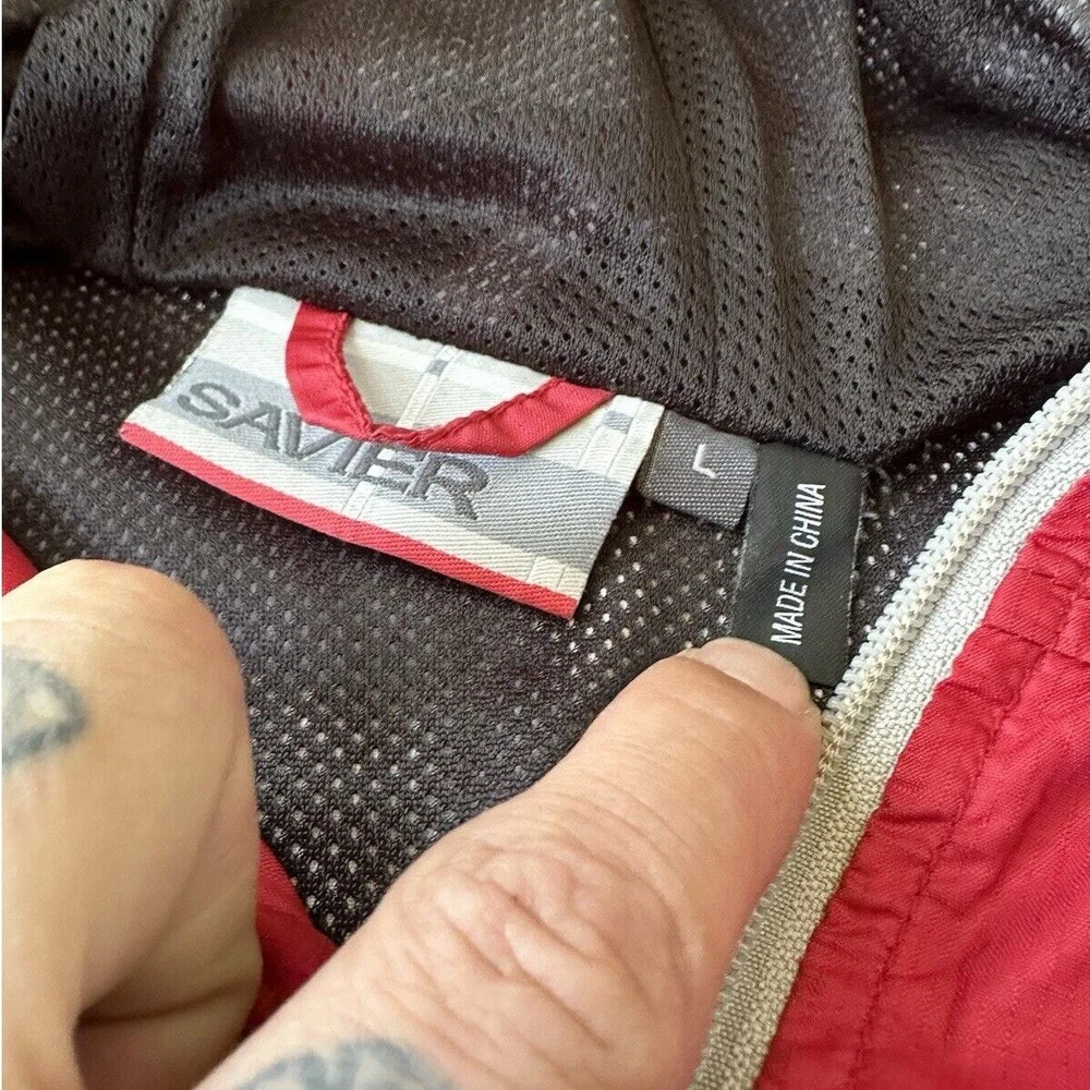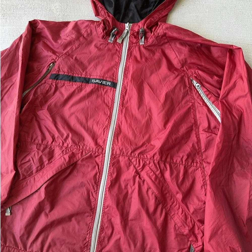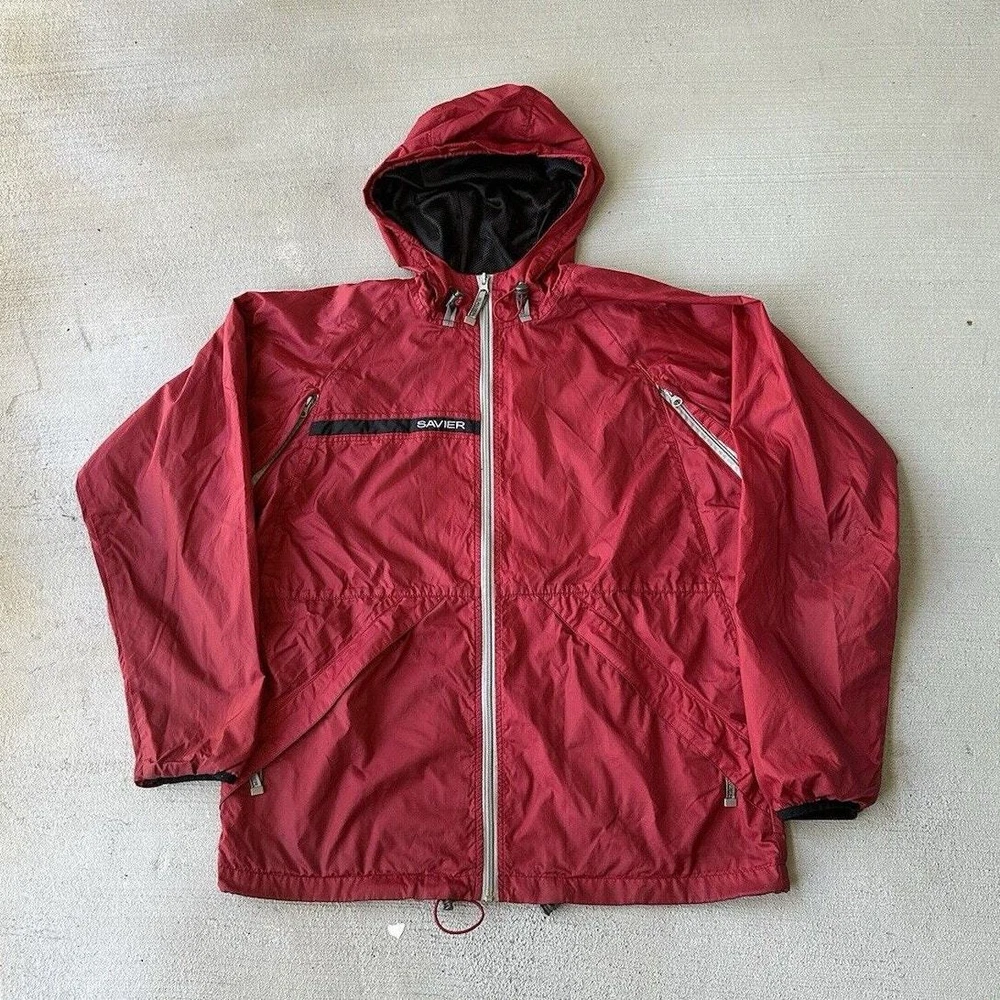 <![CDATA[<div>Vintage Savier Footwear Windbreaker Style Jacket Skate Y2K Mens Large Step back in time with this vintage red Savier windbreaker style jacket. Perfect for any occasion, this mid-length jacket features a zip closure and is made from softshell nylon fabric. The jacket is lined with nylon and has a polyester insulation material, making it suitable for all seasons. With its Y2K, extreme, 90s, and sports theme, this jacket is perfect for those who love to add a touch of nostalgia to their wardrobe. It has zipped pockets, is lightweight, and is wind-resistant, making it ideal for walking, school, or skateboarding. The jacket is a size L and has the Savier product line logo on the front.