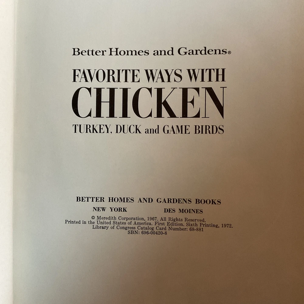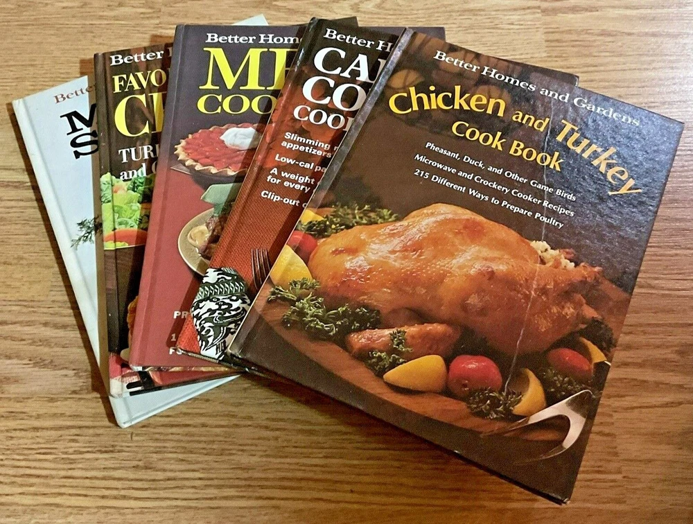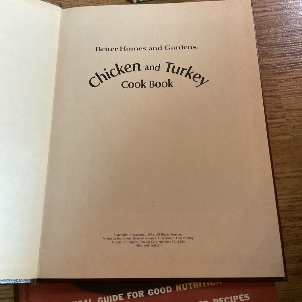 Vintage Set of Five Better Homes & Gardens Cookbooks. Menu Cookbook Copyright 1972, First Edition, Third Printing 1973 Favorite Ways With Chicken Copyright 1967, First Edition, Sixth Printing 1972 Meat Stretcher Cookbook Copyright 1974, First Edition, First Printing Calorie Counters Cookbook Copyright 1970, First Edition, Fourth Printing 1972 Chicken and Turkey Cookbook Copyright 1976, First Edition, First Printing See pictures as they are part of the description. I ship worldwide and combine shipping. Visit my store at olyvintage on eBay . Thanks for your business!