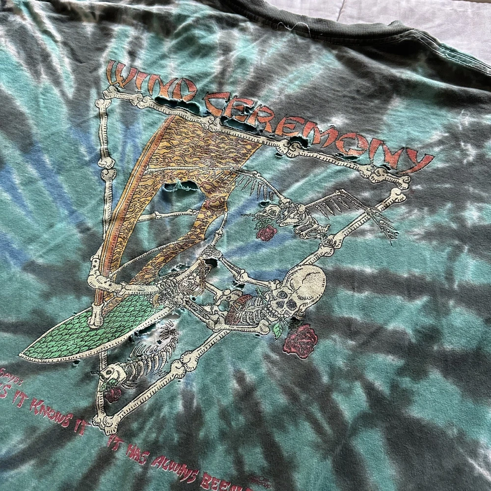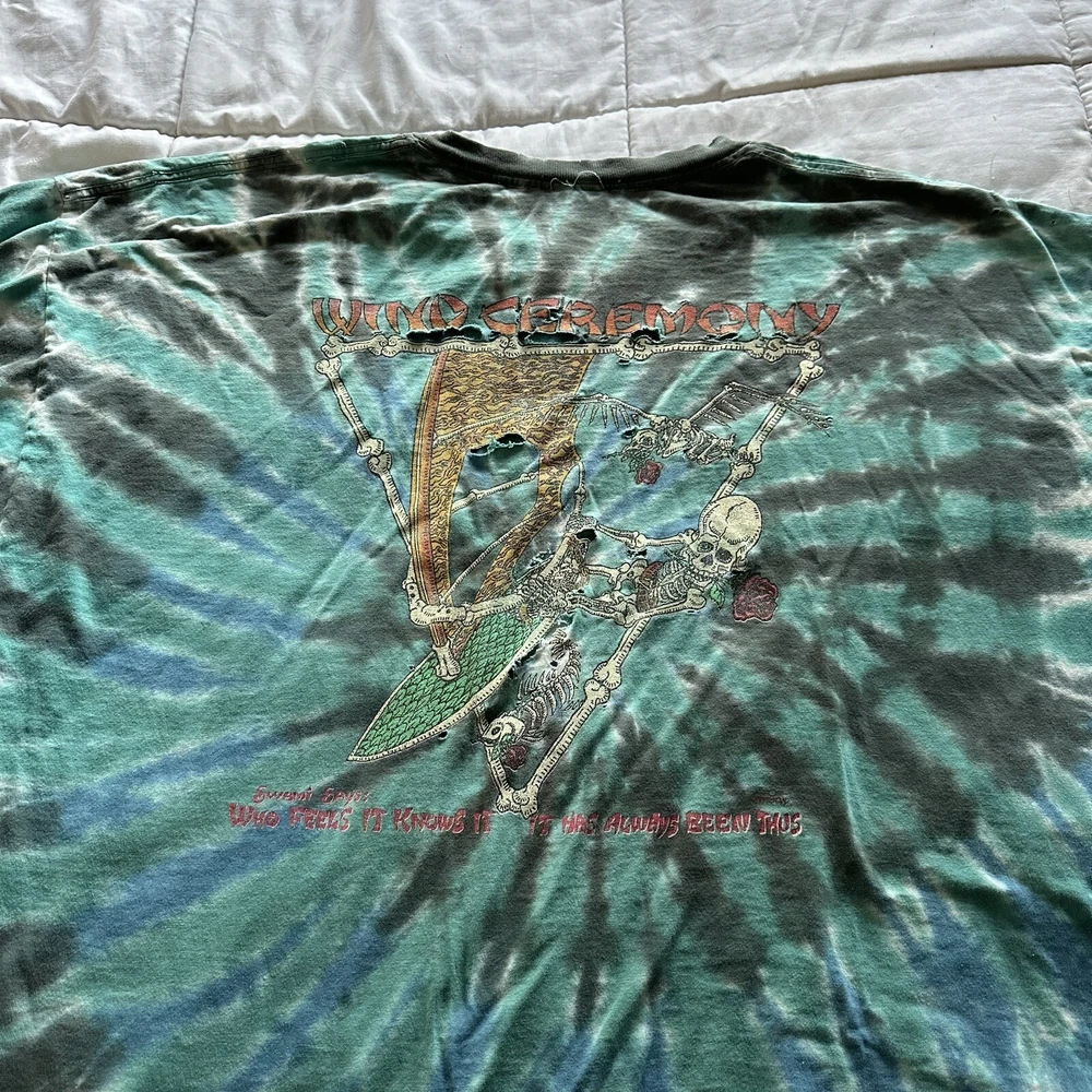 This vintage blue T-shirt from Anvil is a must-have for any surfer or windboarder enthusiast. Featuring festoons and the brand's logo, this shirt is made of soft cotton knit fabric and has long sleeves with a crew neckline. The shirt is in great shape, perfect for any season, and would make a great addition to any collection. The shirt is a size 3XL and has a solid pattern. It also has a vintage feel, with a graphic print that captures the themes of wind, surf, sailboard, and the 2002 wind ceremony. This T-shirt is a regular fit and is suitable for men. It was made in Honduras and is a great shirt for anyone who loves the wind and surf lifestyle.